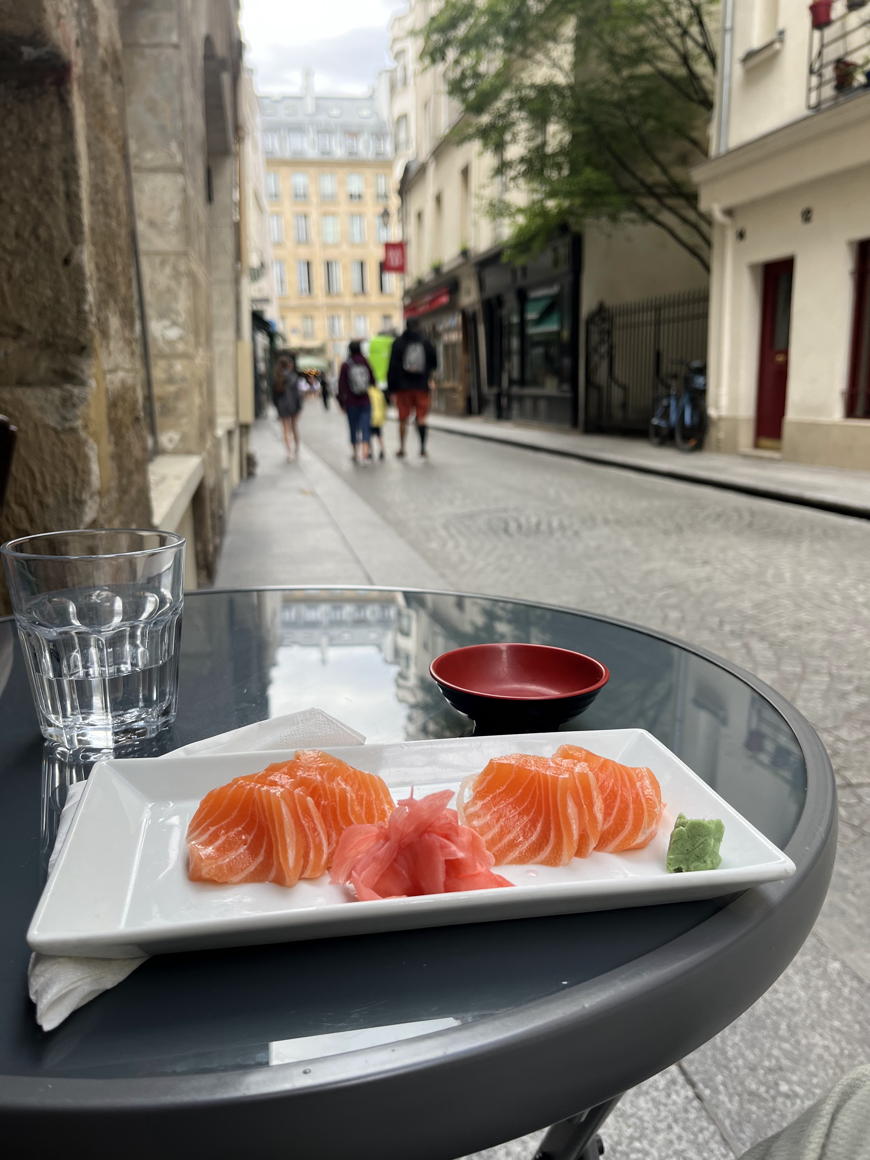 Les sushis ici étaient incroyables et les prix sont bien meilleurs qu'aux États-Unis ! Le sashimi de saumon était particulièrement bon, ainsi que les petits pains. J'ai choisi un combo avec du riz, de la salade, de la soupe miso et du gyoza, en plus des sushis illustrés. Je recommande vivement cet endroit; l'ambiance est géniale et on a vraiment l'impression d'être dans une banlieue parisienne pittoresque avec des rues pavées.