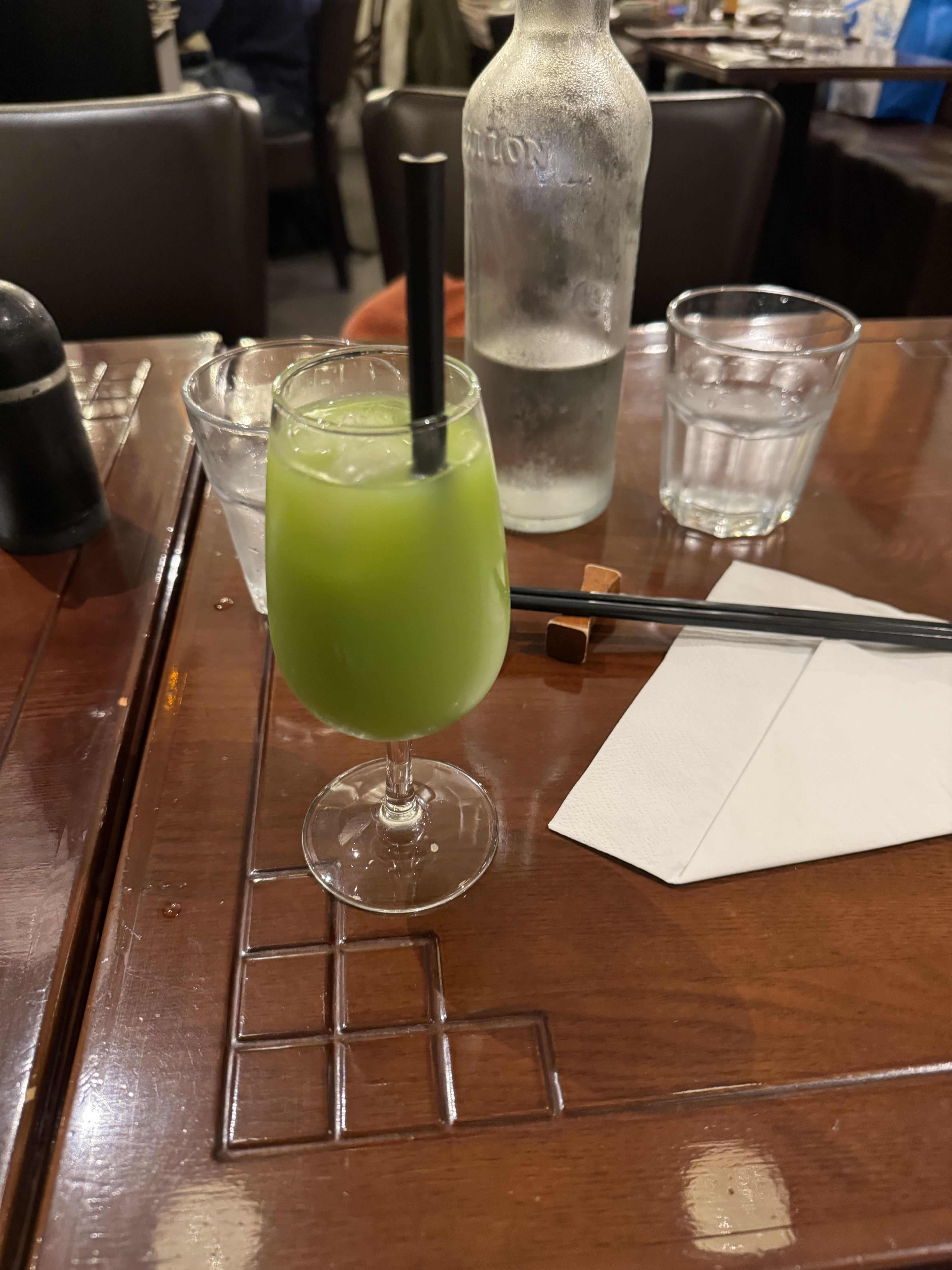 Nous nous sommes arrêtés ici pour des sushis à Paris un mercredi soir. La nourriture était bonne et le service était bon. J'ai adoré leur petite boisson spéciale au goût un peu mentholé et ananas (boisson verte sur la photo ci-jointe). J'ai eu une des combinaisons contenant des sushis et des sashimis.