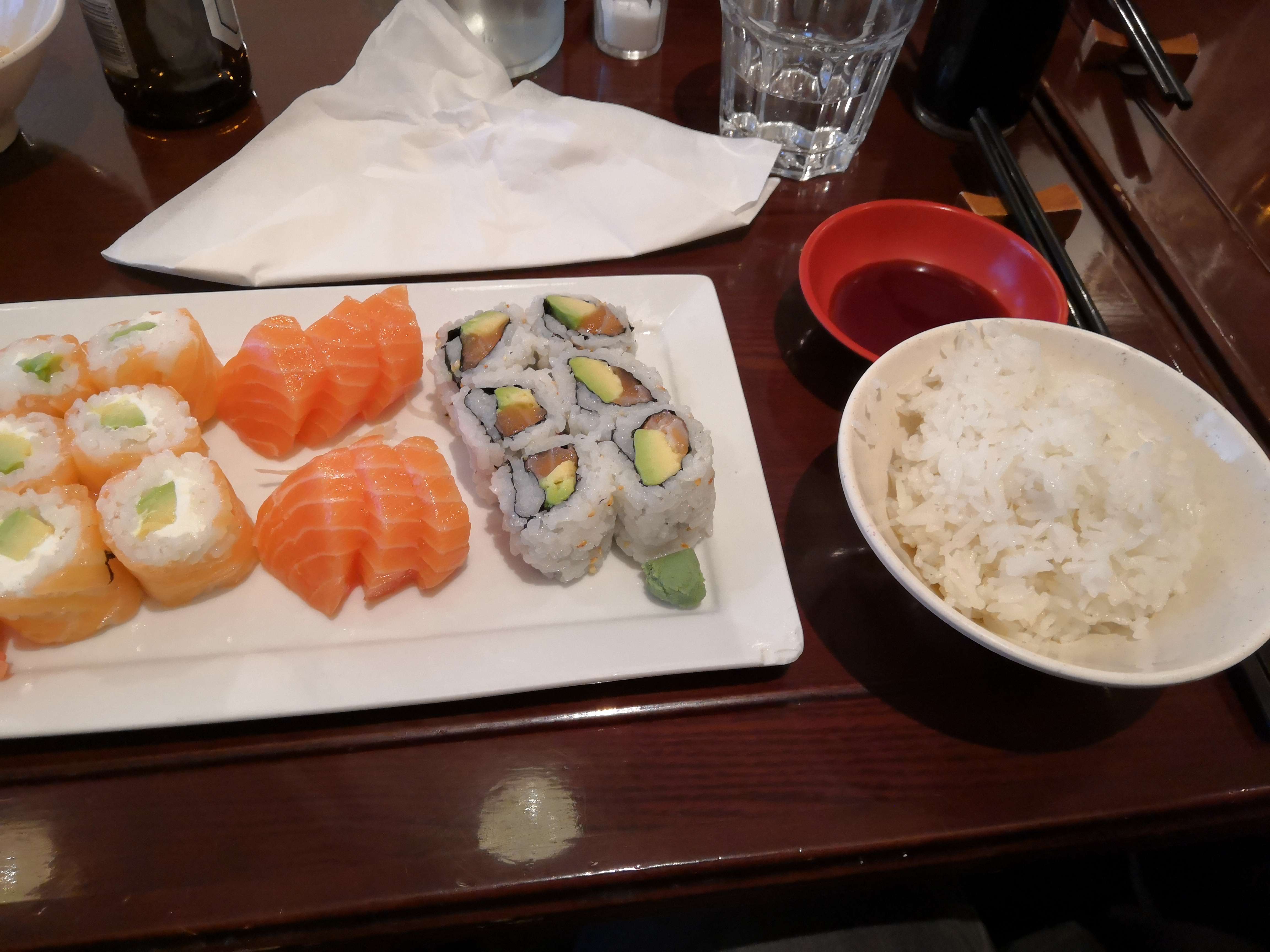 Nous étions allés déjà plusieurs fois mais la ça c'est dégradé ! La serveuse n'arrêtait pas de dire '' voila tout ça à manger '' comme si on avait pris des tonnes de truc...bref c'était désagréable comme commentaire... Le riz était beaucoup trop cuit et forcément ll était pâteux en bouche, mal assaisonné et très radin sur la quantité de riz ,alors que normalement c'était censé être top Sans parler de leur taille un peu trop petit par rapport à d'habitude ! Je déconseille dorénavant ce restaurant...