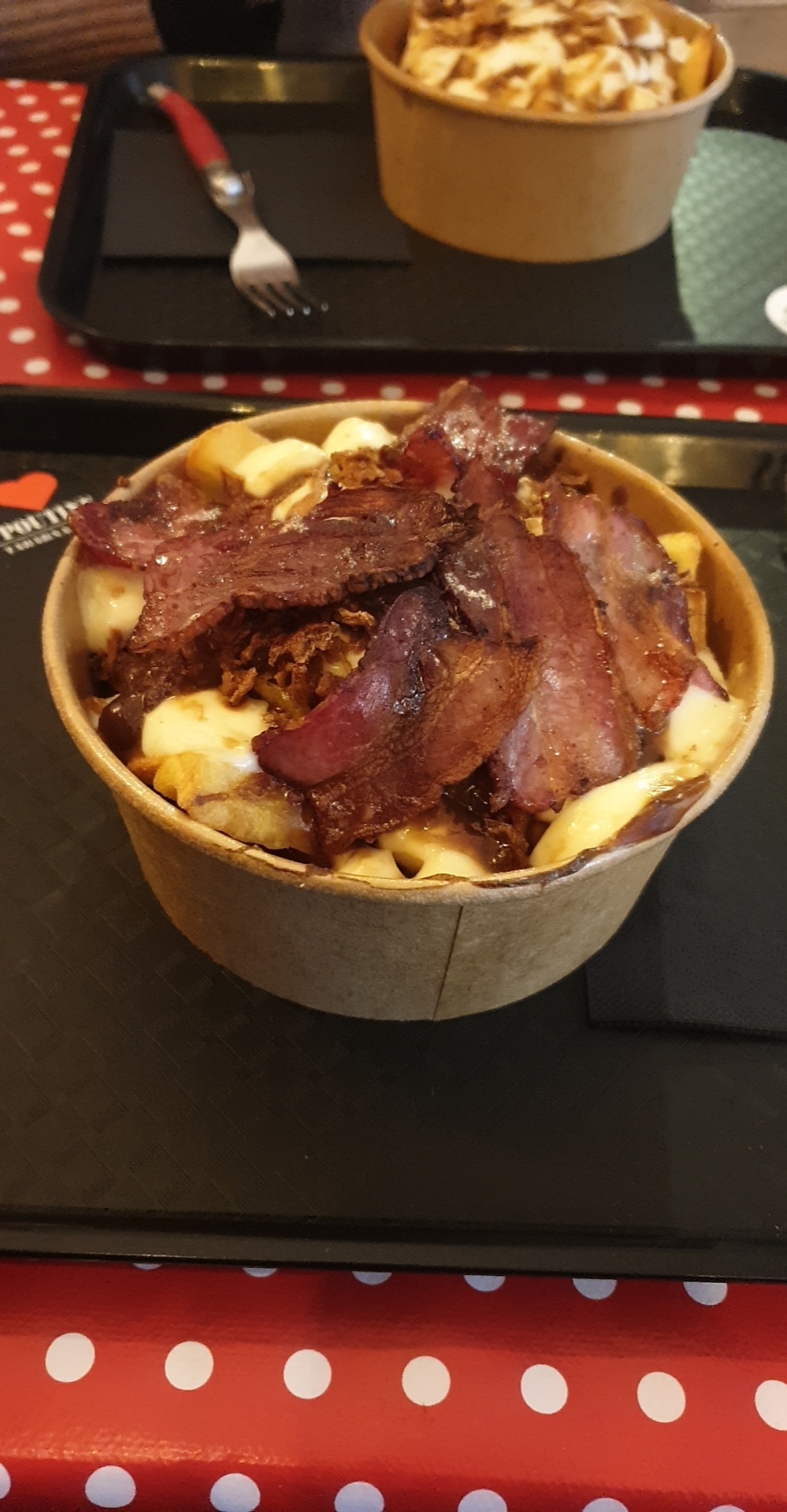 Après des vacances à Montréal cet été, nous avons voulu tester la Poutine en France. Franchement elle est pas mal! Le fromage ne fait peut être pas assez couic couic et les prix un peu élevés mais c’était un bon moment.