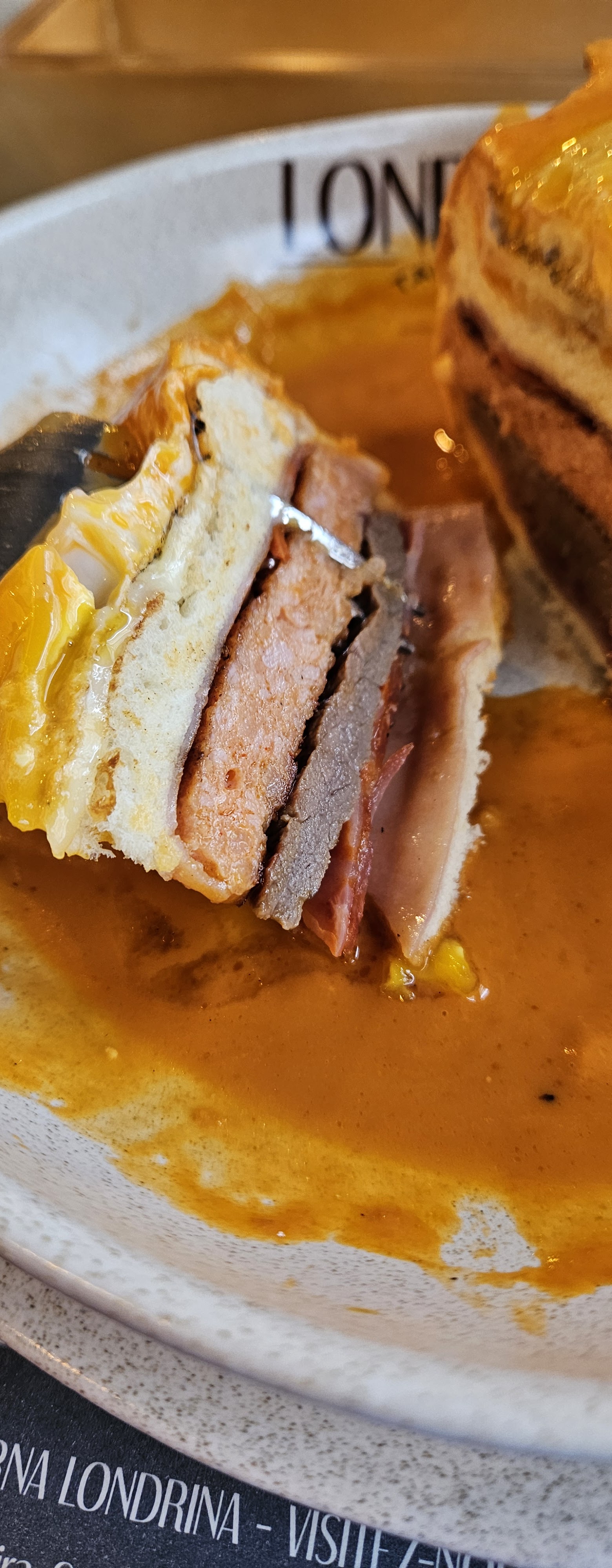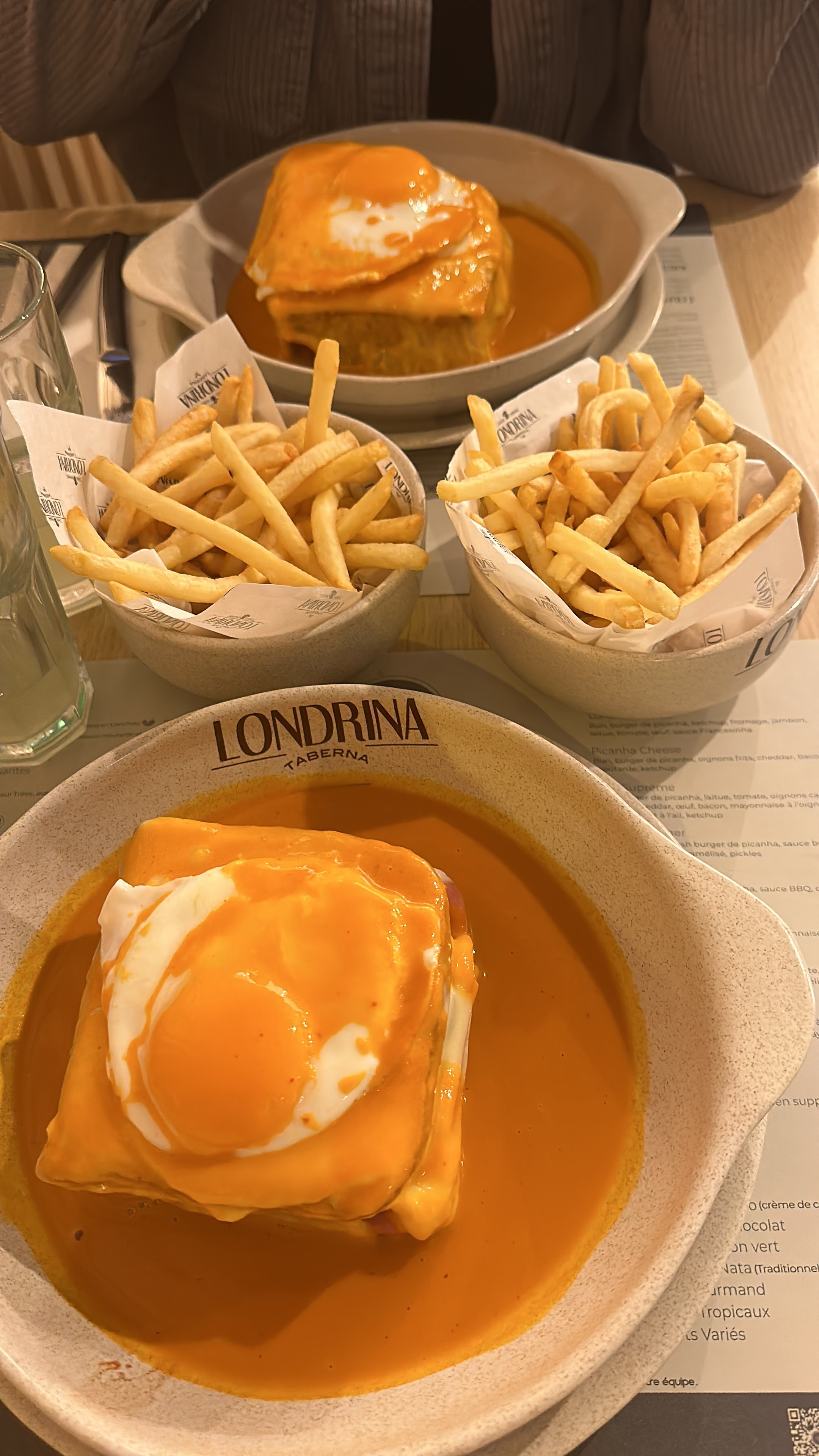 Une ouverture un peu compliqué... Du monde qui attend proche des tables ou vous manger... Le systeme du premier arrivé premier servie.. 🙄 Francesinha est bonne, j'irais pas dire non plus que c'est la meilleure du monde, Une sauce particulière à Londrina on aime ou pas... Et les frites qui accompagne la francesinha payante dite maison, qui ne le sont pas du tt... La pilule a du mal à passer. 😅