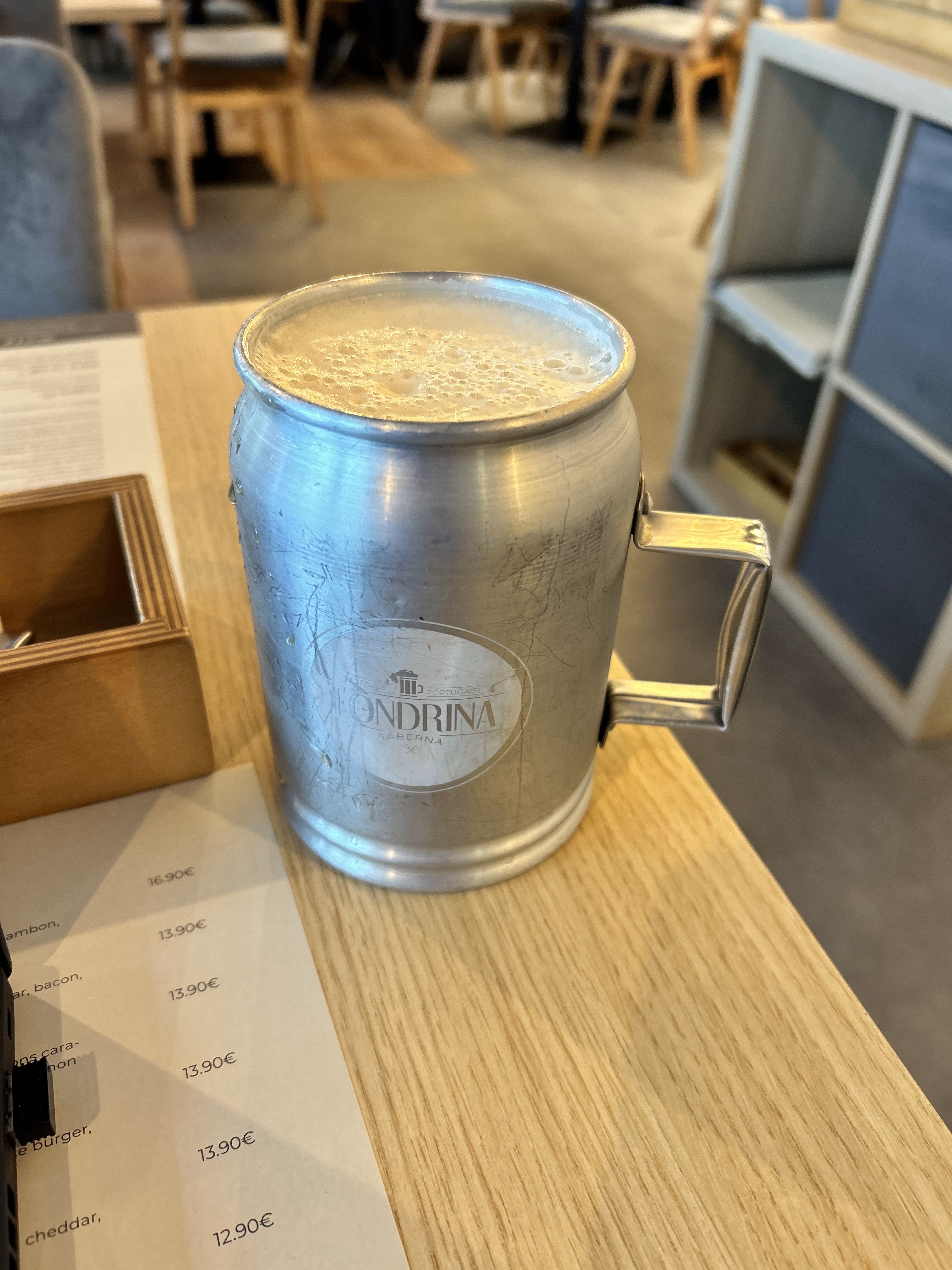 La francesinha est bonne mais pas de quoi casser 3 pattes à un canard surtout à 20€. Les frites ne sont pas inclues, le comble. Donc il faut rajouter 2.90€ pour avoir des frites maison qui n’ont de maison que l’assiette, j’appellerais plutôt ça frite McCain. Nous avions pris du pain à l’ail, je pense que la baguette venait de l’Auchan en face et encore à Auchan elle doit être meilleure.
