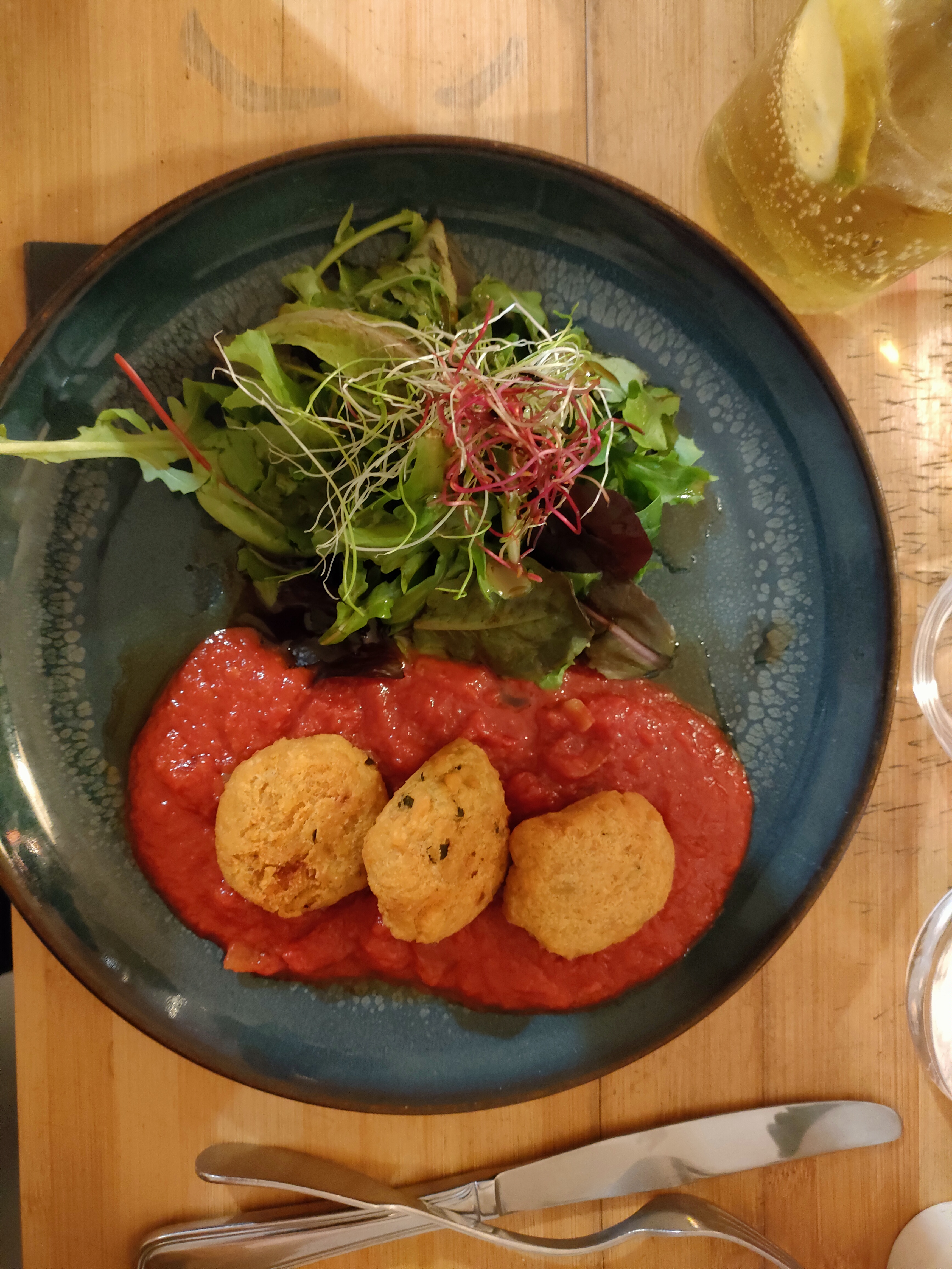 Nourriture régulière. Pièce principale un peu petite, la terrasse est certainement une meilleure option
