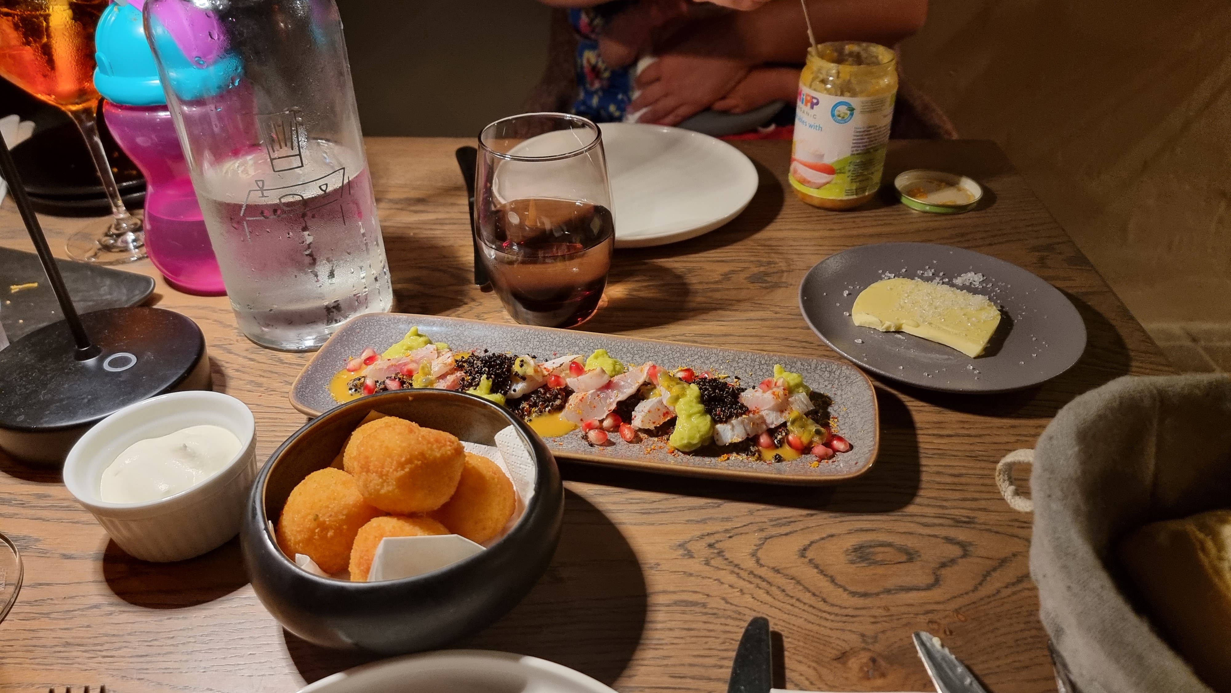Nourriture 3 : Nous avons aimé le Rissoto aux truffes et les arancini aux truffes. Les plats de poisson - la salade de daurade et la pêche du jour n'étaient pas les meilleurs. La salade manquait de saveurs et le poisson du jour manquait de texture et de goût. Service 2 : Les serveurs ne semblaient pas vraiment se soucier des commentaires, ne fournissaient pas beaucoup de conseils sur le menu ou les boissons (c'était un service de style café). De plus, les familles avec enfants ne semblent pas être les bienvenues (pas de menu enfant du tout). De plus, on ne nous a pas fourni de table dans le hall principal ou sur la terrasse. On nous a donné une salle vide, à l'écart du reste des clients (ce n'est pas amusant). Nous avons certainement vu de meilleurs dîners lors de notre voyage dans le sud de la France.