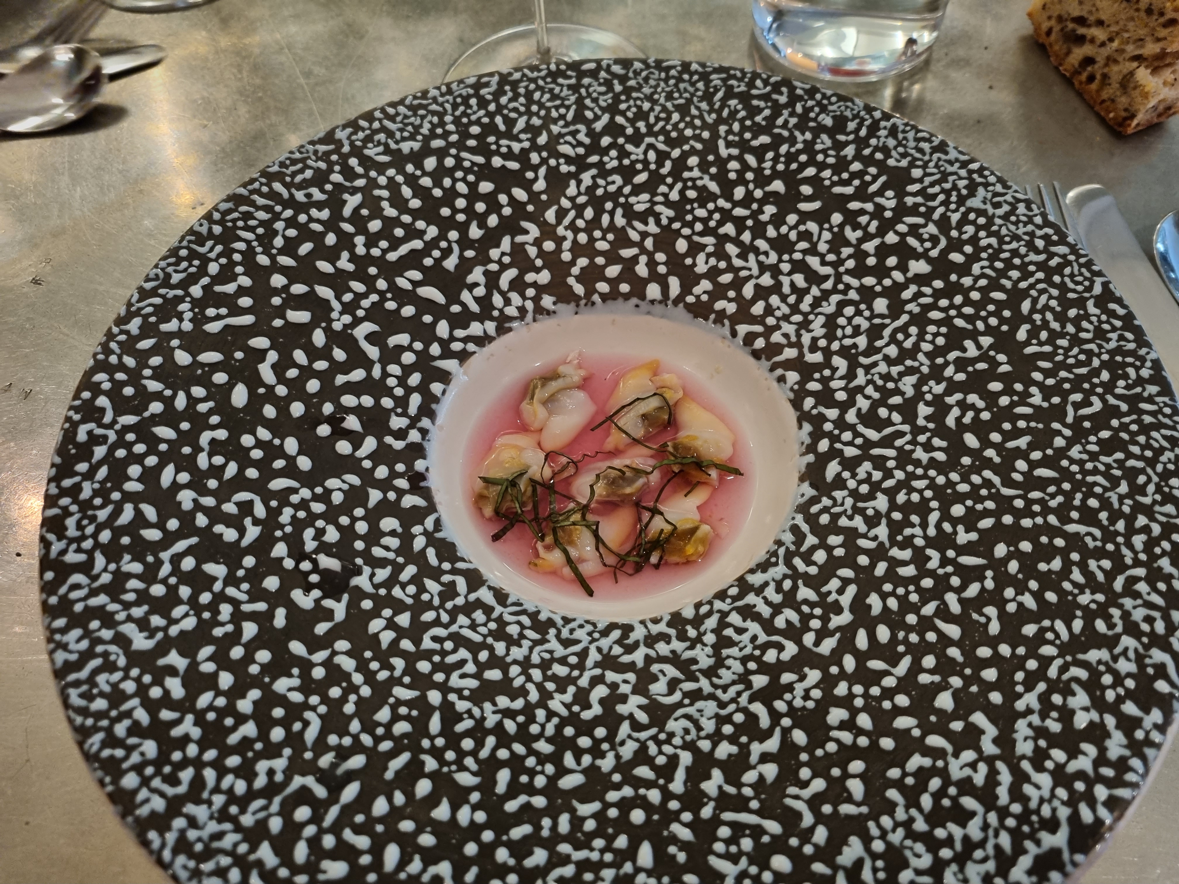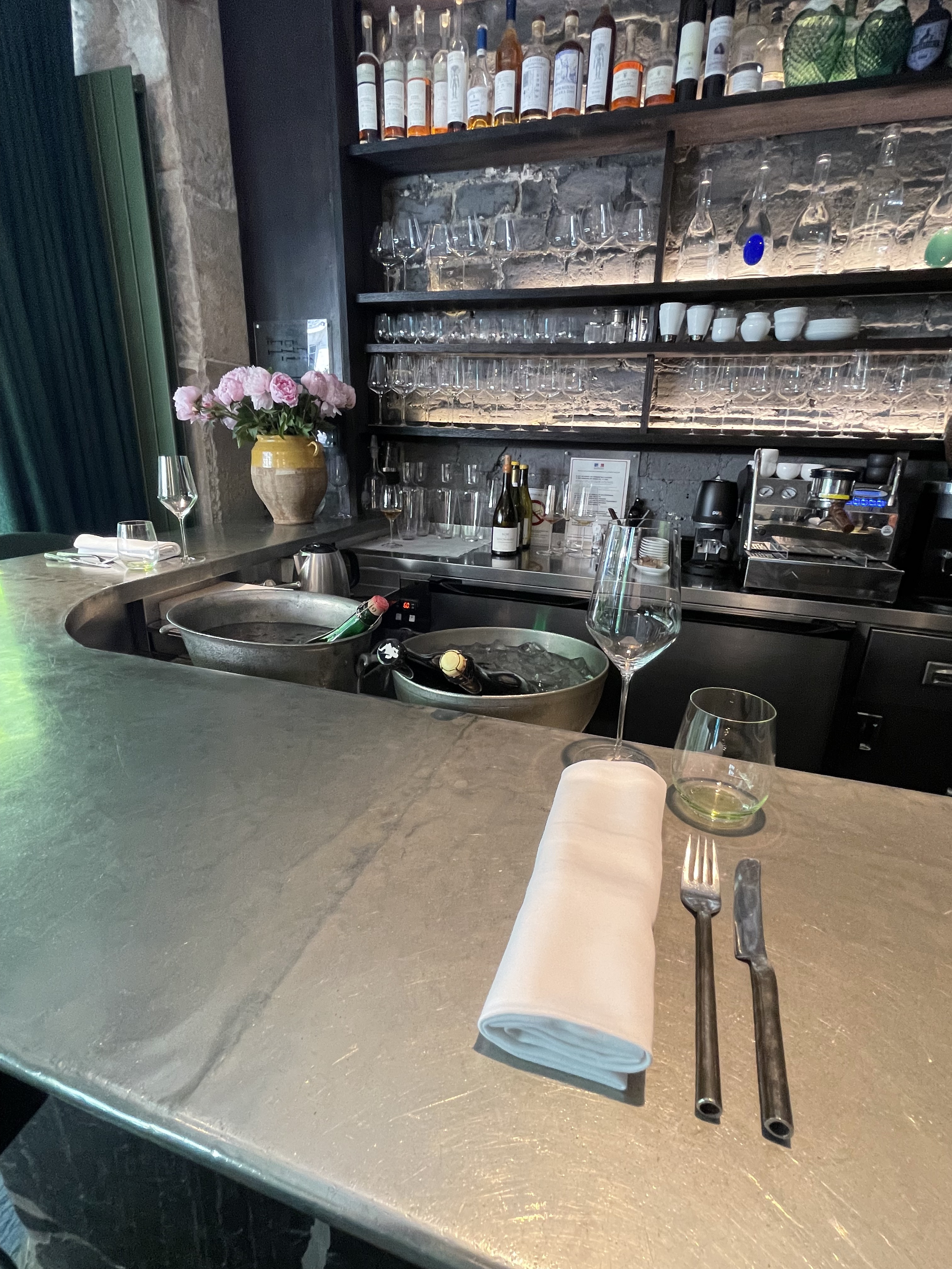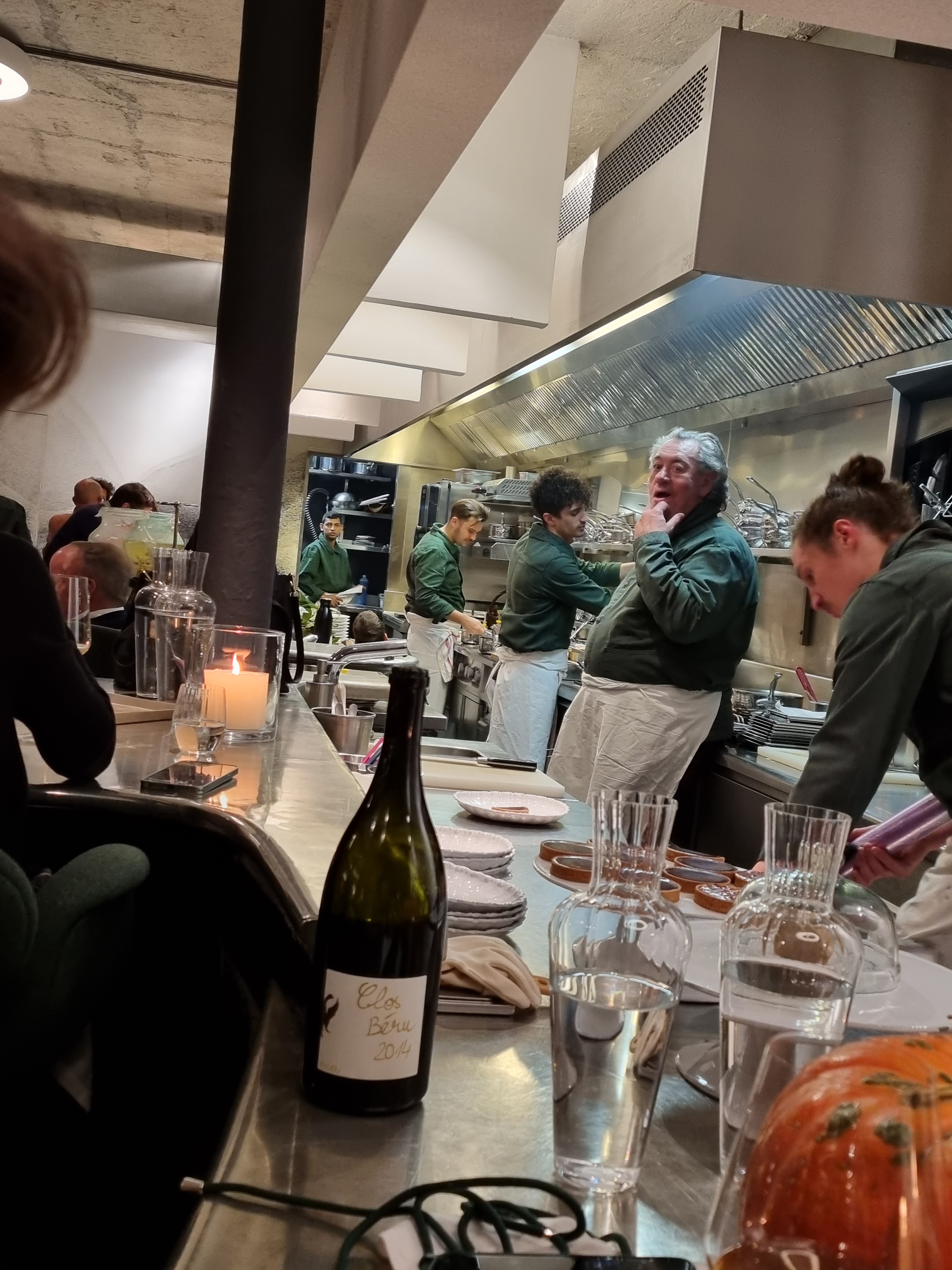 Nous sommes venu hier soir pour l'anniversaire de ma femme, nous avons passé une très belle soirée, d'abord un verre de champagne en terrasse (un peu musqué, délicieux), puis au comptoir en face des fourneaux : quel spectacle, quel travail minutieux, quelle coordination ! Nous avons très bien dîné, il n'y a rien a critiquer, c'était parfait, bon, gouteux... Et puis nous avons vécu une expérience surprenante, le lieu avec ses murs bruts, la décoration un poil industriel, le look non conventionnel du staff (génial le pantalon à carreaux du chef), des personnages dédiés au service tout autant décalés des profils traditionnels. C'était très dépaysant, et ça nous a marqué, on s'en souviendra, c'est sûr ! Alors MERCI, c'était super, ne changez rien !