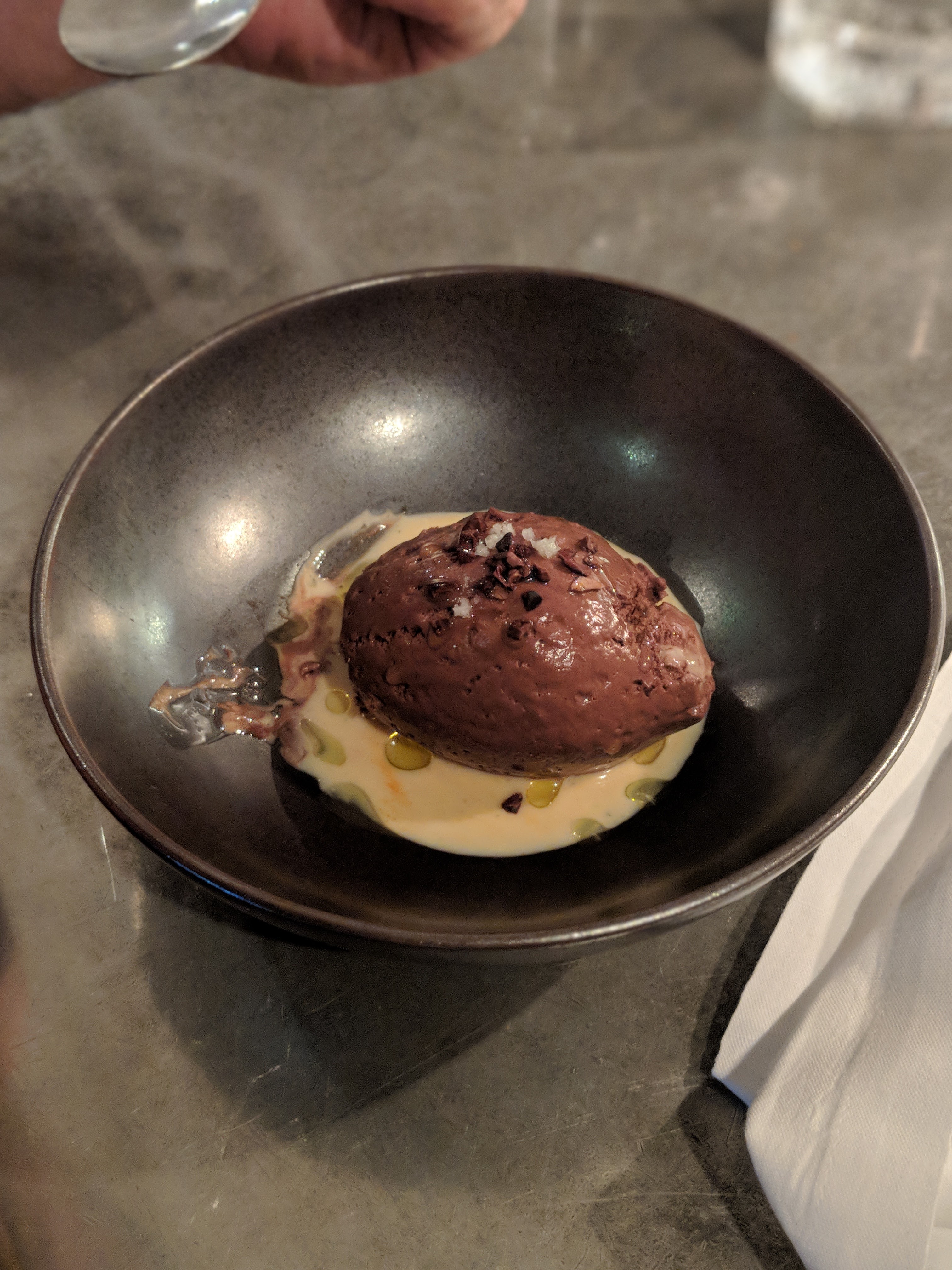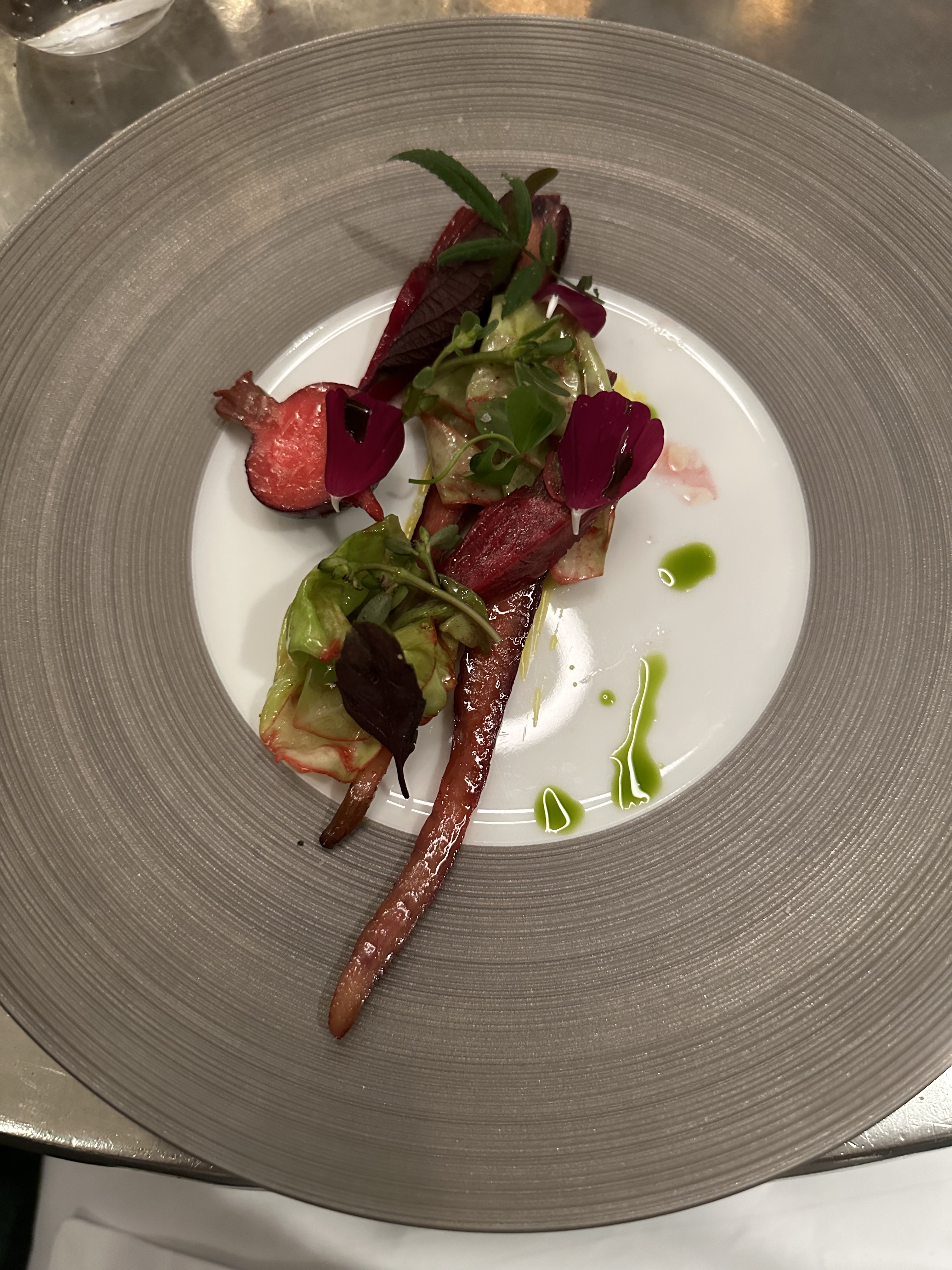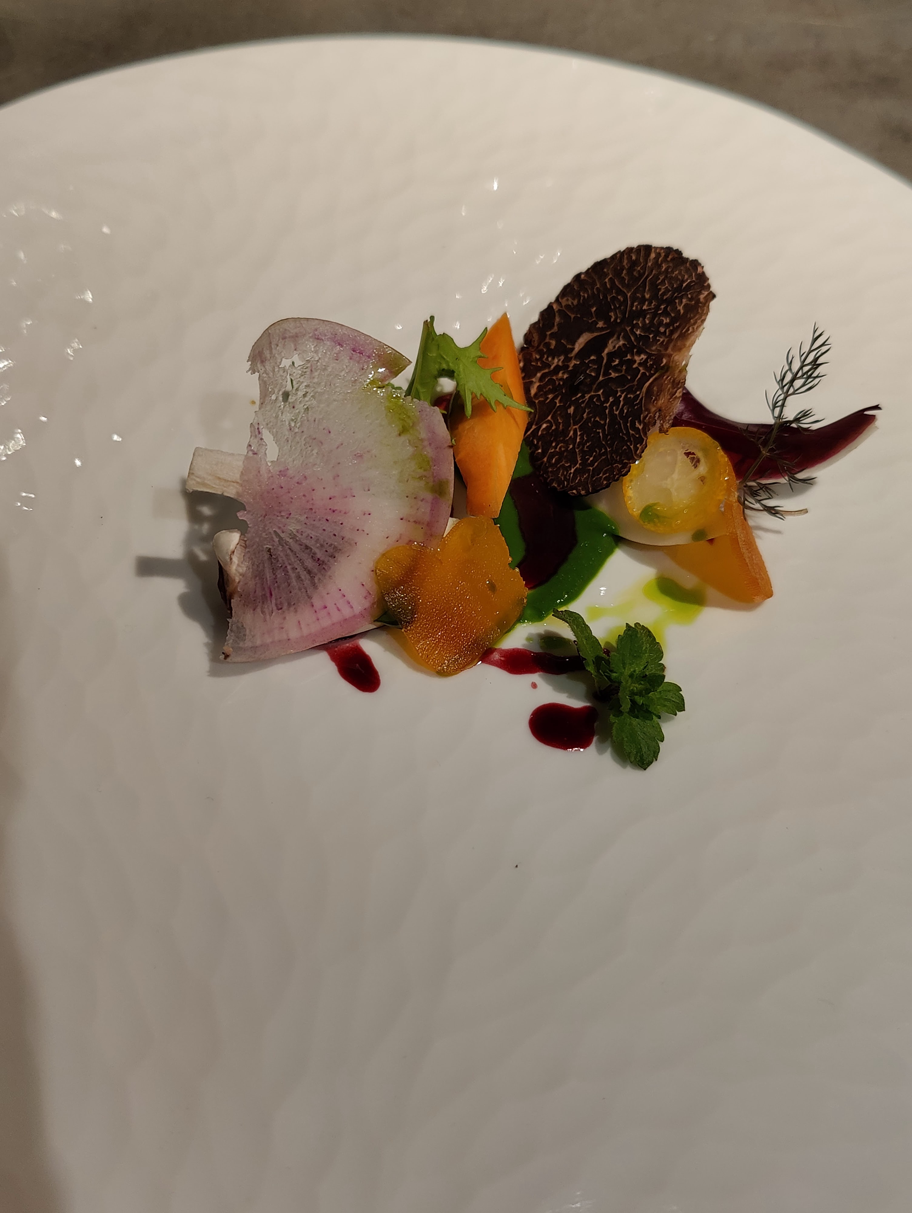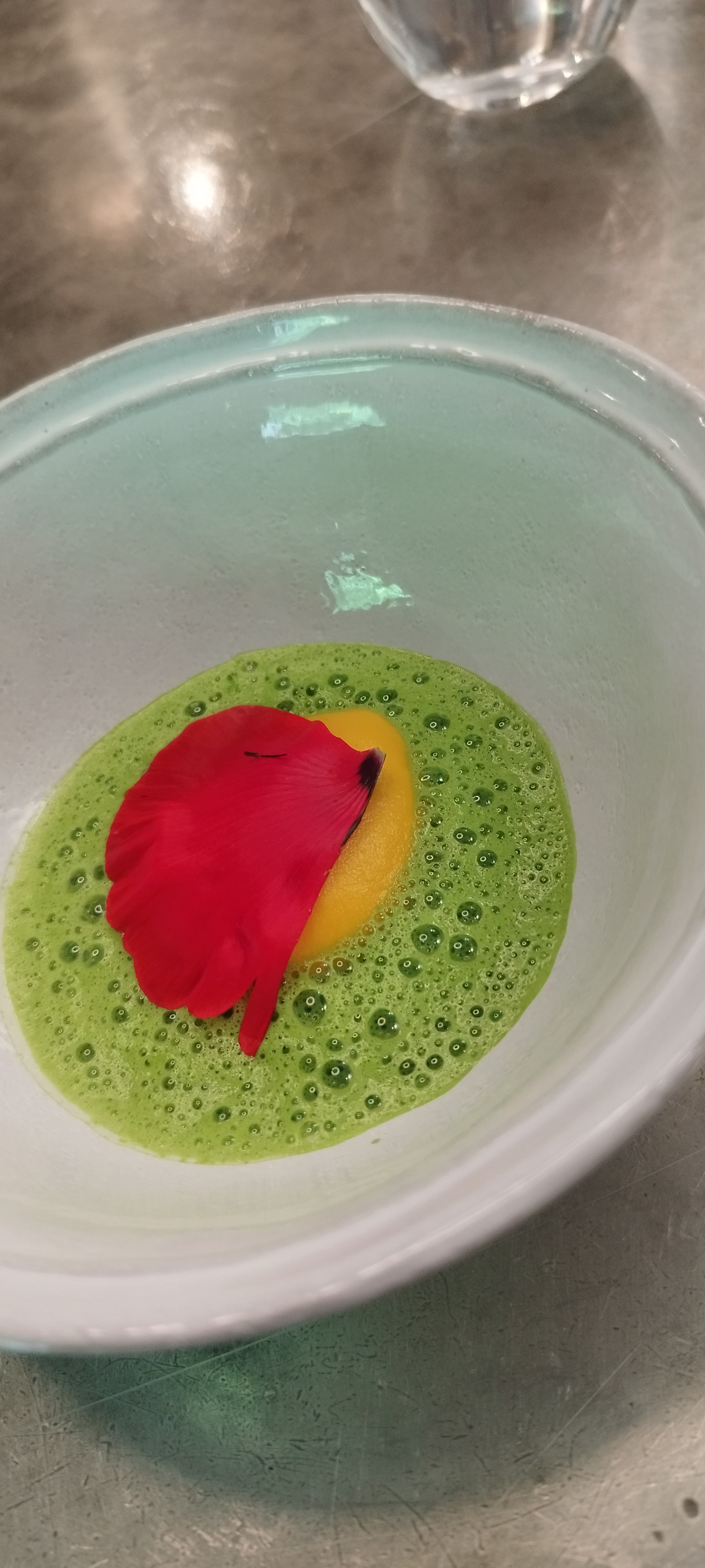 Pour moi, ce fut vraiment un repas qui a changé ma vie. La façon dont ils se sont attachés à honorer et à élever la qualité des produits de leurs fournisseurs montre un tel respect et une telle vision. Quand vous regardez un plat et pensez d'accord, c'est des pois et des fleurs, mais ce sont les pois les plus savoureux, parfaitement de saison, que vous puissiez obtenir et ils ont été cuits juste assez pour transformer la texture et conférer de délicieuses saveurs complémentaires. Rien n'a été surmené ou transformé en un spectacle moléculaire pour le plaisir - juste des produits étonnants guidés par les chefs vers leur meilleure version d'eux-mêmes. En tant que non-francophone, la barrière de la langue était certes perceptible, mais elle était largement compensée par la chaleur et la passion de l'équipe foh. Vaut chaque centime