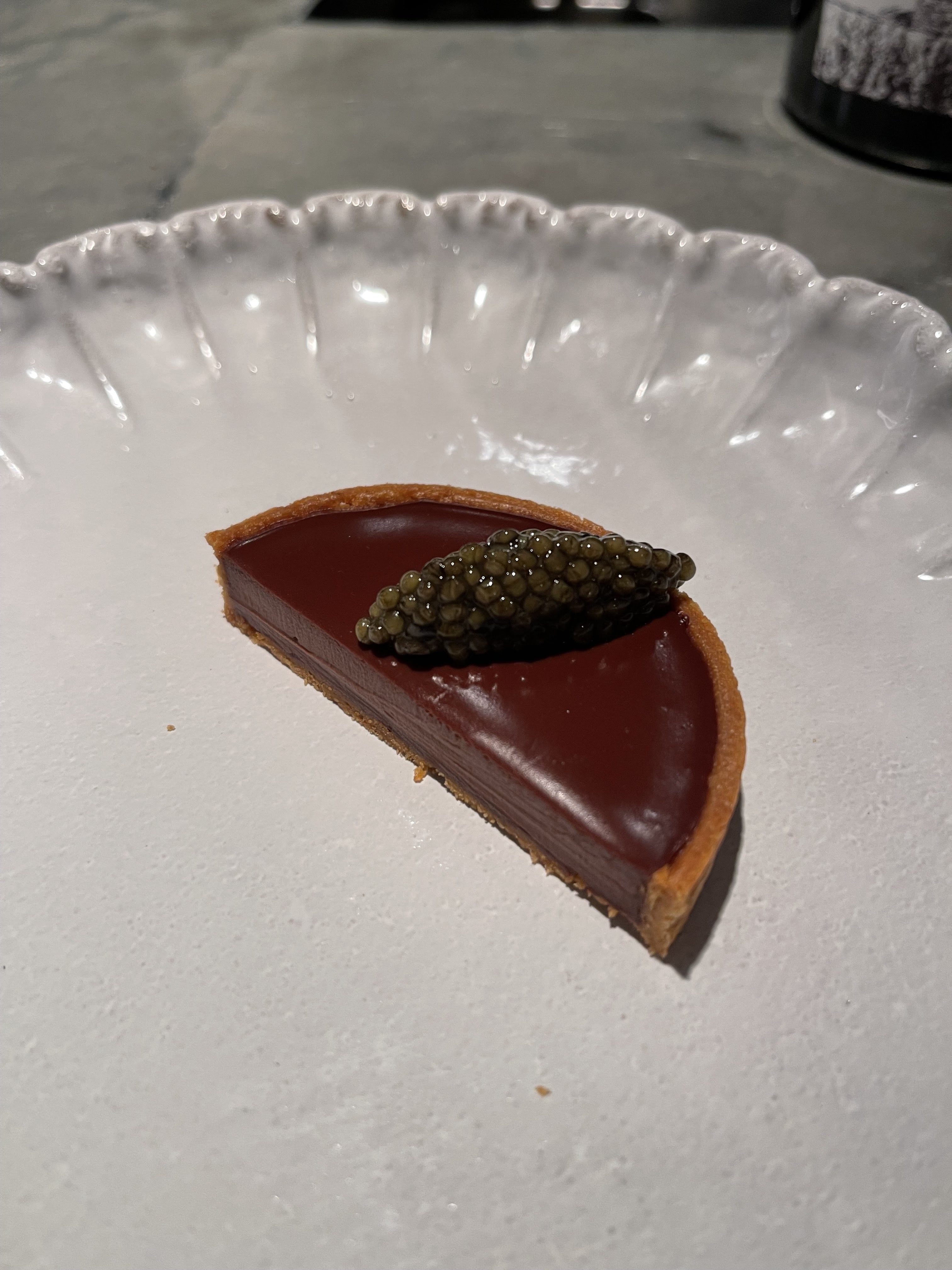 Une belle expérience avec un chef présent et actif en cuisine. La tarte chocolat caviar est formidable.