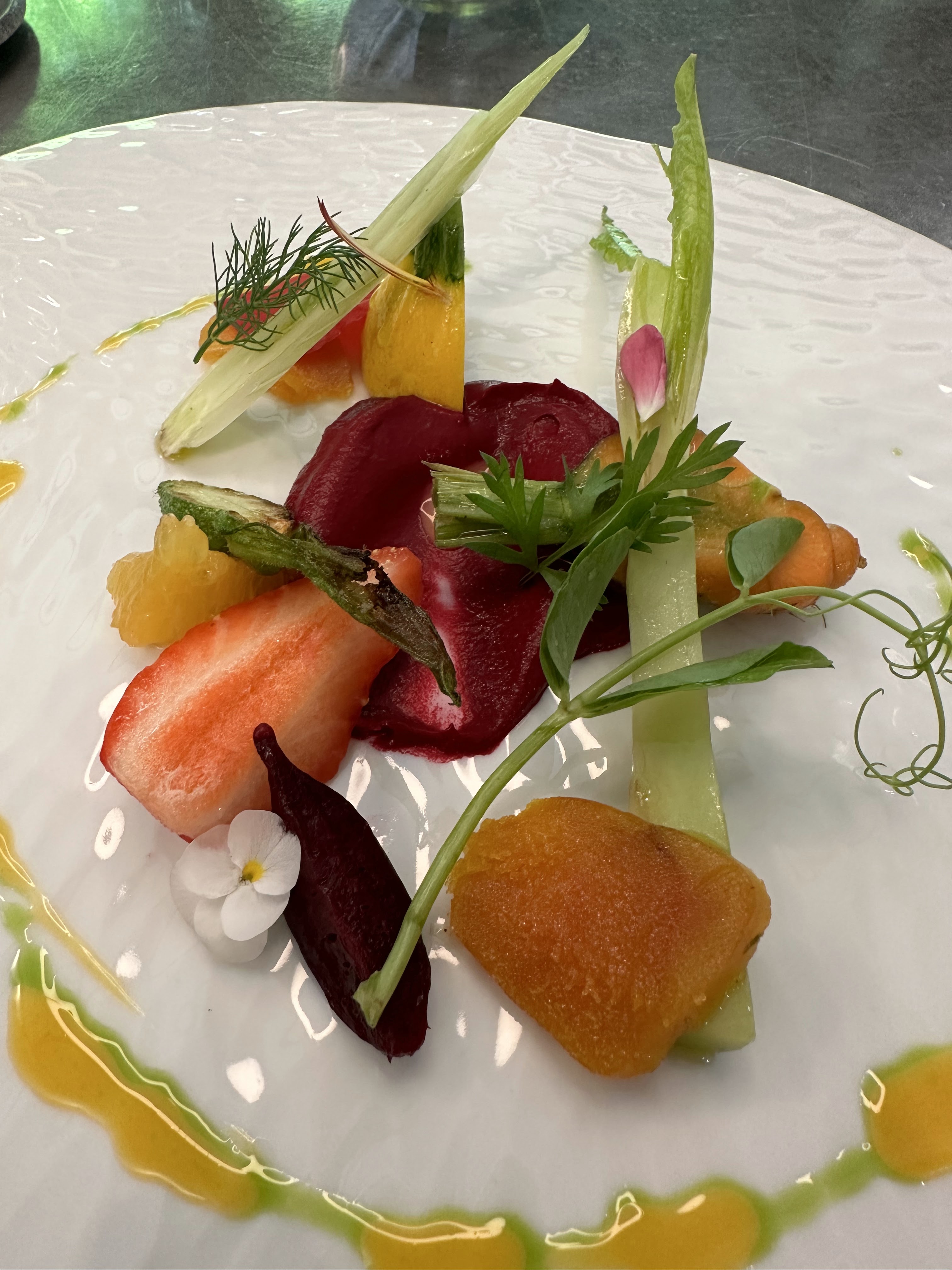 Produits d'une qualité exceptionnelle, assemblés et sublimés par Bruno Verjus et son équipe attentive. Menu dégustation sensationnel. La variété des textures est aussi large que celle des fleurs qui ornent les plats. Merveilleux.