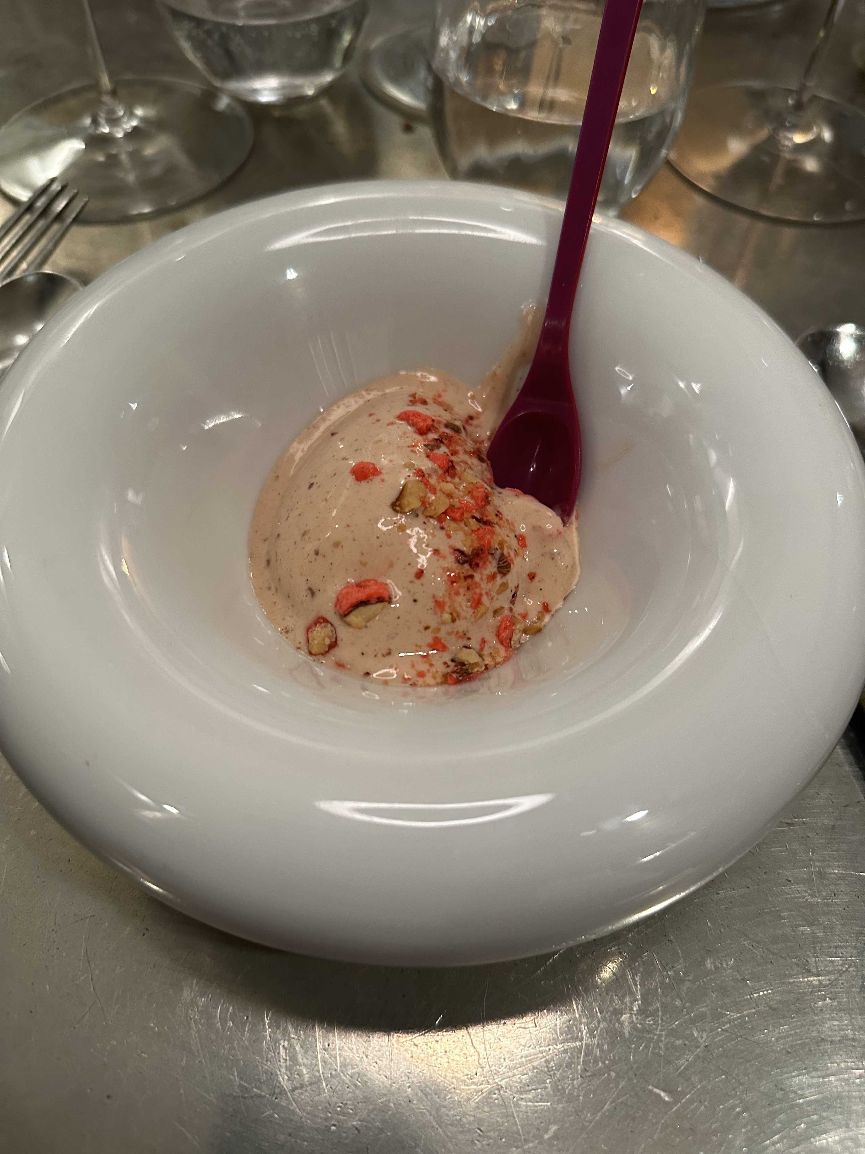 Bruno Verjus, le « chef autodidacte », comme il se surnomme, est un personnage remarquable : entrepreneur, blogueur, critique gastronomique et désormais même auteur. La beauté de sa cuisine réside dans sa simplicité avec son menu de saison en constante évolution qui met la qualité des ingrédients au centre. Avec 2 étoiles à son actif, cet endroit est sérieux. La sélection de fromages était wow. Malheureusement, la photo était ennuyeuse donc je n’en ai pas pris.