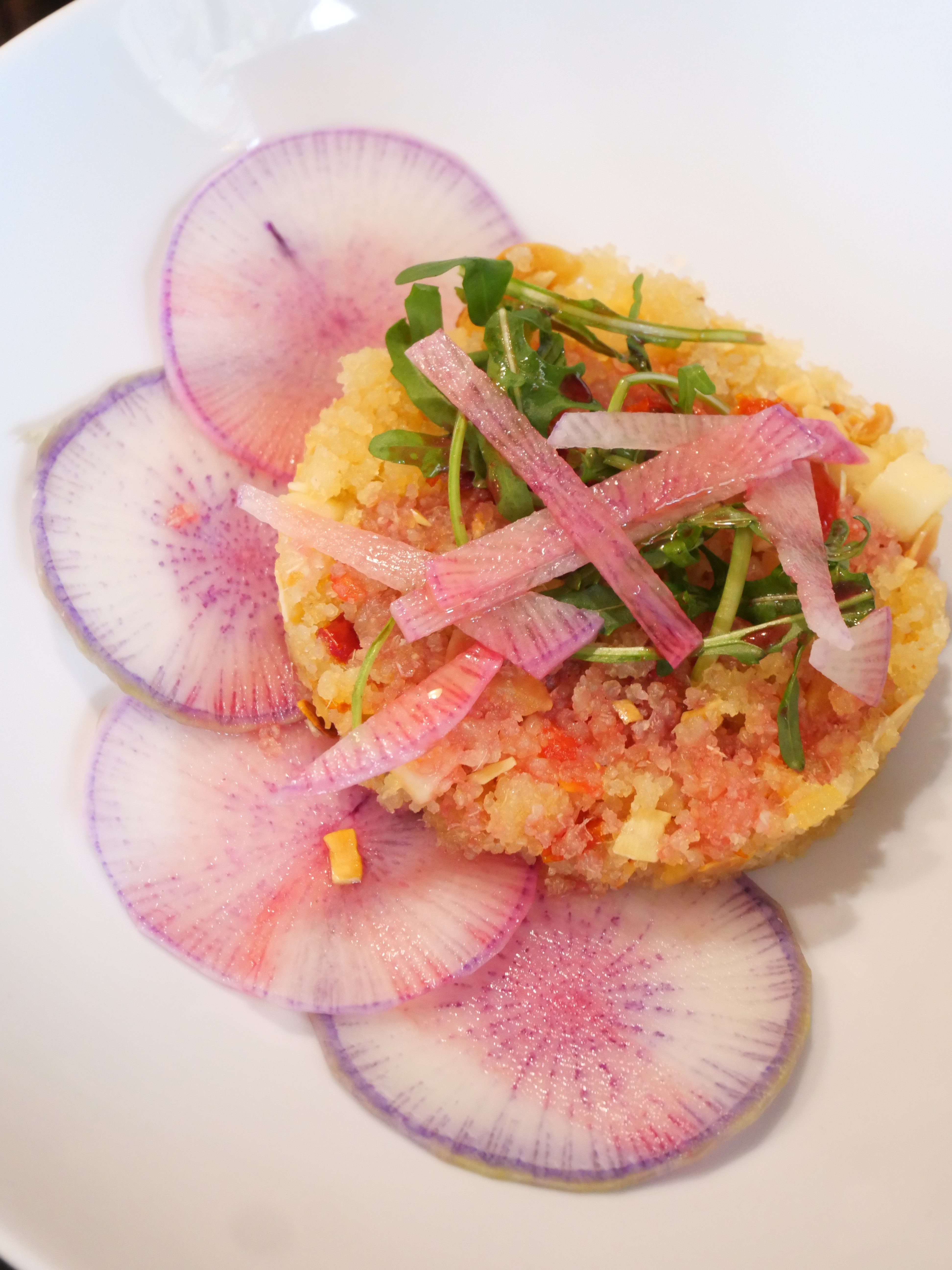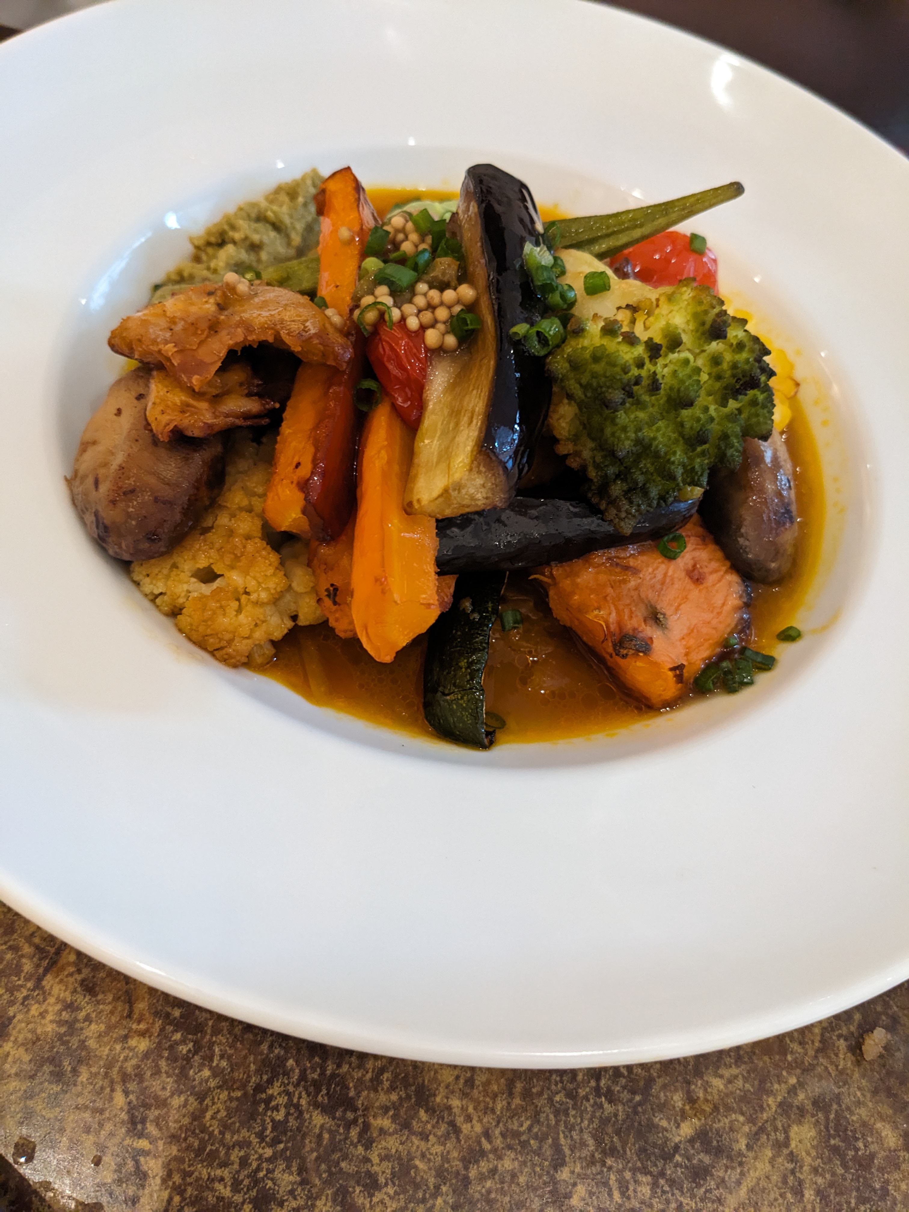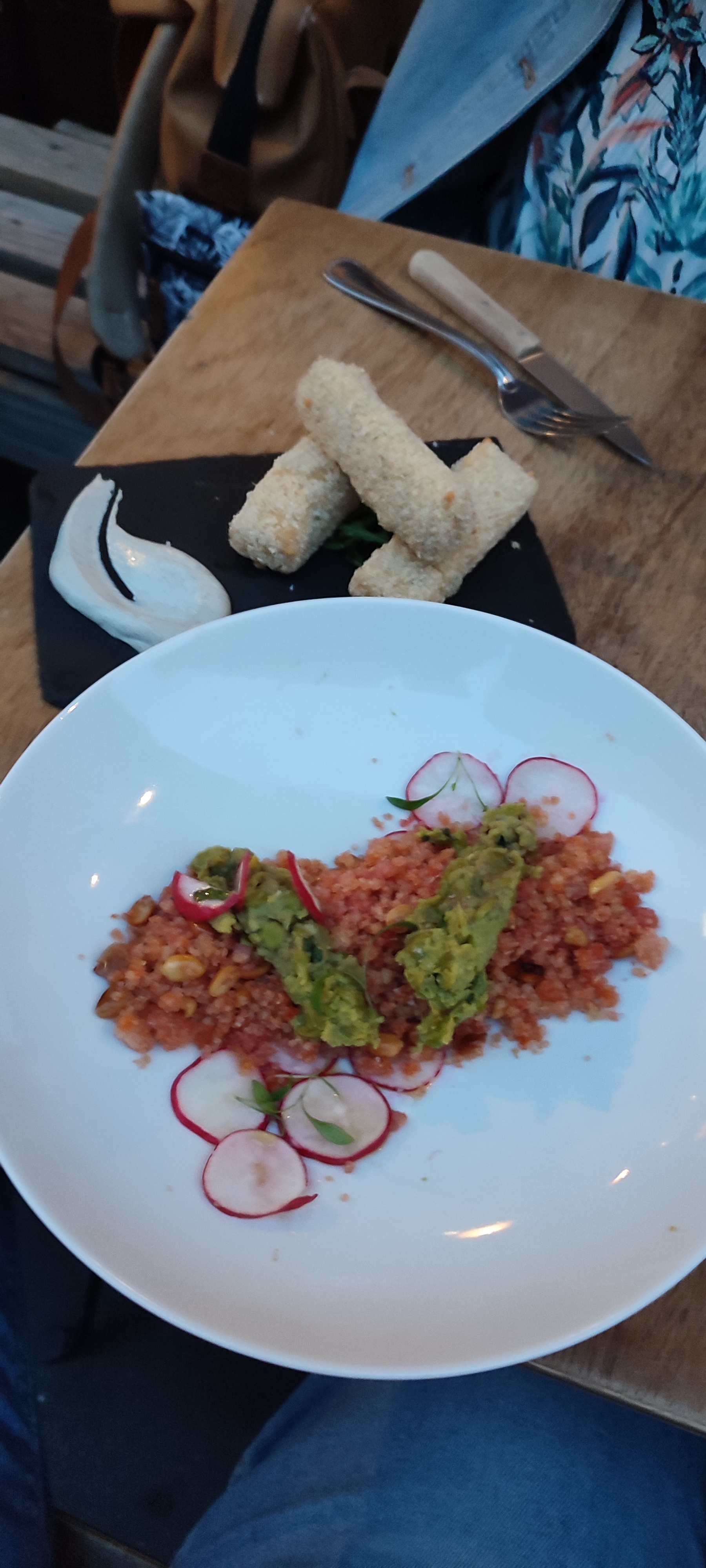 Cuisine fusion originale et personnel sympathique. Je ne suis pas végétalien mais j'ai eu le menu végétalien et je l'ai apprécié. Le seul point à améliorer est que les plats prennent trop de temps à être préparés.