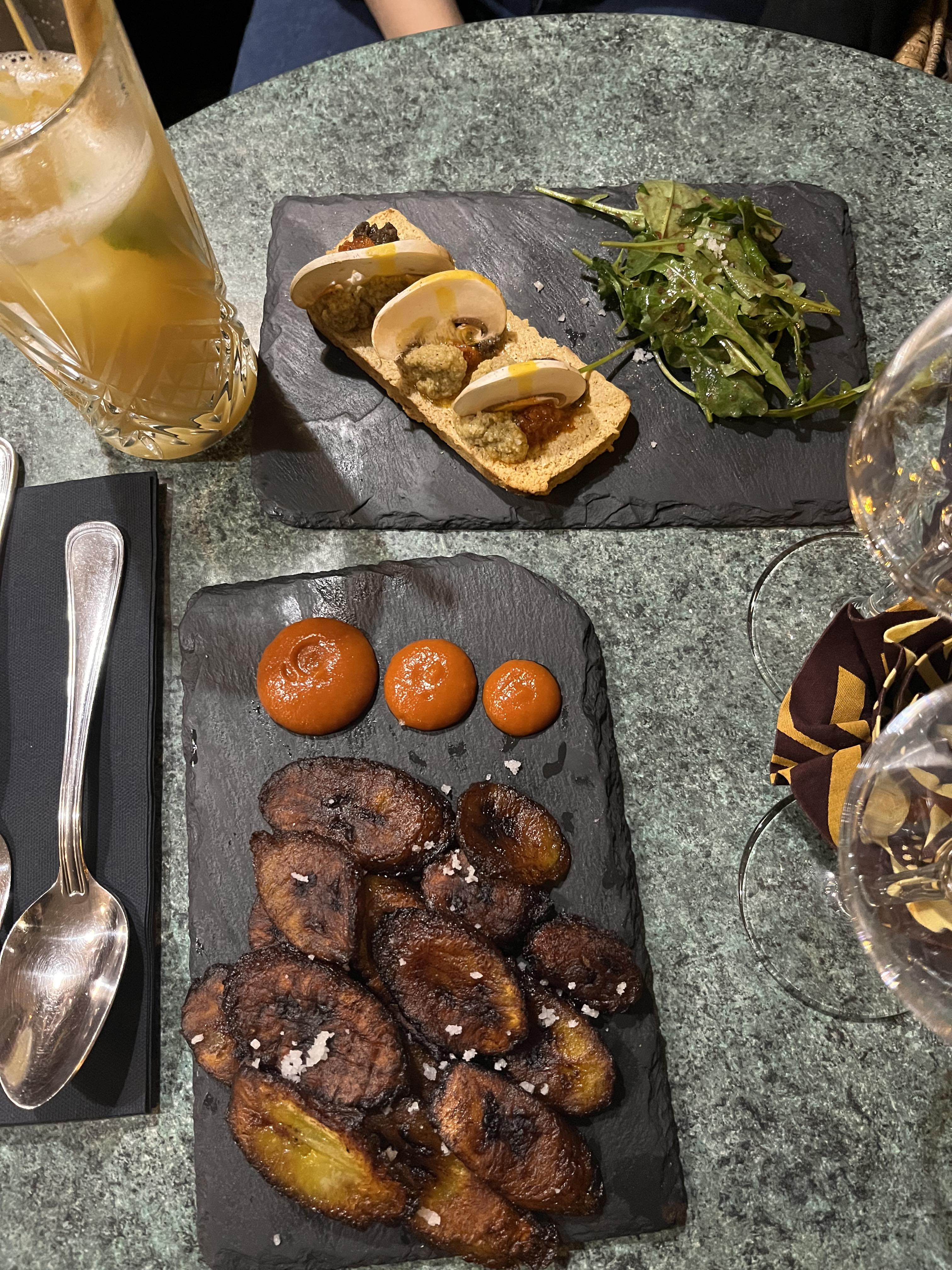 Superbe découverte, un mélange de saveurs: les beignets de bananes plantain, un régal, suivi d'un mafé vegan alors que je ne suis pas vegan, accompagné d'un cocktail bissap sans alcool. Accueil incroyable ! J'y retournerai