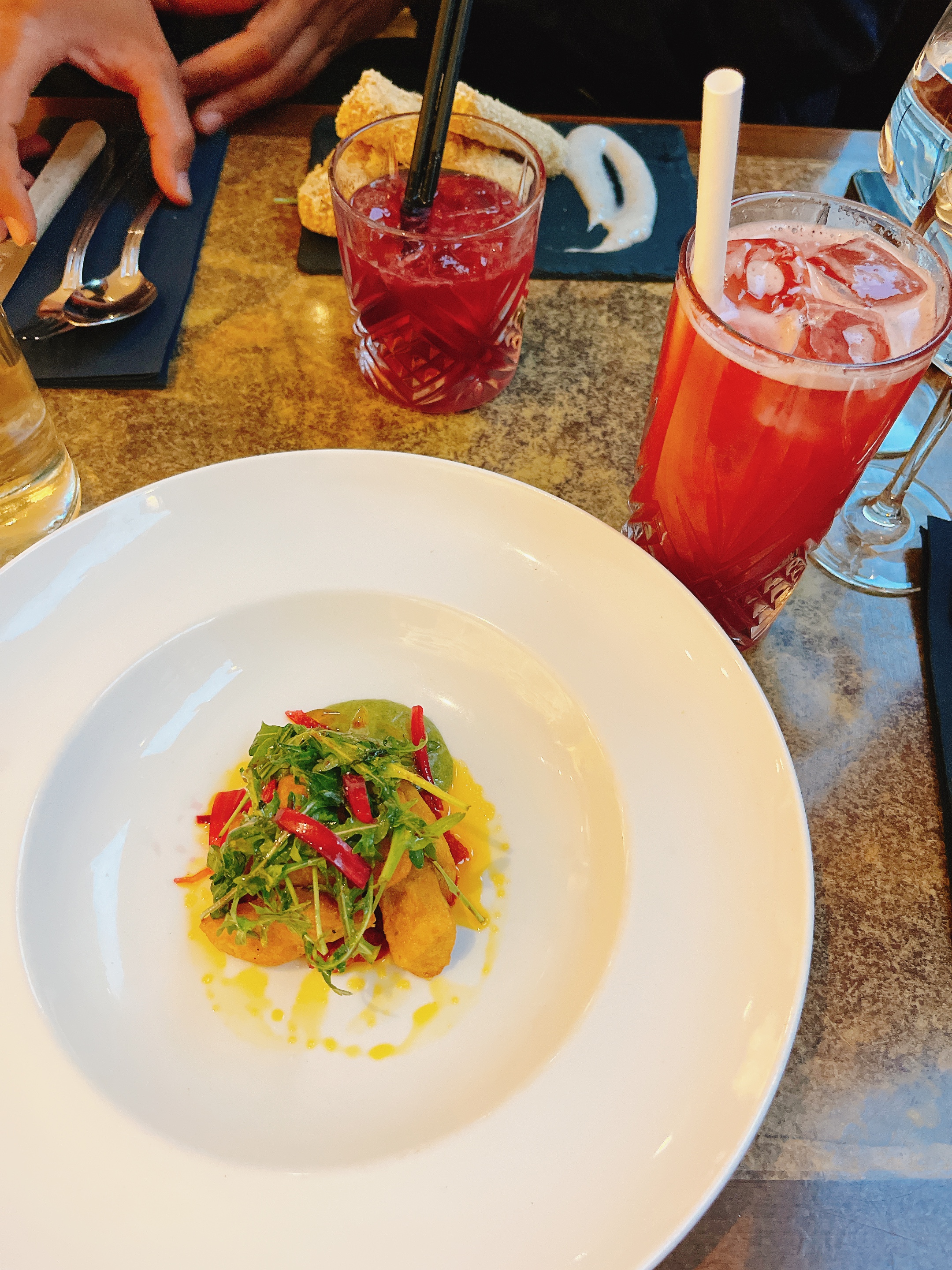 Belle découverte, le restaurant est agréable, le personnel est sympathique et la nourriture est bonne. Coup de cœur pour les entrées, cocktails et desserts qui ont ravi nos papilles. Les plats étaient bons mais selon moi le prix n’est pas justifié. C’est tout de même une bonne adresse, je recommande !