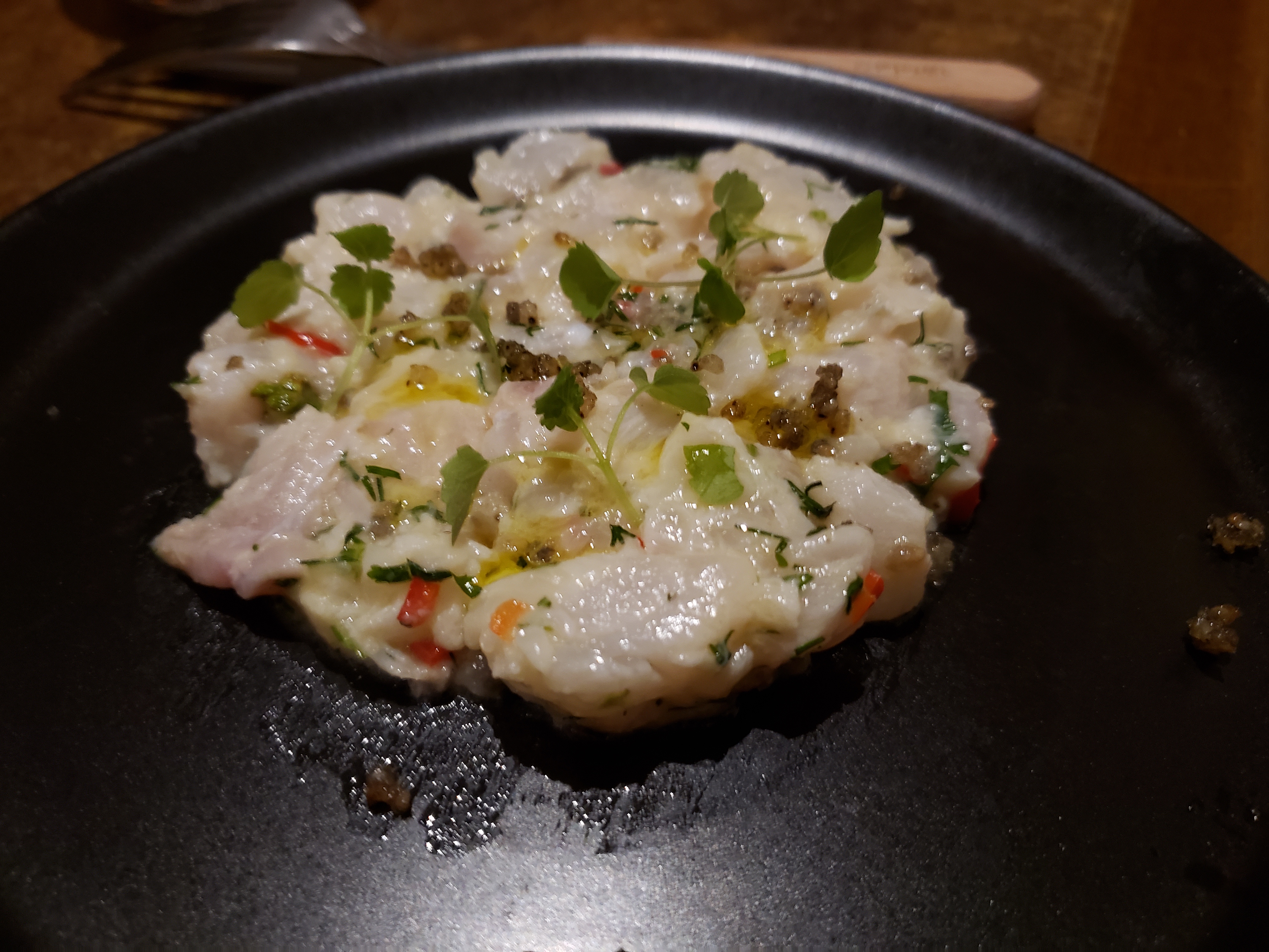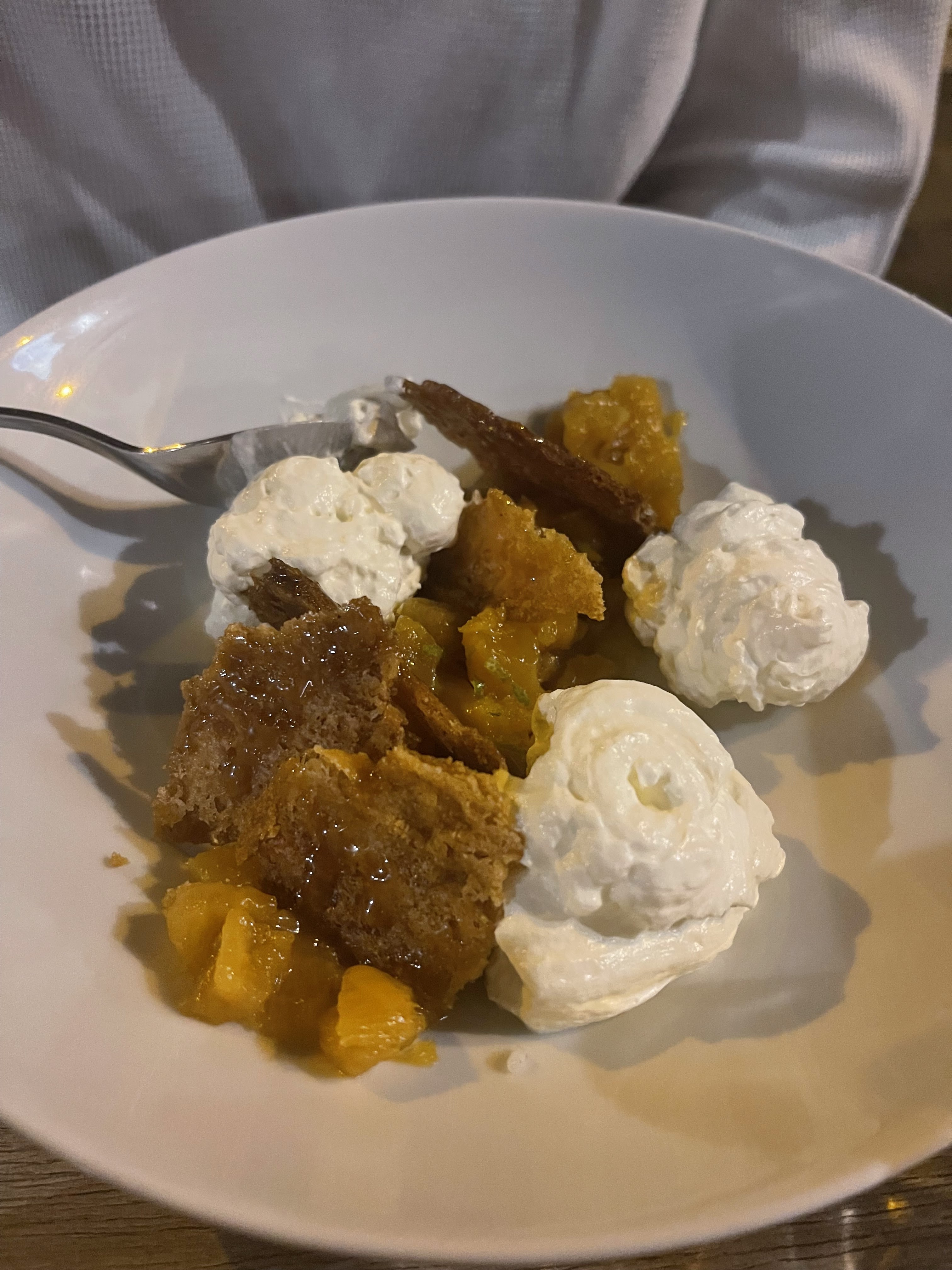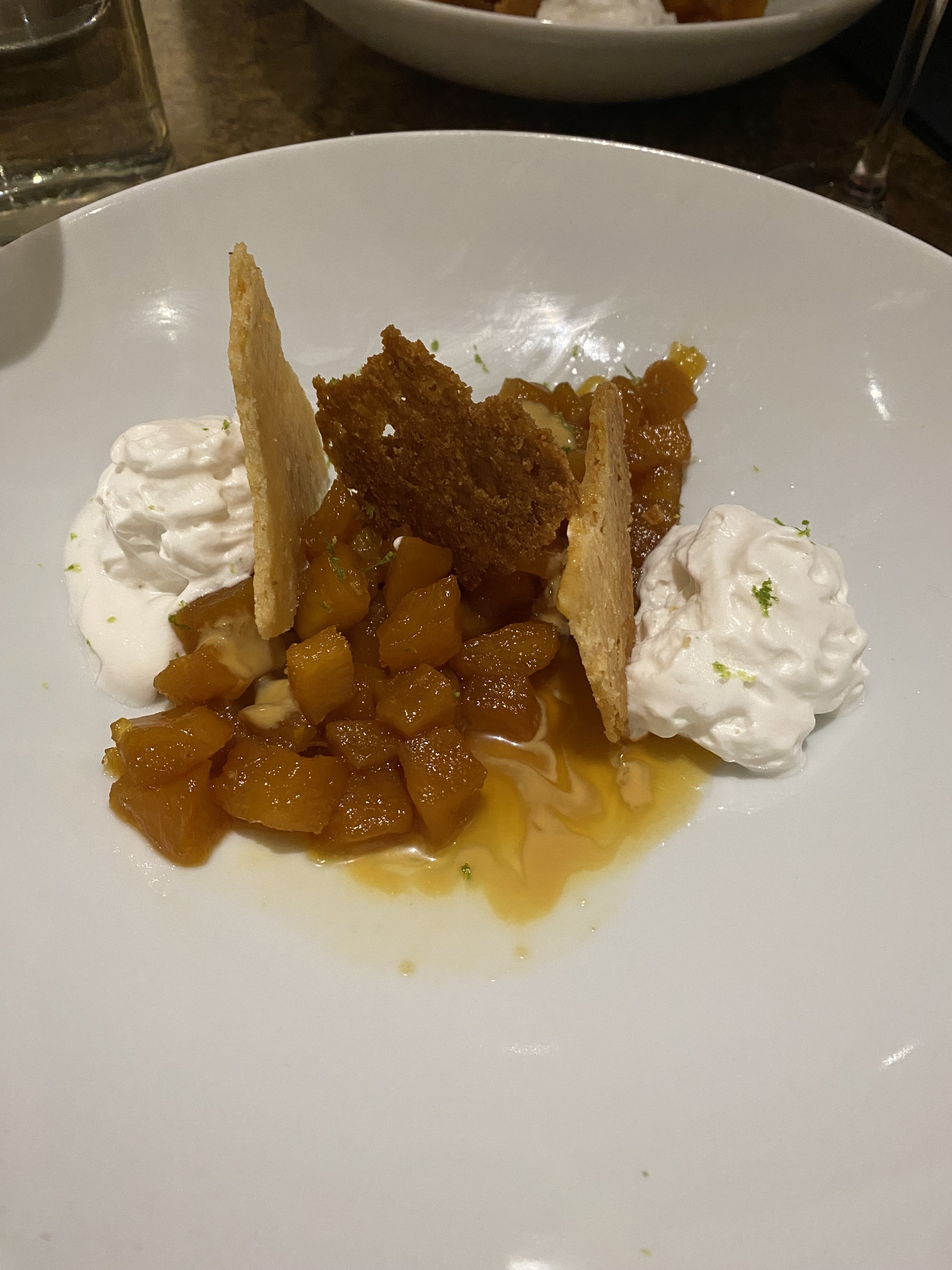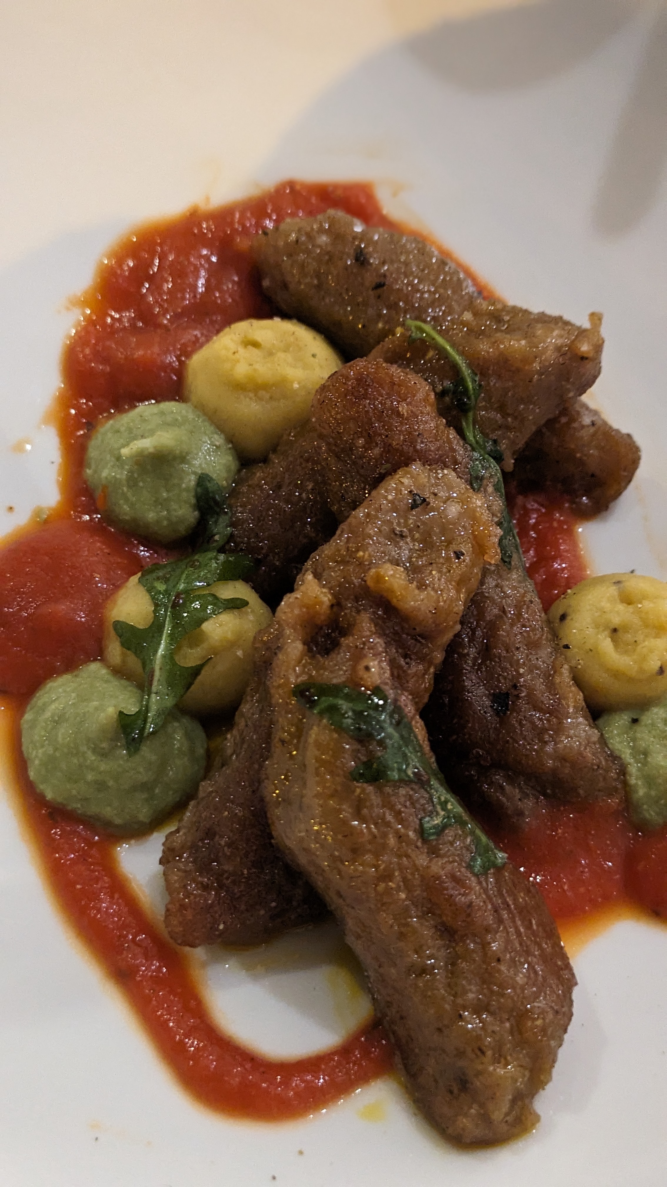Joli dans l’assiette mais fade, j’ai pris aussi un dessert mais ce n’était pas bon... je suis sortie de ce restaurant en étant déçue comme il m’arrive rarement. La personne qui m’accompagnait n’a pas aimé non plus. Le service n’était ni sympathique ni agréable, assez pressant même. Le restaurant était désert... À éviter
