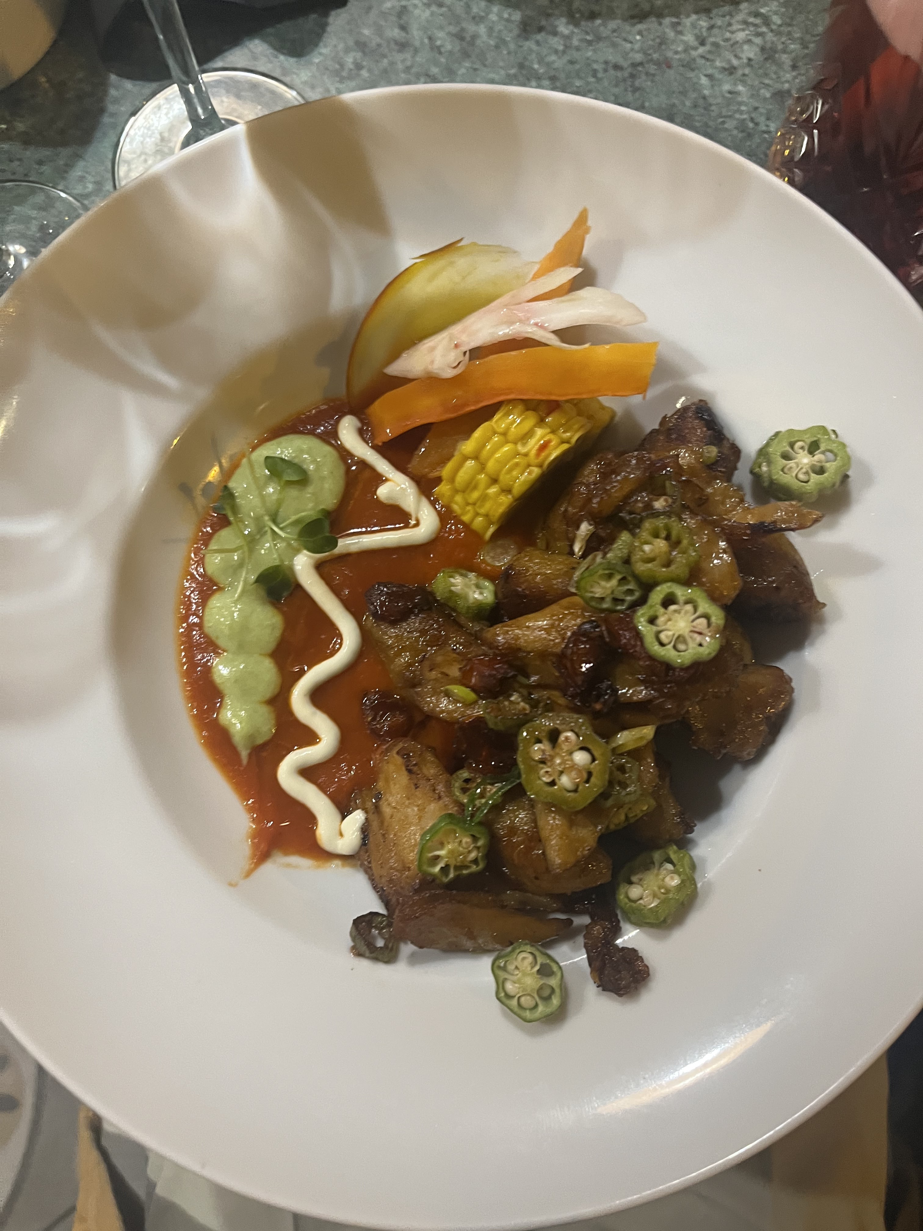nous avons passé un très bon moment ; les plats sont présentés comme dans un restaurant gastronomique , j'ai testé le mafé de canard = c'est un délice. l'ambiance du restaurant est chaleureuse, le patron super sympa. je vous le conseille !