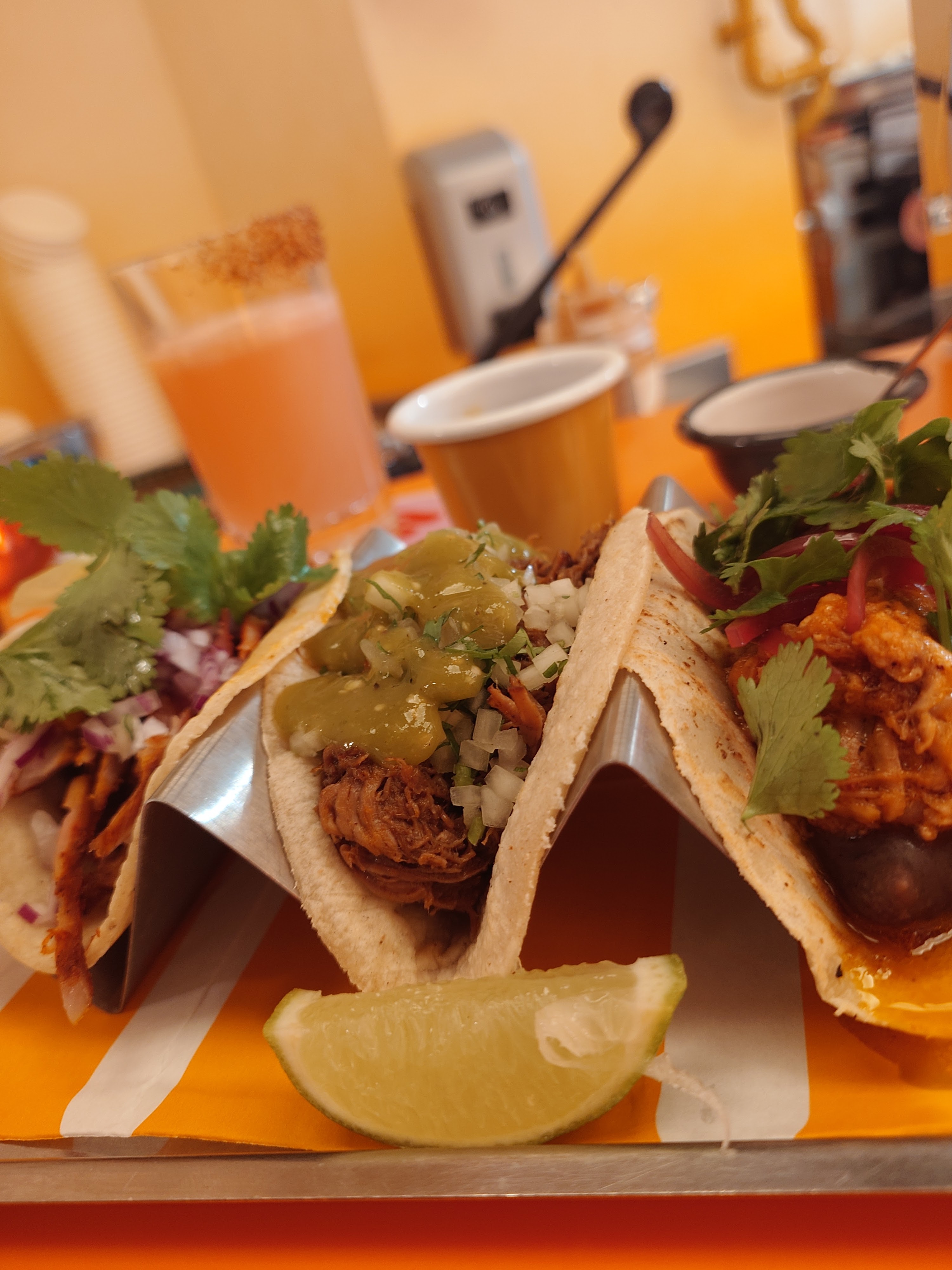 ☝️ Validé par un mexicain 🇲🇽 Tortillas faites à la main, viande délicieuse, taco végétarien très très bon et le dessert 🤤 (on a goûté les churros et le riz au lait 👌)