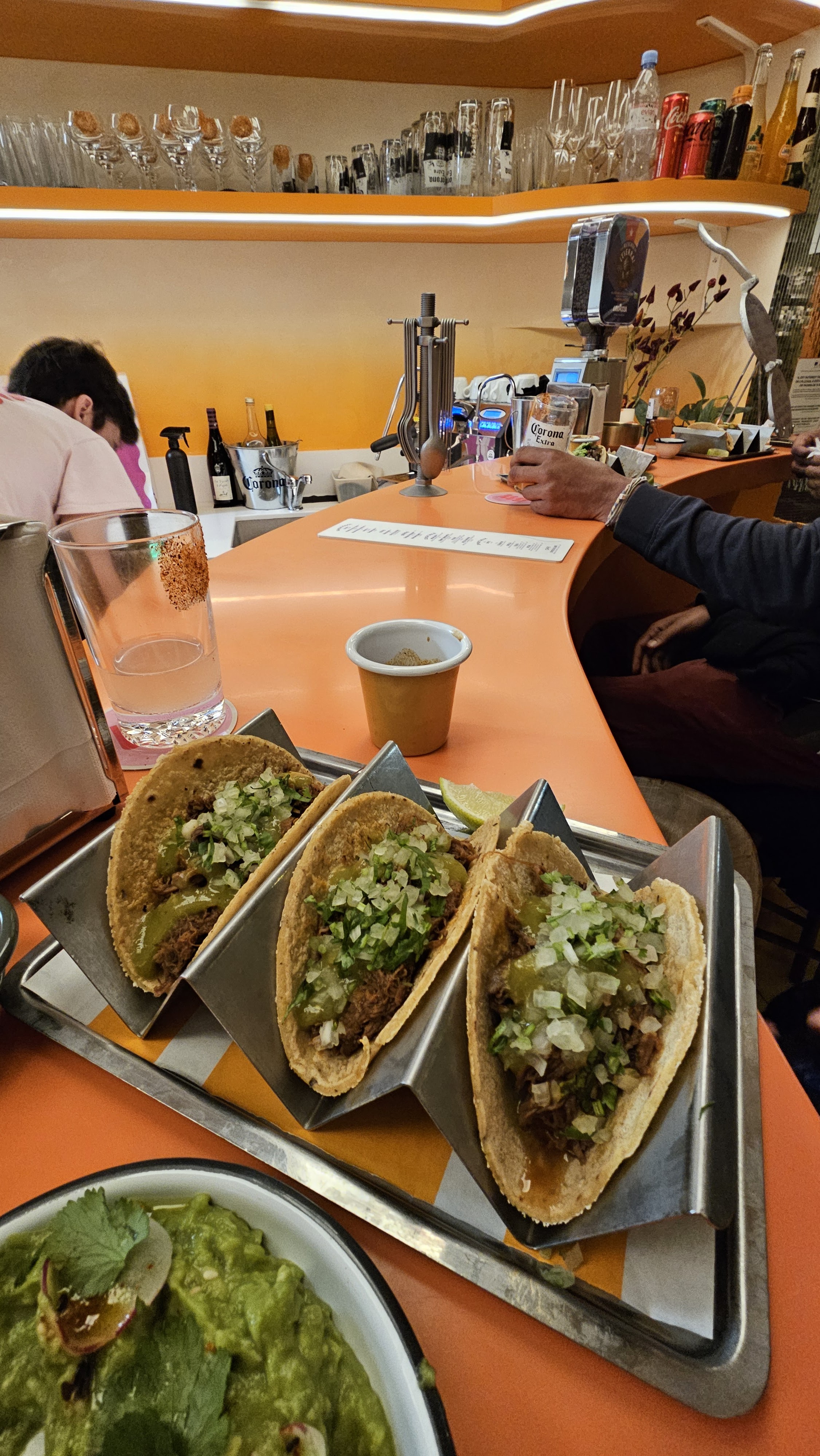 Les tacos sont bons, ils fabriquent les tortillas de maïs sur place. Ma commande a été incorrecte car il y a eu un problème de communication lorsque nous avons commandé un guac et des chips, mais deux sont arrivés. Nous leur avons fait savoir que nous n'en avions commandé que deux et ils ont dit qu'ils en factureraient 1, mais lorsque nous avons payé après avoir réalisé qu'ils nous en facturaient toujours 2. . le guacamole est un peu trop cher, nous avons donc fini par payer 55 euros pour notre déjeuner, ce qui était plus que attendu pour ce que c'est..