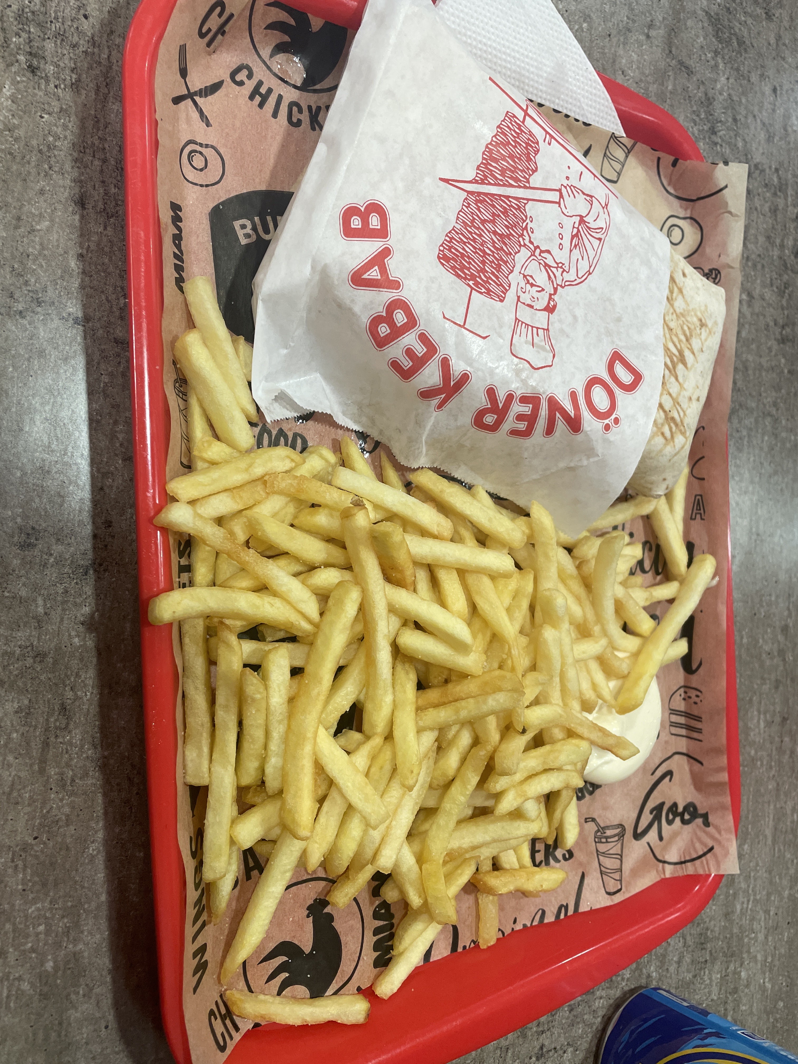 Commande faite sur Uber eat, rien à dire sur la livraison, en revanche la commande laisse à désiré, il y a à peine une poignée de frites dans la barquette elles sont très moles, voir pas cuites et sèches. Tacos et kebab galette bon, mais pareil, problème de taille, c’est assez minimaliste
