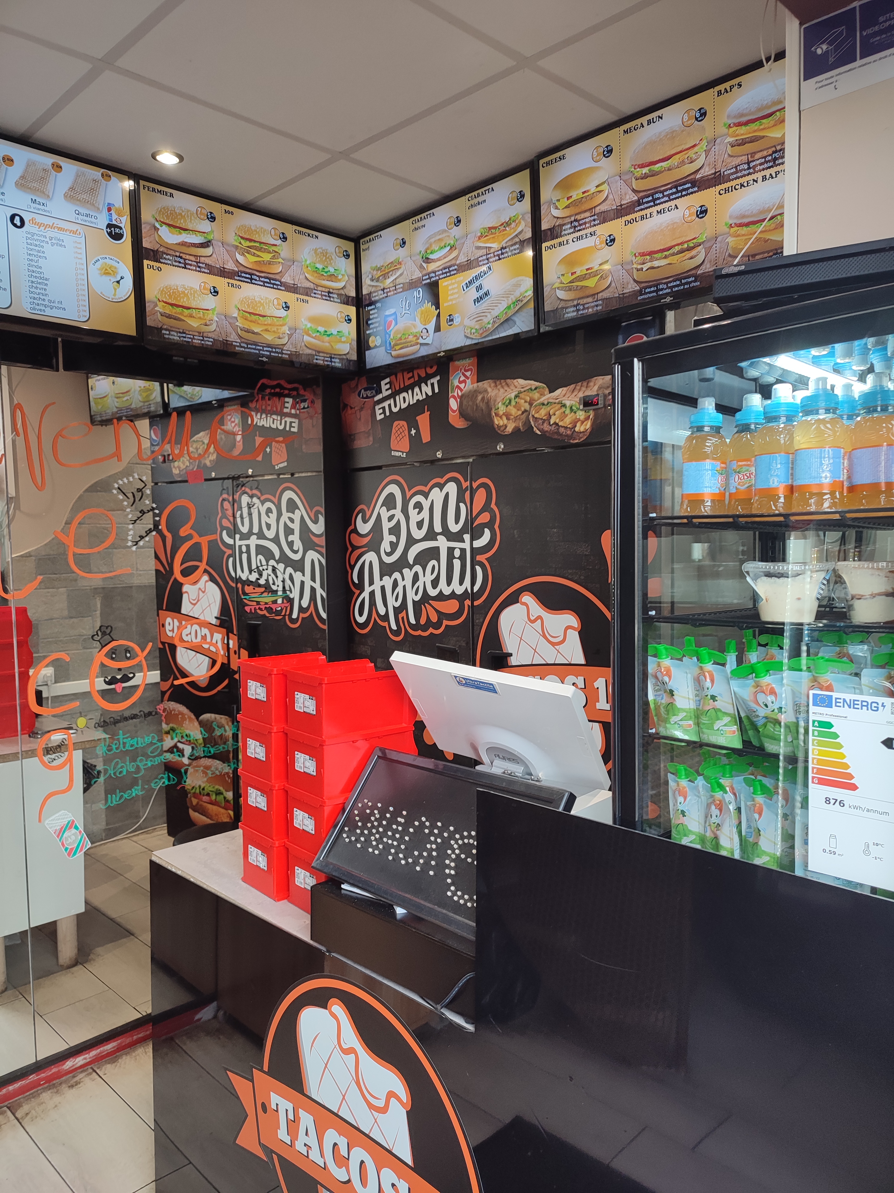 J’ai pu venir goûter un tacos j’ai demander un tacos 1 viande je suis aller manger mais là sauce blanche était dur à la place d’être liquide et la viande n’avait pas de goût , au payement je suis partie puis j’ai repenser que je n’avais pas payer , je suis revenue payer mais le monsieur me demande 9 euro alors que le tacos 1 viande est à 5,50 un truc du genre j’ai dis non ce n’est pas sa il m’a dis si j’avais pris tacos + boisson etc j’ai dis non et il a mis le prix à 6,50 euro ( prix du tacos 2 viandes ) mais non j’ai payer comme même pour arrêter ce spectacle
