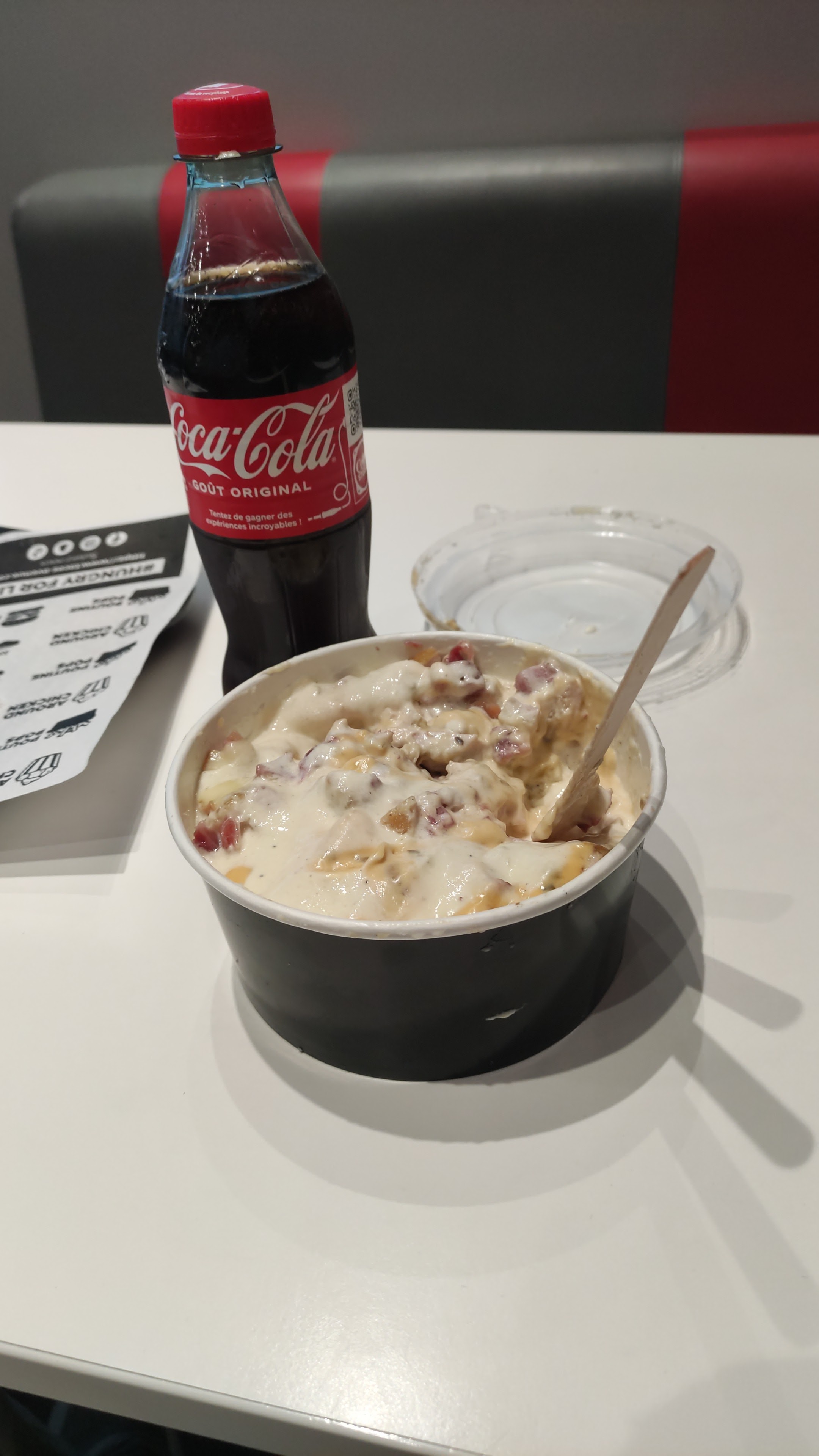 Poutine pop à eviter, 12.50€ que la poutine sans boisson sans frites, quantité convenable mais viande bas de gamme (poulet en cube) le goût n'est pas au rdv. Tiramisu bueno ,très déçu, l équivalent d un carré de la barre bueno émietté dessus et mou. Wrap bueno, pas de nappage dessus comme sur les photos et garnis principalement de nutella. Je ne recommande pas de choisir la poutine, cher pour ce que c'est, ni les desserts. Ce sera la dernière commande pour nous à cette chaine.