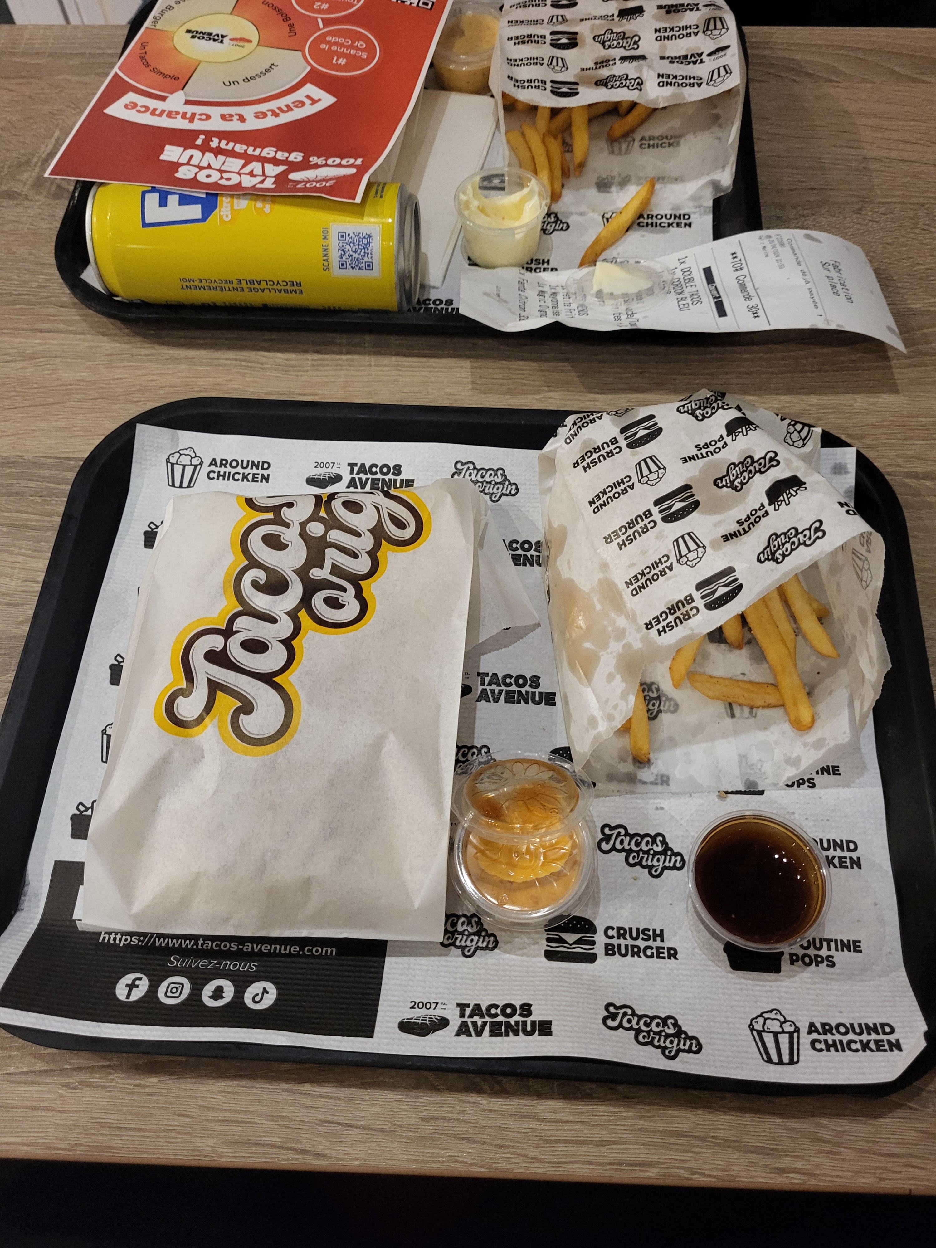 Les tacos ne sont pas fou , ni horrible . Un peu déçu par rapport aux premières fois que j'y ai mangé. En revanche service rapide et efficace . Employé souriant malgré le rush.