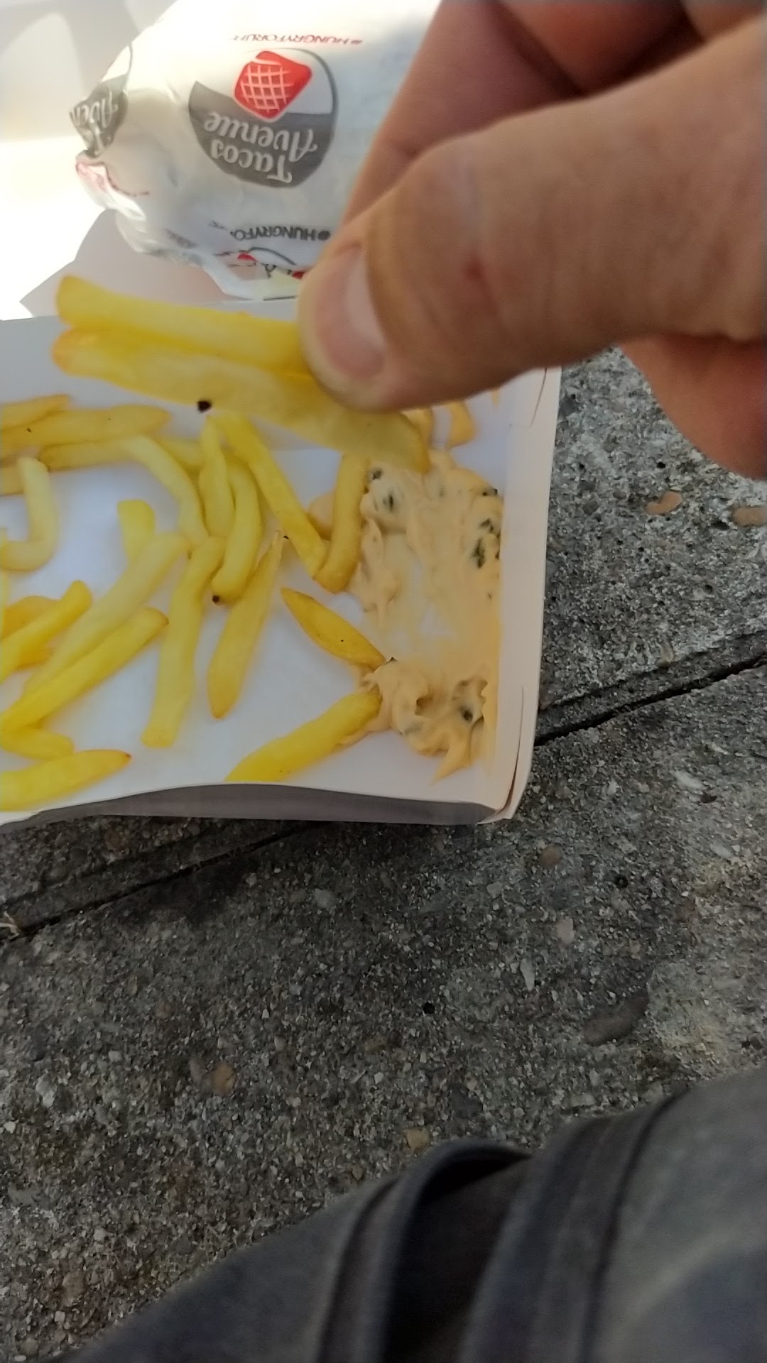 Le tacos était sec, l sauce fromagère était granuleuse, je ne sentais même pas les sauce que j’avais demandé sachant que le chili thaï est assez relevé. J’avais l’impression de manger un tacos au frittes. Je ne recommande absolument pas.
