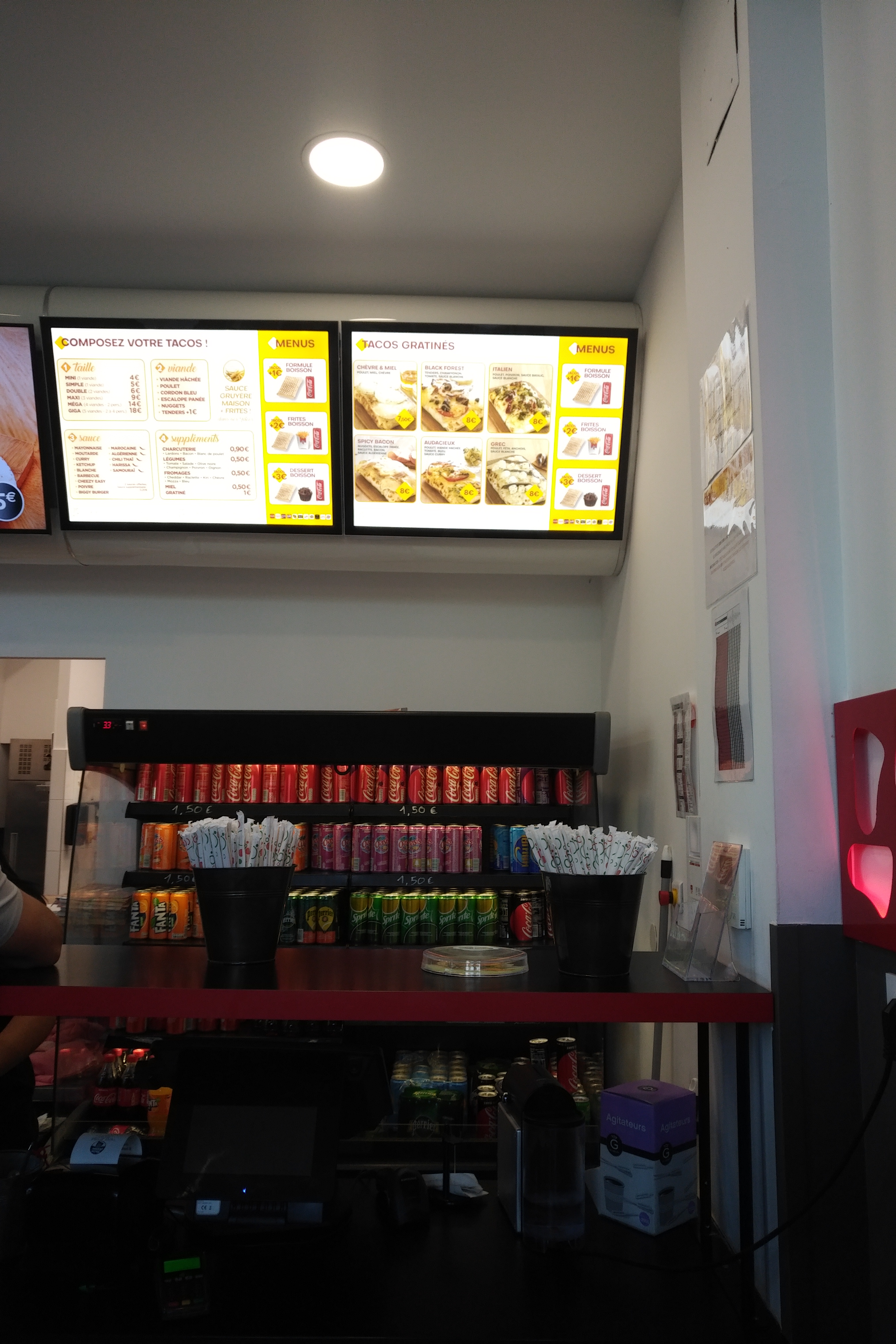 C'est beau à l'intérieur mais j'ai du payer 7€ pour un mini tacos avec boisson et frite un peu trop cher à mon goût sachant qu'à 5.50 tu peux avoir un grand tacos