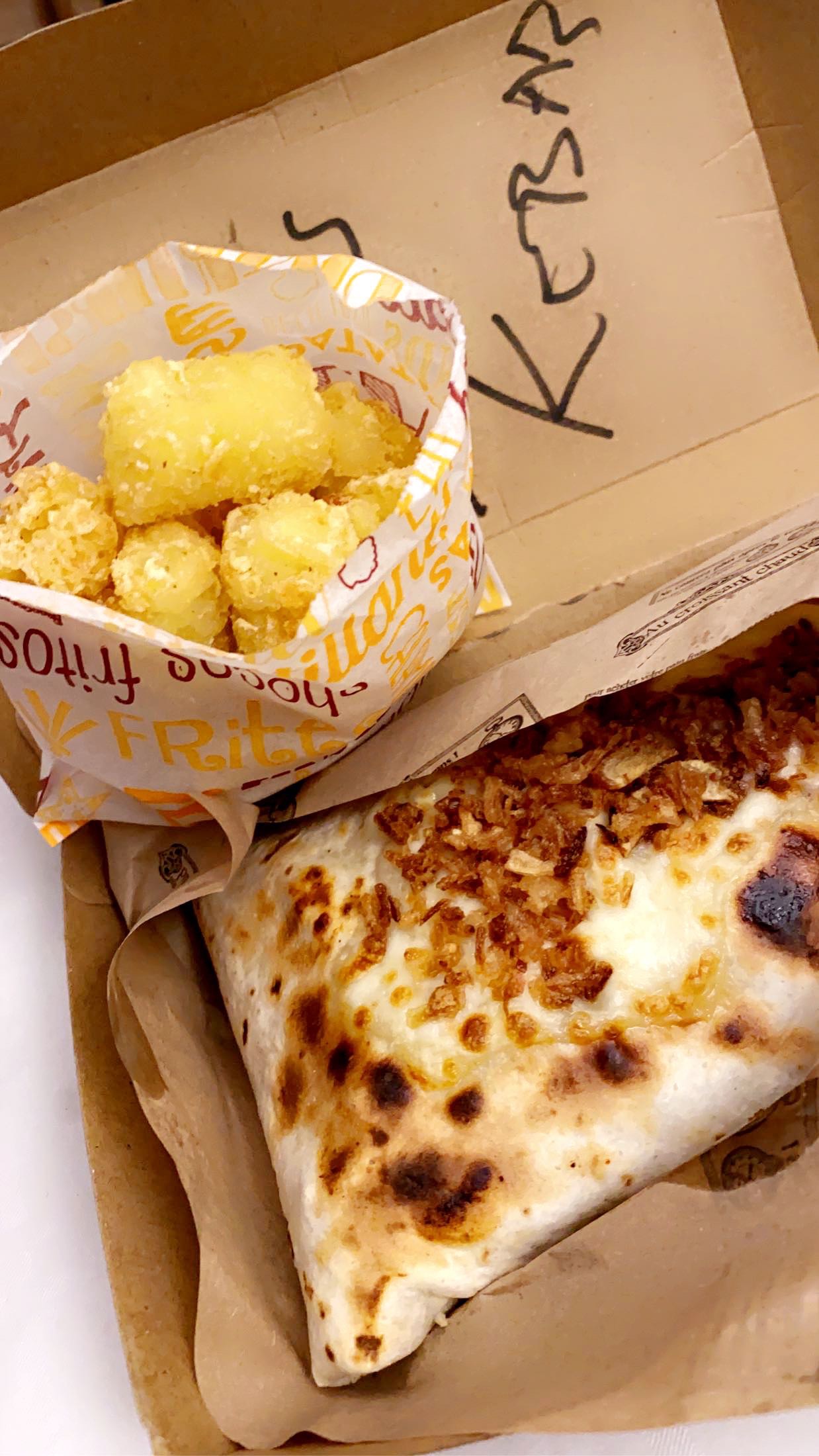 Le poulet dans la poutine est vraiment mauvais. Quand au tacos sucrées, ils sont chères pour la taille, les vendeurs ne prennent pas la peine d'écrire sur l'emballage ce qu'il y a dedans du coup c'est chiant. Et en plus dedans il n'y avait pas ce que j'ai commandé, bref déçue.
