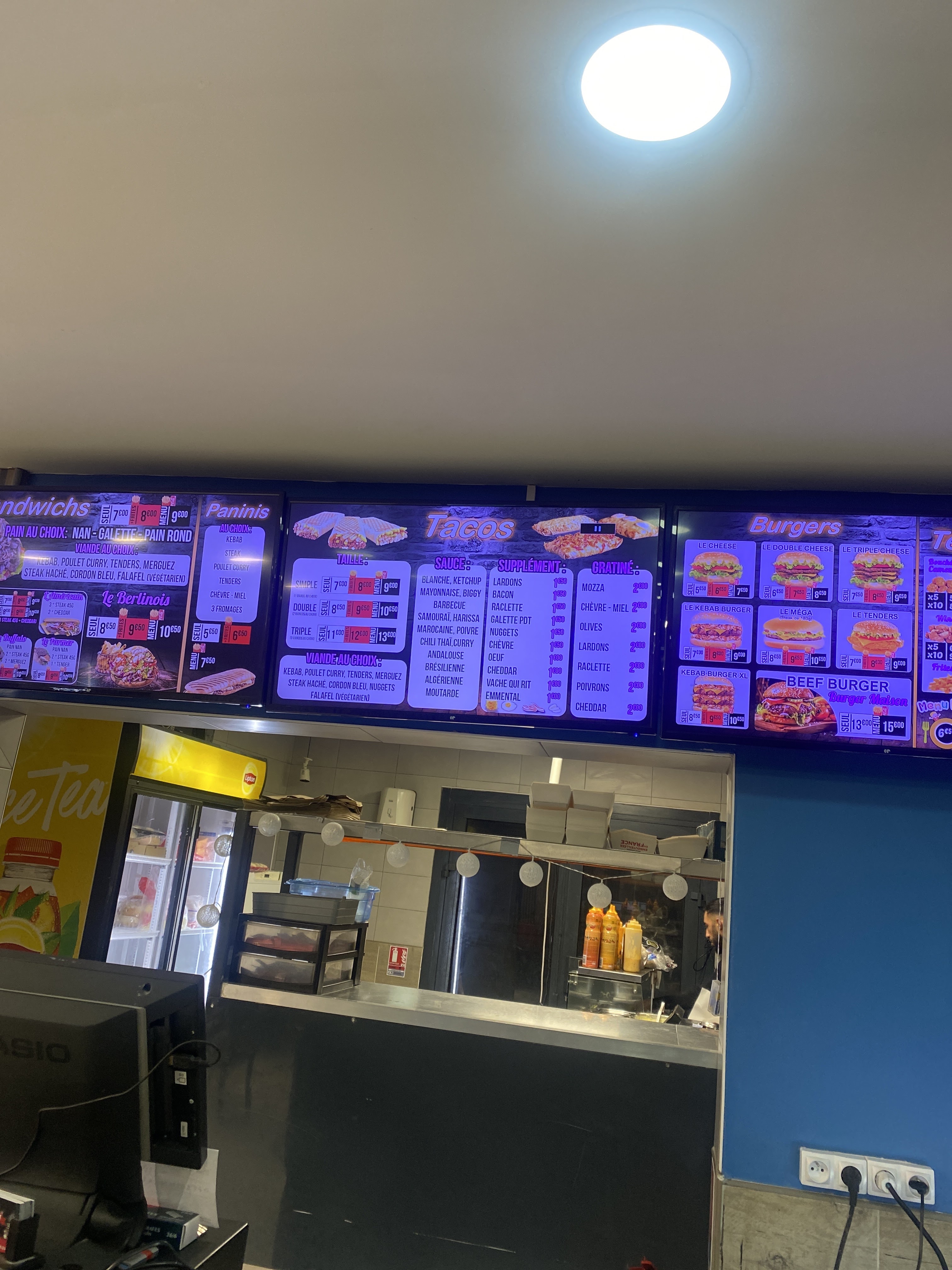 Quand on rentre, le patron semble sérieux derrière le comptoir mais en fait il est commerçant et agréable. Les tacos et kebab sont bons. Faut y aller