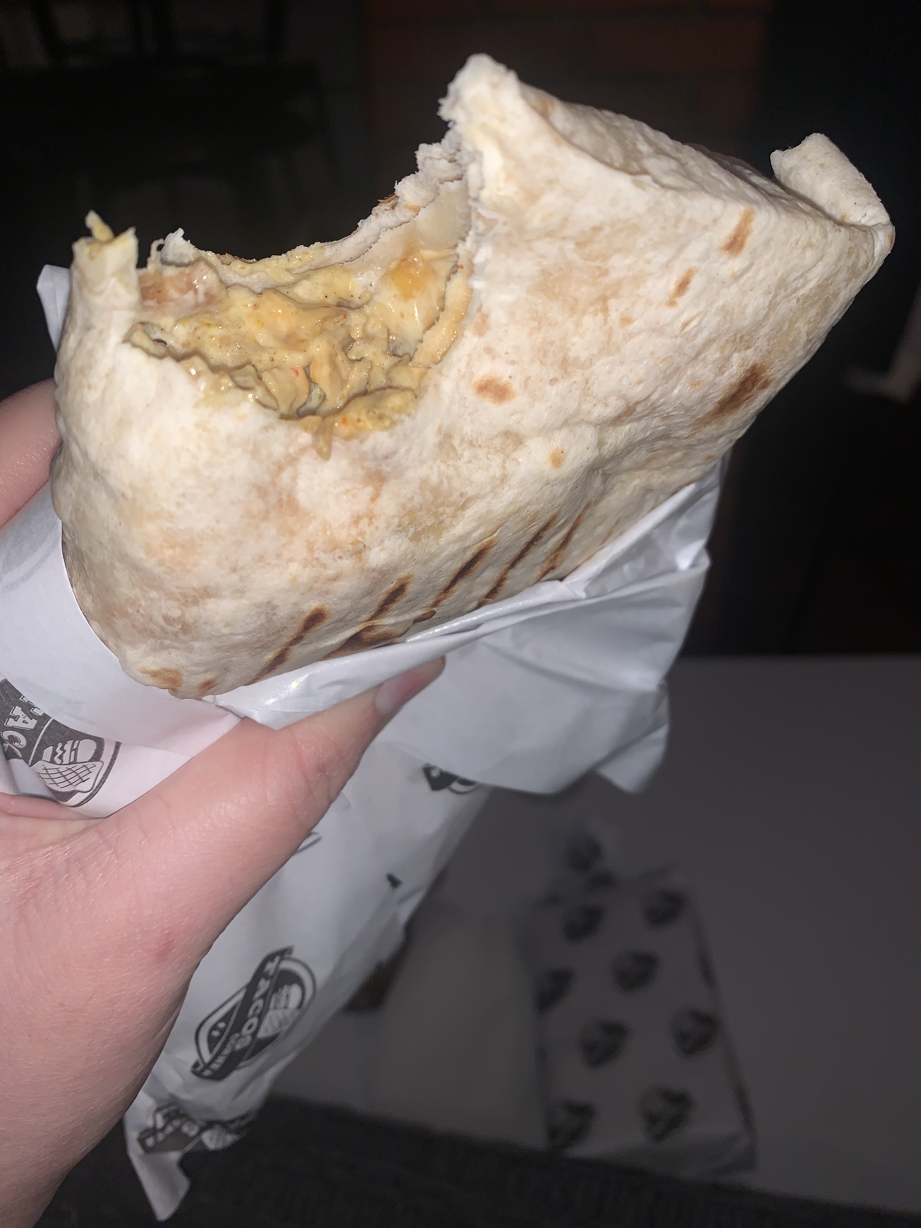 Tacos filet de poulet qui sent l’ail Tacos mal fermée Bourré d’huile 👎👎👎👎👎