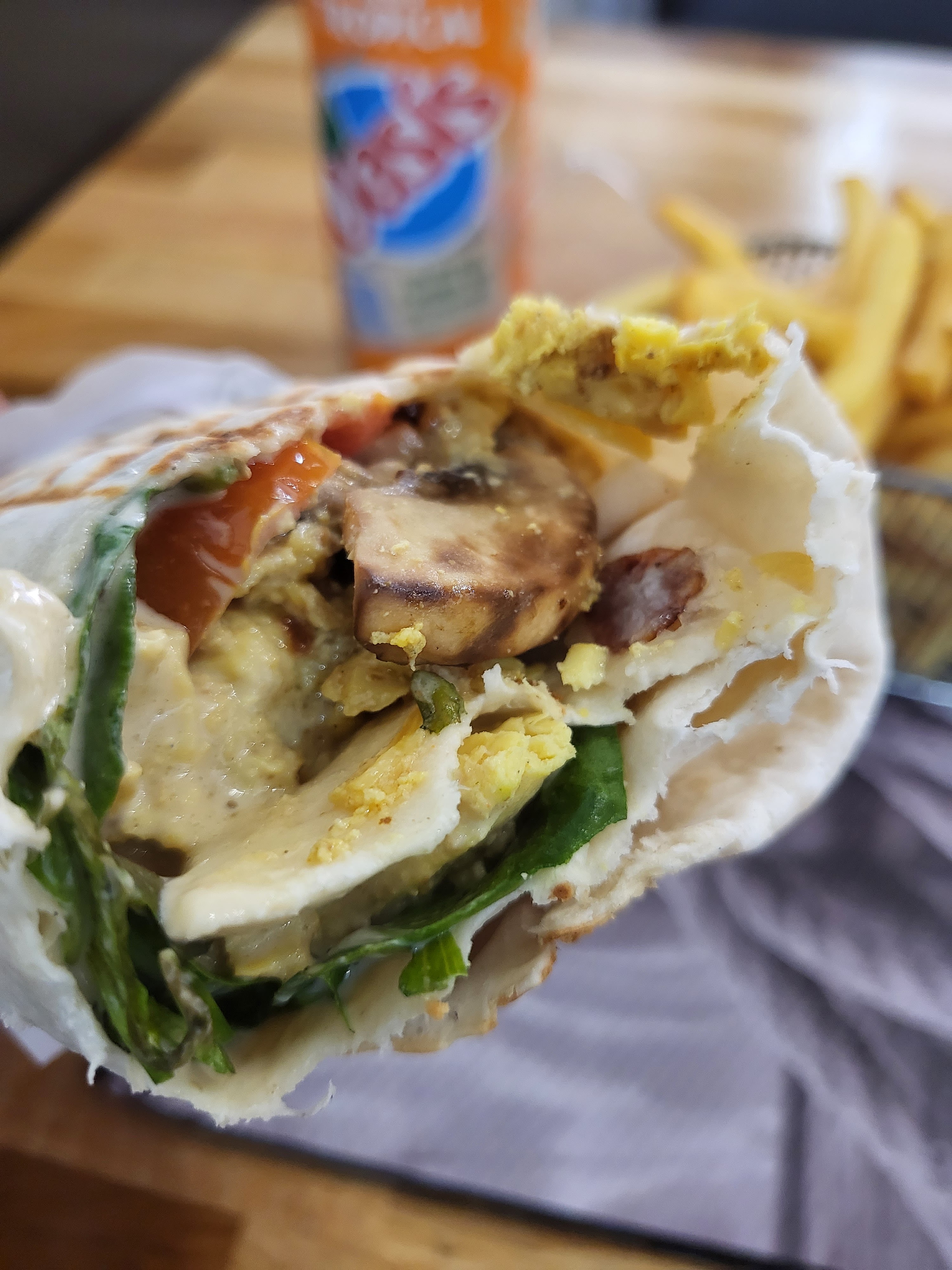 J'ai pris une poutine, préparée en 5 min donc rechauffé.Les frites étaient molles, le poulet bof et le fromage sans goût. J'aurais peut être dû prendre un tacos parce que là, c'était vraiment pas terrible.
