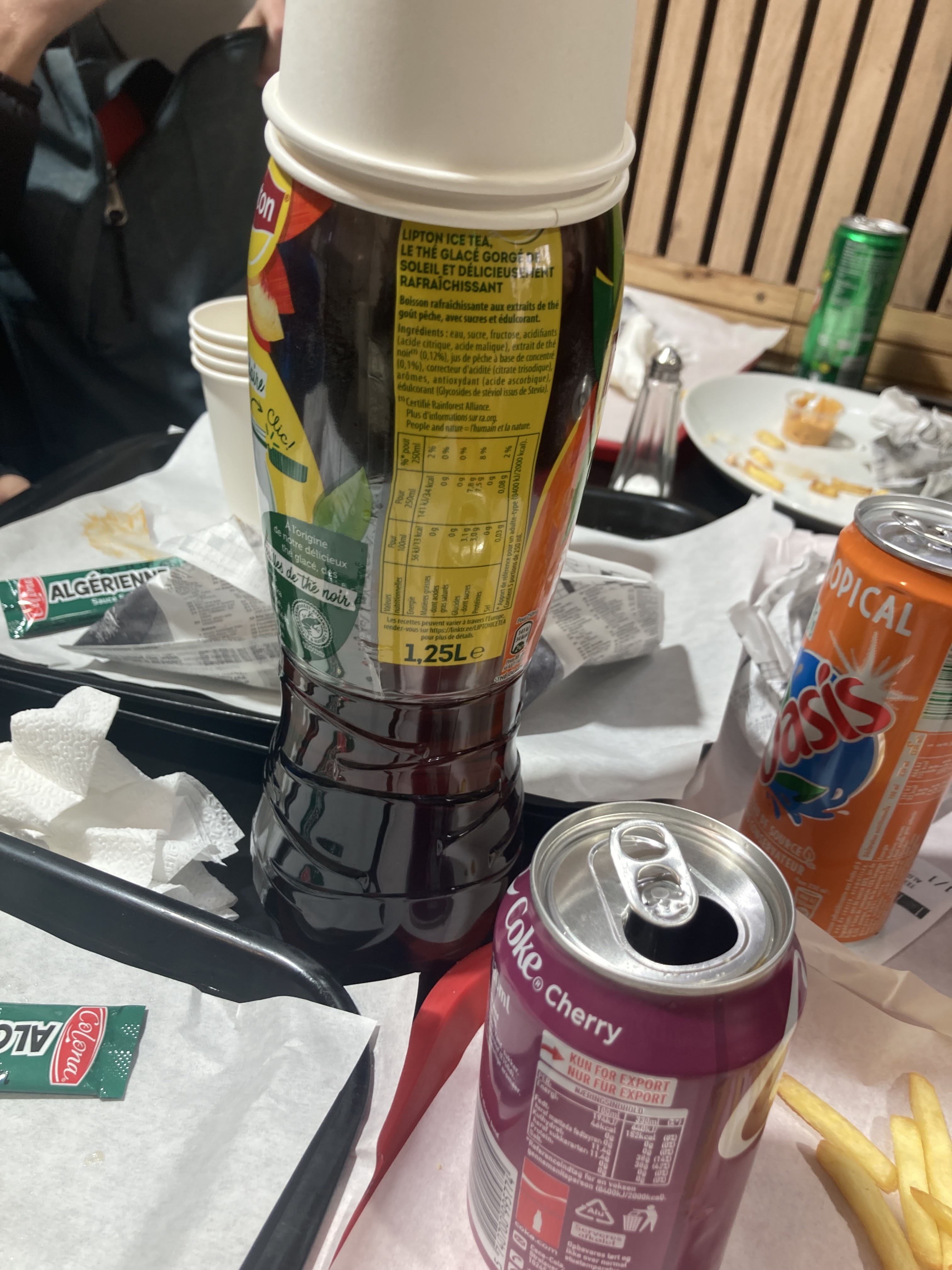 C’est très très gras ! Trop gras l’huile dégouline. Les saveurs sont fades, je ne connaissais pas les tacos, avec ce que je viens d’essayer d’avaler je risque pas de re-manger un tacos. Il va me rester sur l’estomac un moment. L’ étoile est pour pour les canettes de Coca qui sont toujours au top.