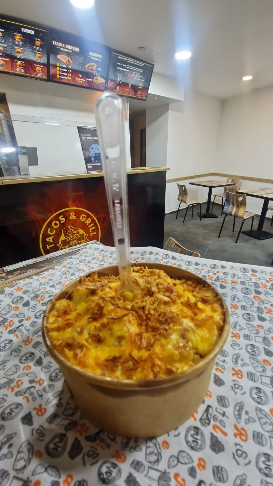 Attention : cette note concerne un tacos double viande poulet sauce samurai simple et gratiné chèvre miel et raclette,pris plusieurs fois, au moins plus de 10 fois Difficulter ✅✅☑️☑️☑️ (Ça reste du fast good, pas besoin d'être un cuisinier pour faire ça) Degré de réactivité/Relationnel✅✅✅✅ ✅ Les 2 hommes qui gère sont très agréables, sympathique , la base. ( je devrais pas le souligner mais certain endroit mérite des salades de phalange par manque de relationnel) Rapidité et efficacités ✅✅✅✅✅ Temp d'attente inférieur à 15min Qualité du travail fourni✅✅✅✅☑️ Le tacos chèvre miel gratiné manquerai de quelques rondelles de tranches de chèvre sur le tacos Le tacos raclette gratiné, rien à dire, assez de fromage dessus. Rapport qualité-prix ✅✅✅✅✅ Voilà, le seul problème concerne le gratiné chèvre miel cité dessus) Je recommande ⛔(Attention note sujet à être mise à jour) ⛔