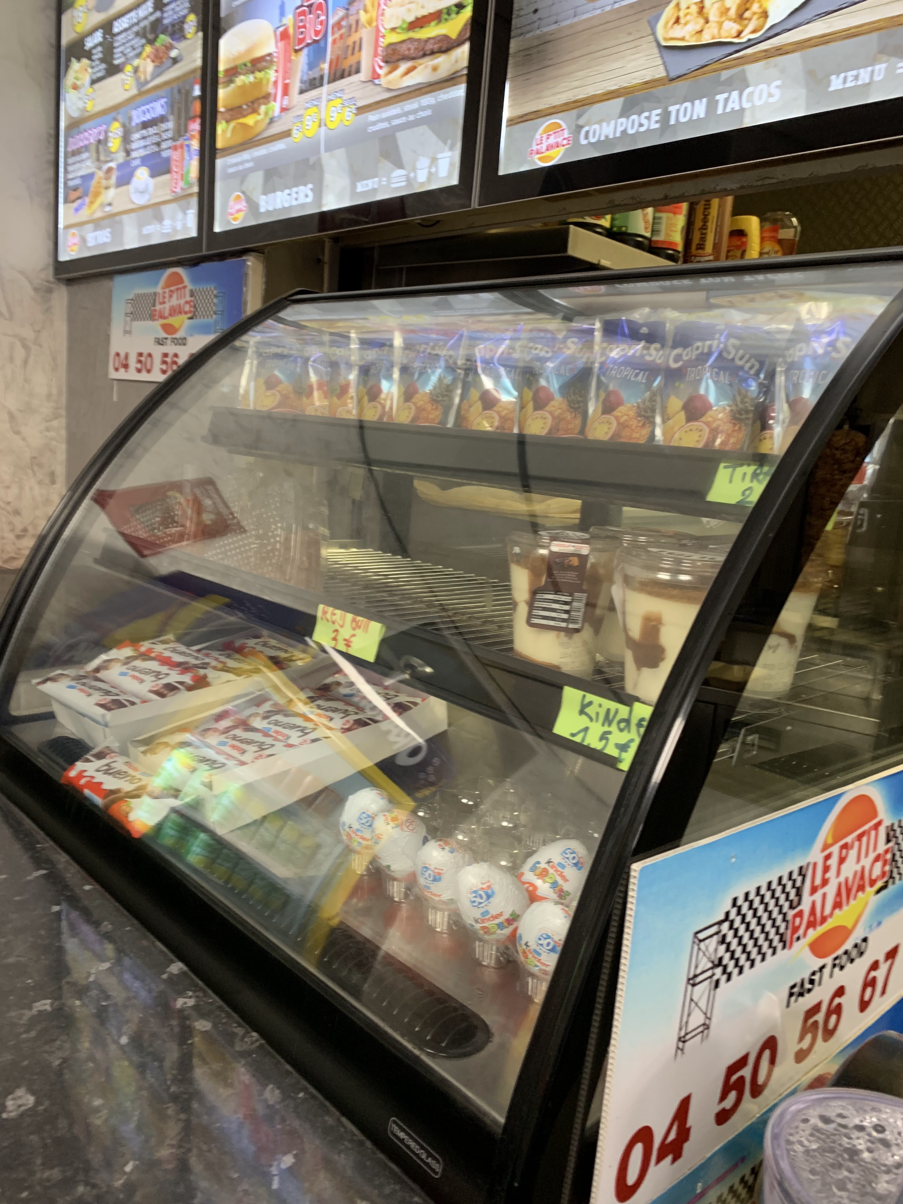 Plusieurs fois déçu , après des services de livraison à domicile déplorable, il manquait toujours un produit , le prix est plus cher au moment du payement. Nous avons voulu réitérer mais cet fois directement au restaurant, il n'y avait pas de Kinder dans le menu enfant pourtant c'était énoncé, les tacos bourré de sauce et de frite , nous avons cherché la viande casy inexistante, nous avons aussi pris une barquette de frite au bacon , avec un goût avarié et des frites molles baigné d'huile et sûrement réchauffer plusieurs fois au micro ( la barquette fini à la poubelle inmangable ) Cet fois plus jamais ! C'était la fois de trop.