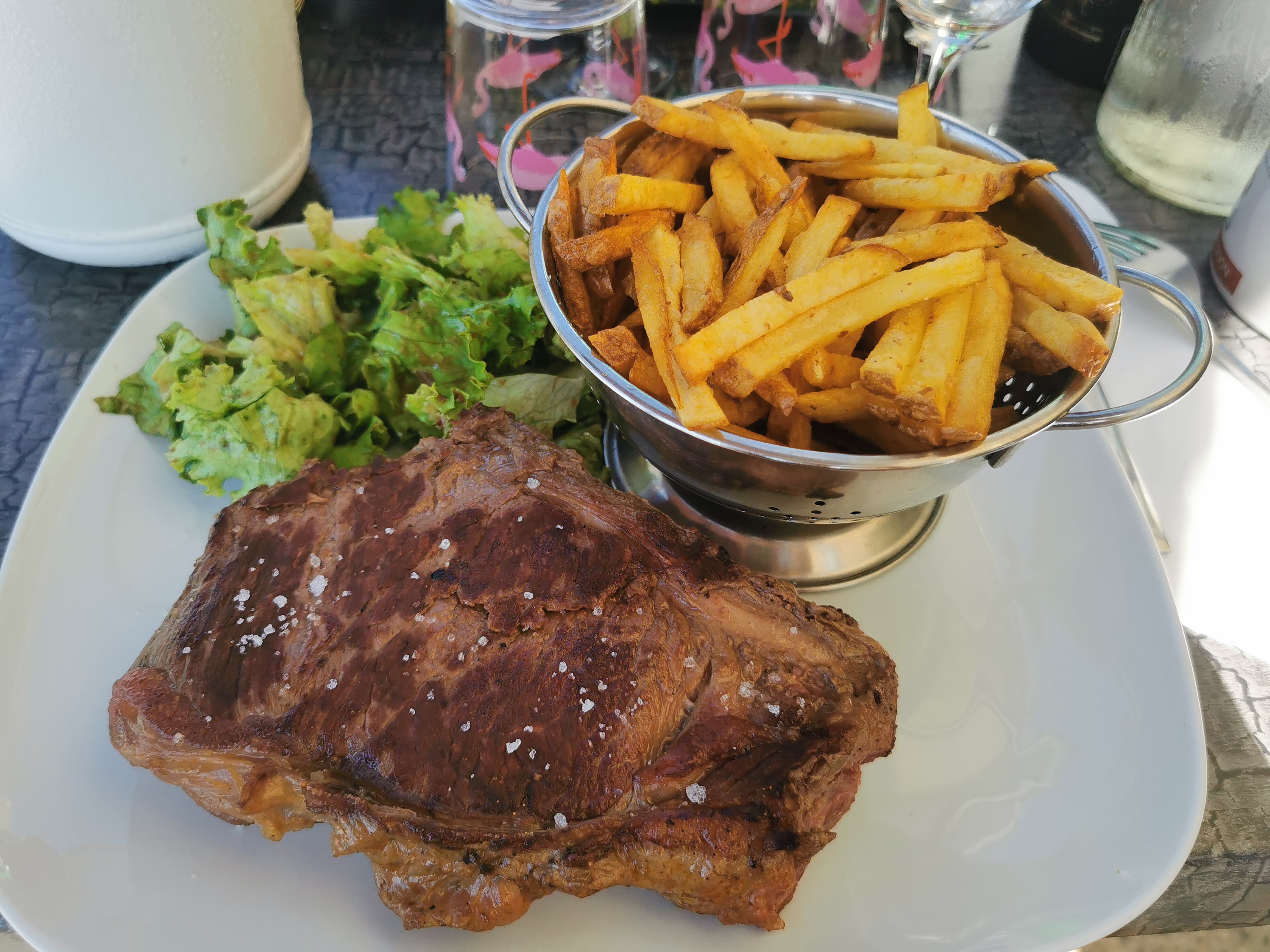 Accueil super sympa, très pro. Frites maison qui ont régalé la petite et cuisine fraîche délicieuse ! Gardiane de taureau fantastique sauce exquise . Pic saint loup parfait