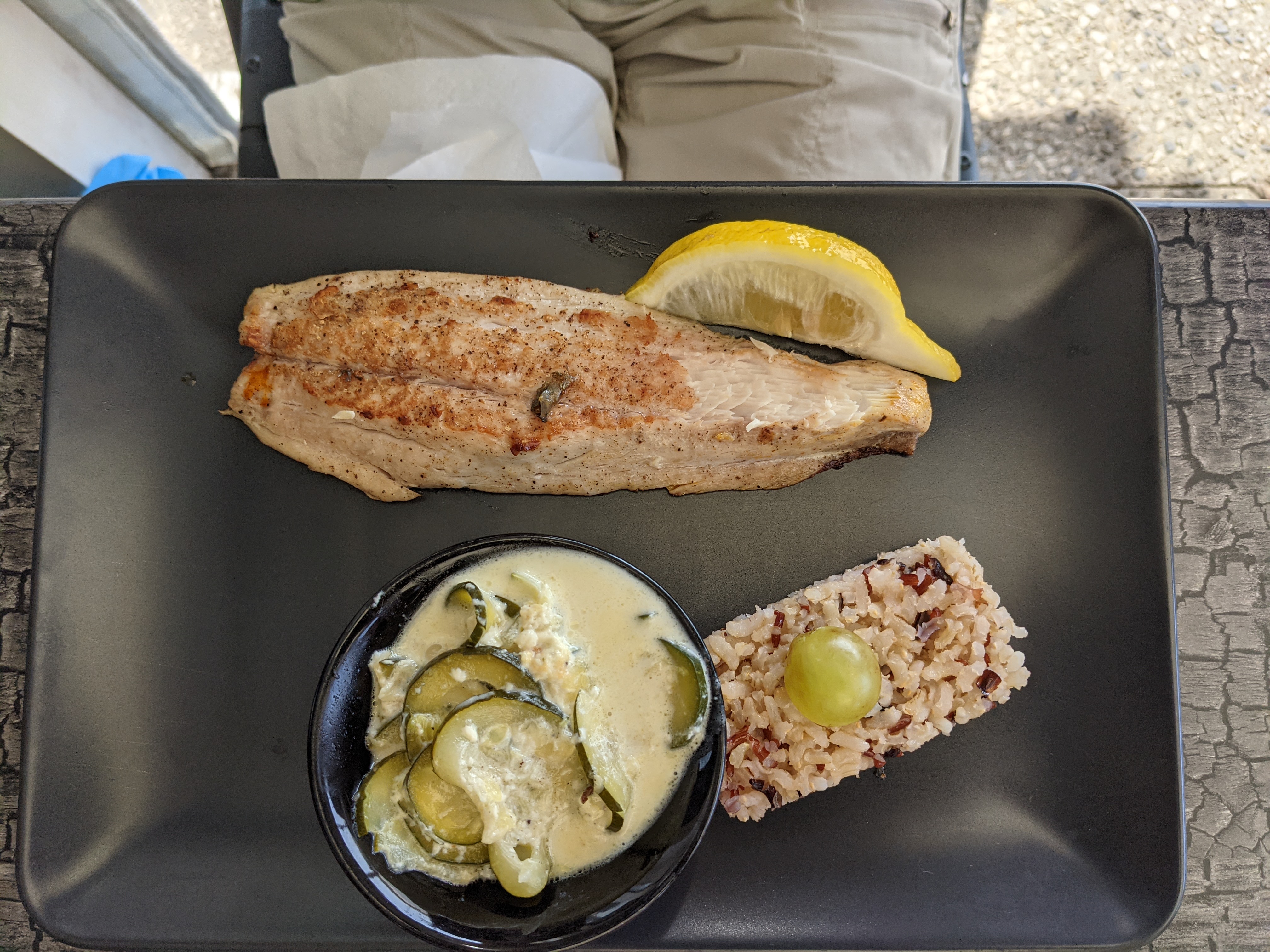 Très bon repas : Au menu soupe de poisson accompagné des croutons et de la rouille Filet de muge avec riz et gratin de courgette Crème brûlée (le seul bémol du repas) Je recommande rapport qualité prix super