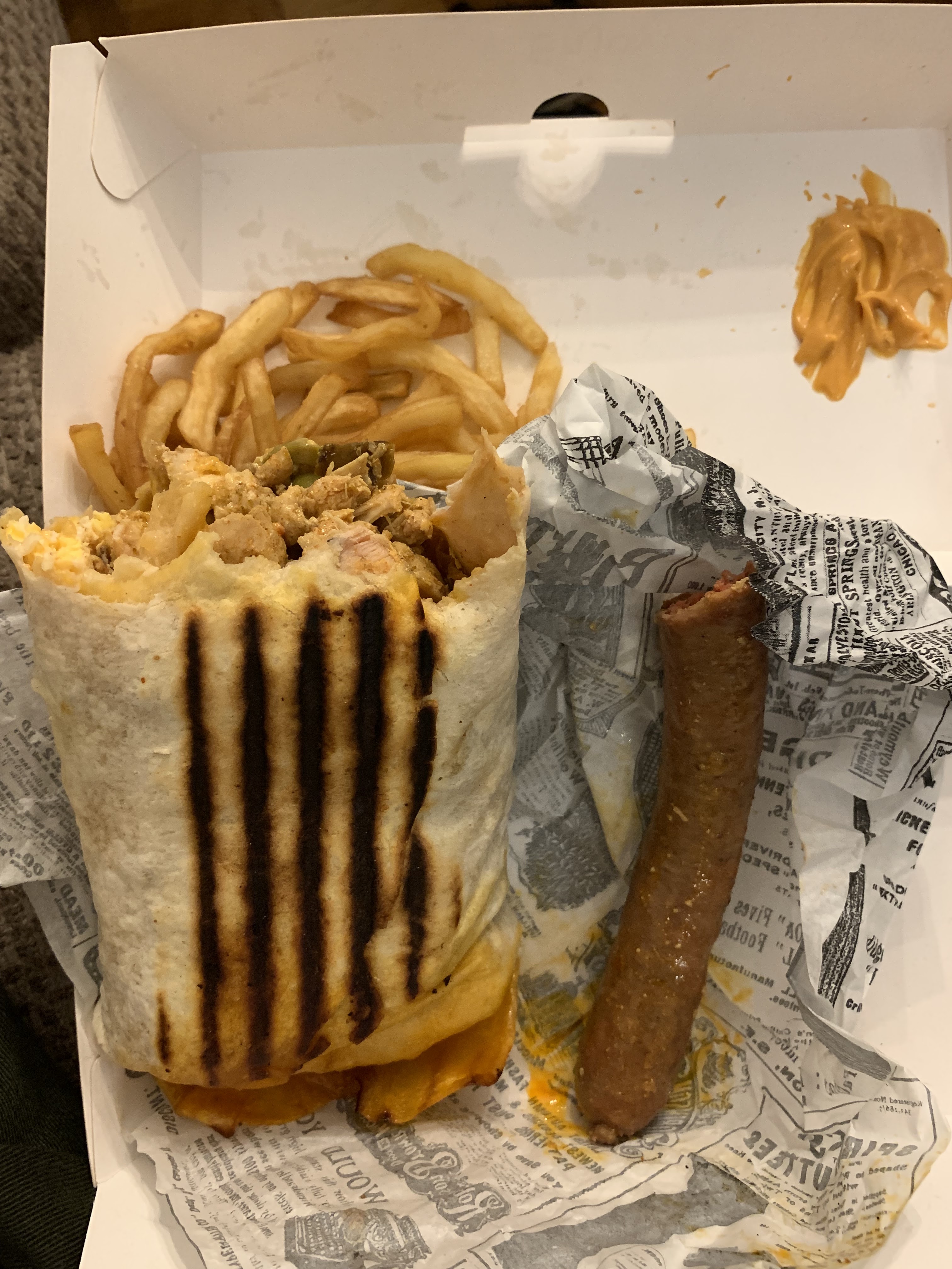 Un établissement qui a un certains charme. Un accueil neutre qui se traduit par l'absence de tout sourire, mais un service plutôt correct malgré tout. Nous avons commandé un tacos, et il faut dire que l'emballage soigné nous a bien bluffé car il est bien réalisé ! En revanche seul un format pour un seul prix est disponible pour les tacos, et autant dire que ceux-ci n'auront pas nécessairement de quoi combler votre faim si vous avez un appétit d'ogre. Les sauces fromagères et blanches étaient un peu fades en comparaison de celles au curry et au burger. Un rapport qualité prix moyen.