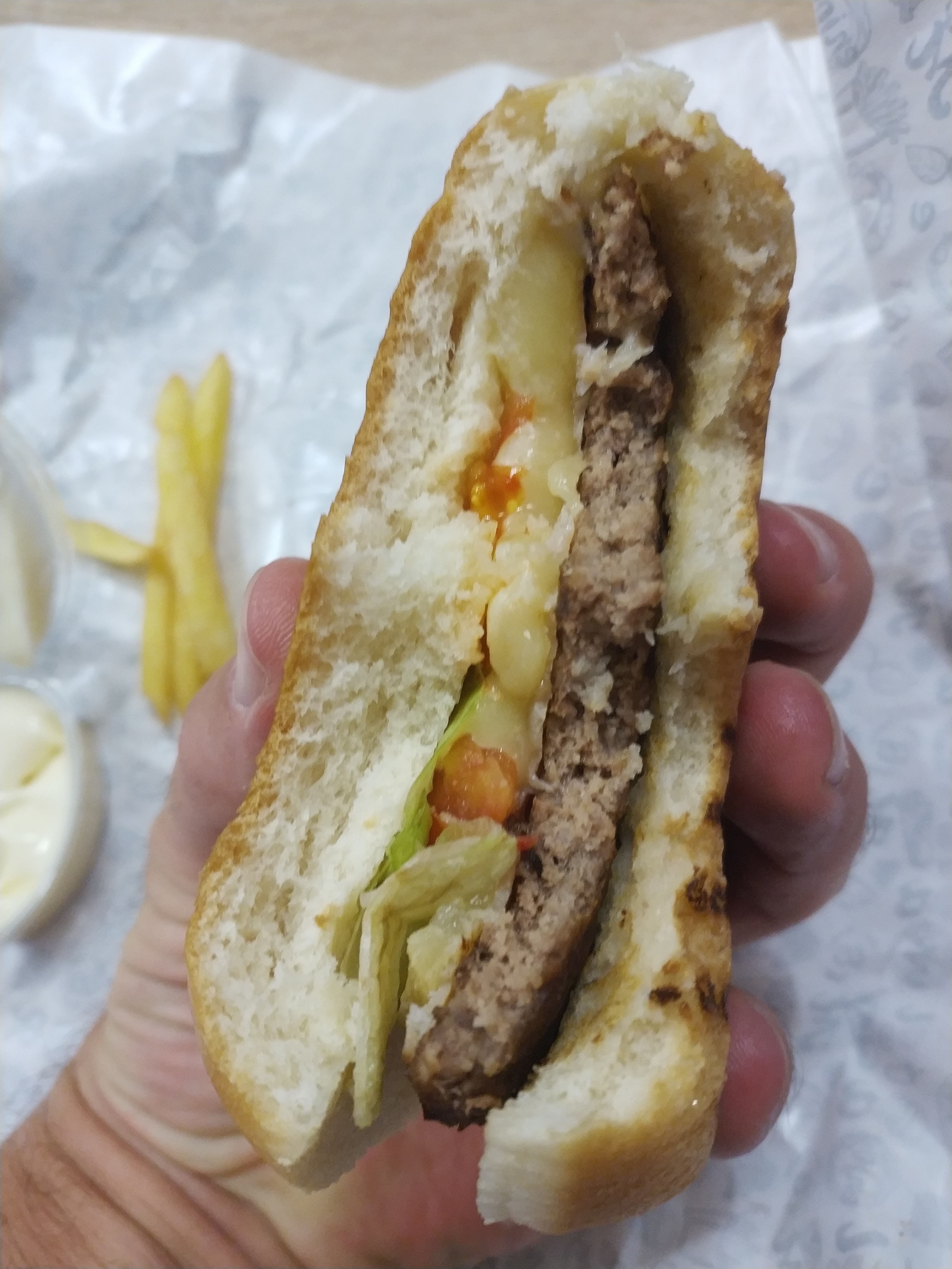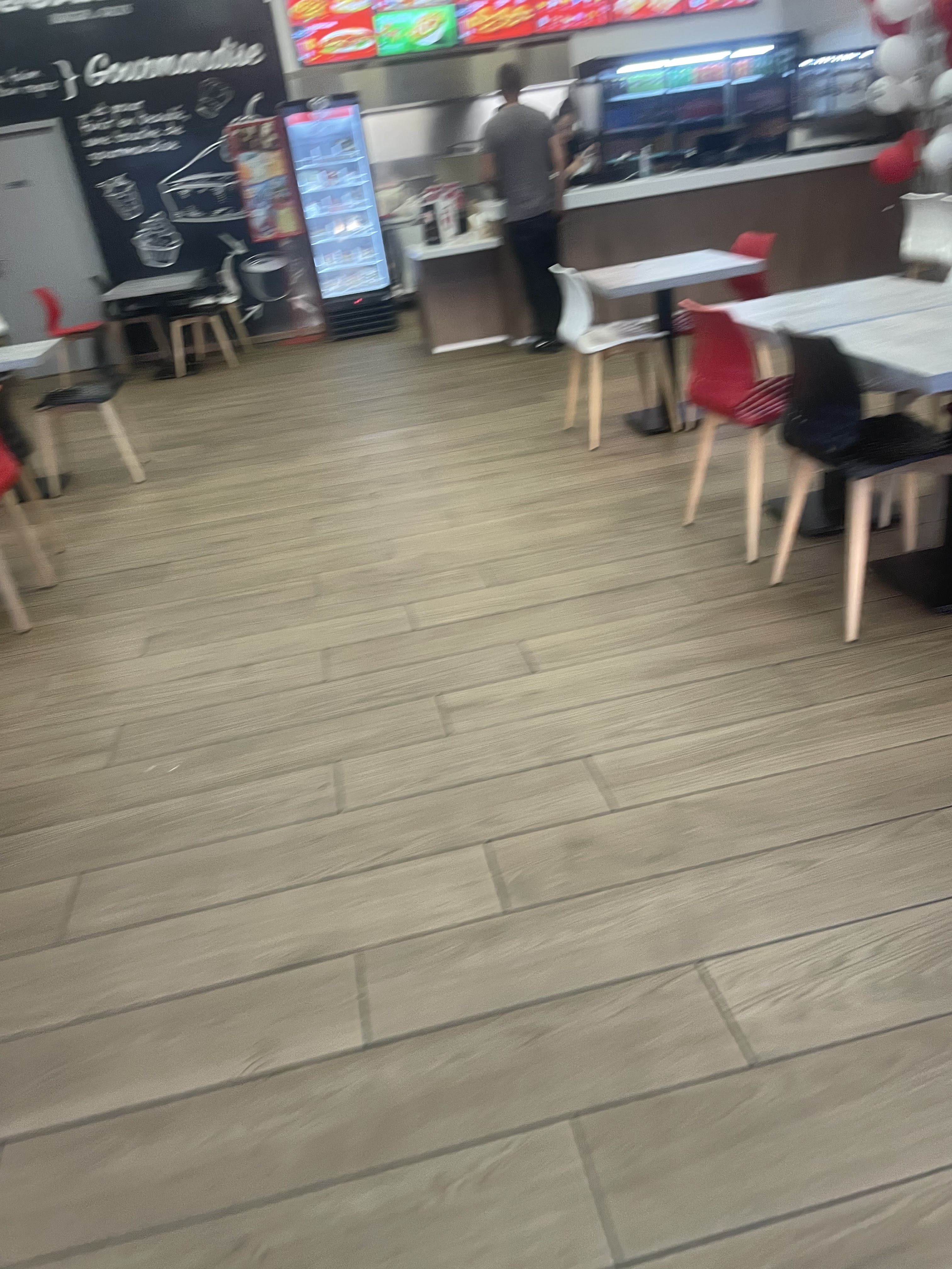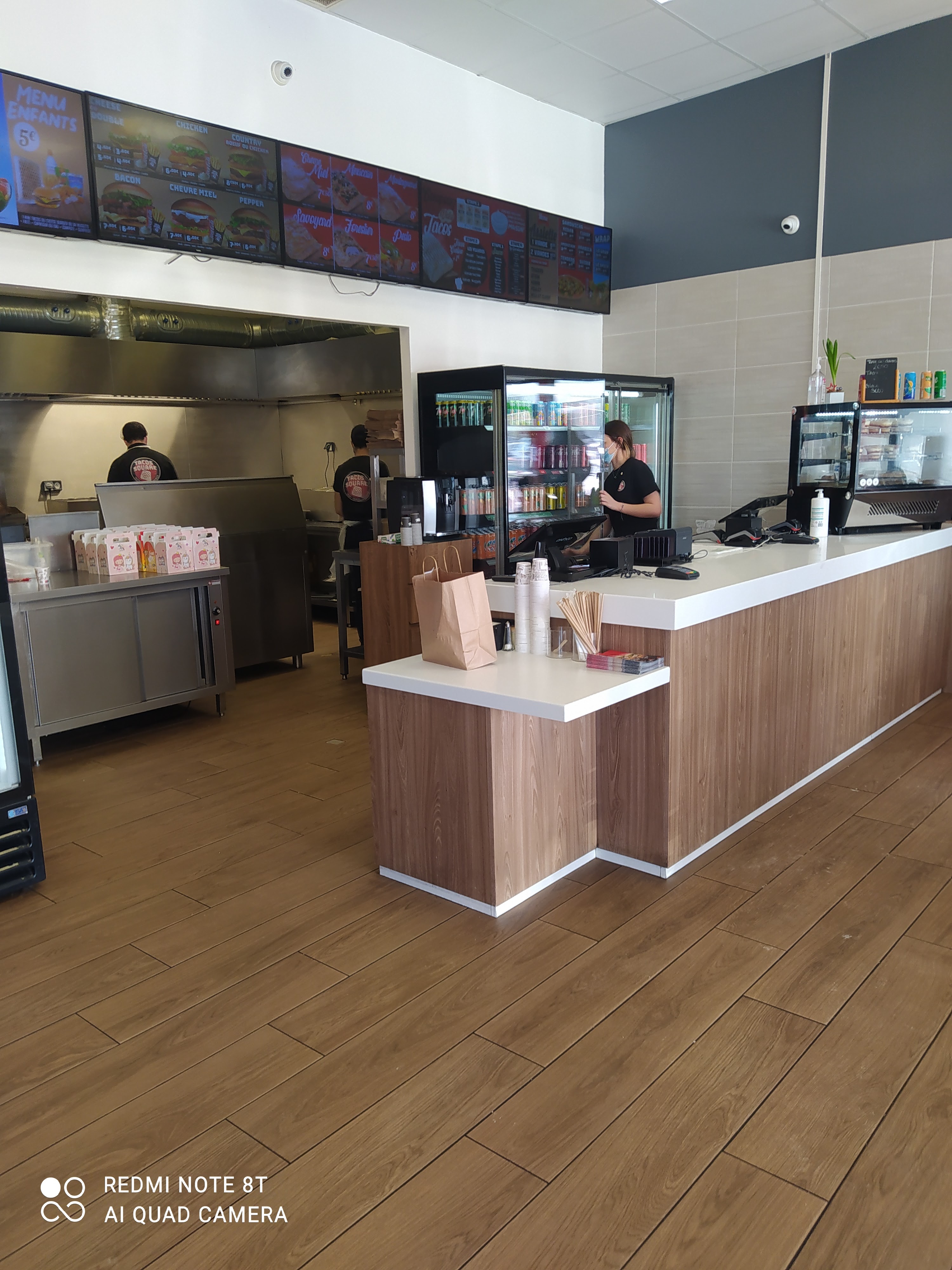 Bien situé dans un endroit où y a forcément rien d’autre à côté pour ce restauré, service rapide, seul quelques petits inconvénient, le bruit dans la salle c’est une horreur, l’odeur en rentrant mais c’est dans tous les snacks, les quelques mouches, question bouf sa va dans l’ensemble salade pas très copieuse assiette petite lol pour de la salade j’ai commandé tenders j’ai eu des nugets le cheese il faut le grille à l’intérieur et pas de salade avec mais plus des cornichons mais c’était bon. Je met ces quelques avis en espérant pour vous de chercher à vous améliorer et engranger plus de client, vous pouvez faire beaucoup mieux et vous pouvez avoir des solutions très simple… Bonne continuation à vous!