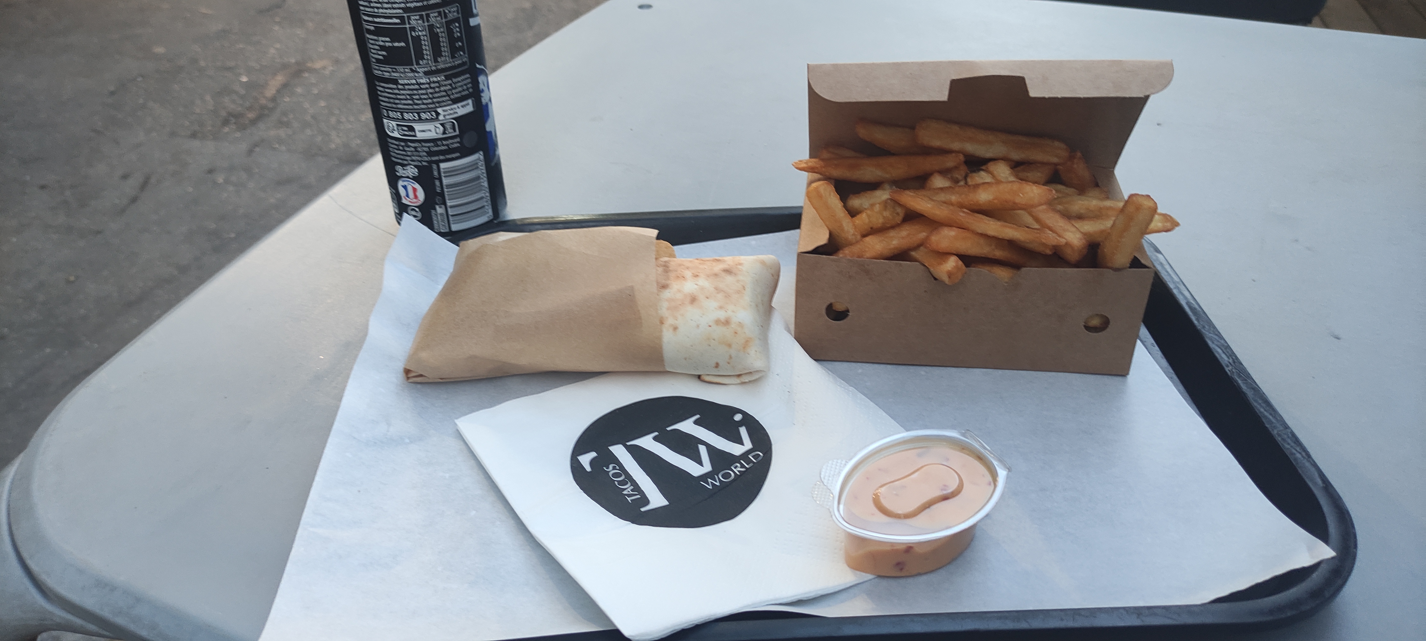 Dans un monde où les tacos deviennent de plus en plus chers et de moins en moins bon, tacos world reste sur sa lancée avec de bonnes préparations et sa petite originalité : la tchakchouka. Toujours un peu déçu que la viande kebab soit un supplément mais au moins on ne risque pas de tomber malade contrairement à d’autres établissements.