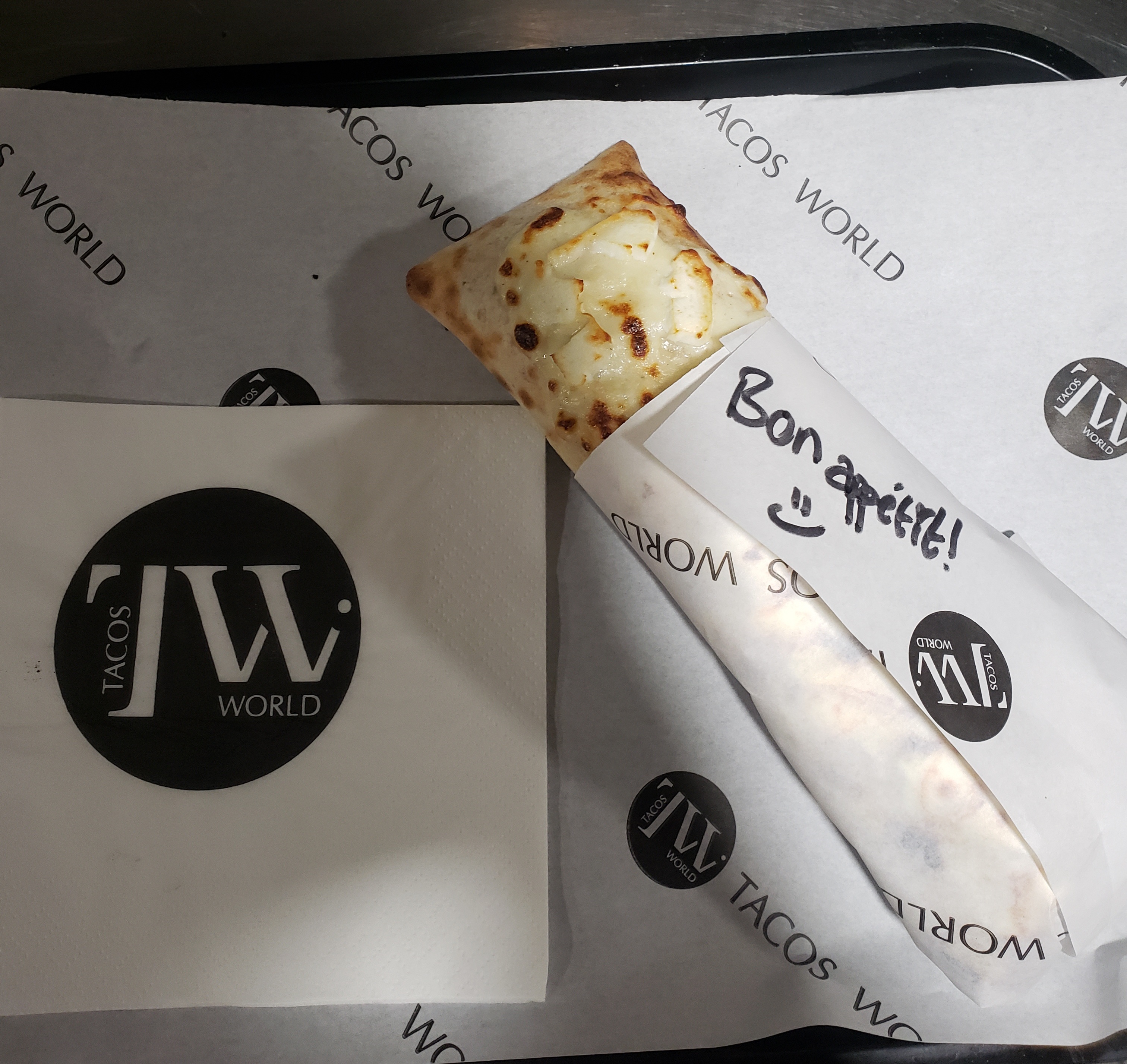 Tacos world hmm, quel délice ! Nous avons été accueillis dans un lieu très propre. Les choix étaient d'une précision chirurgicale tout en étant très intuitifs et les prix sont très accessibles. Mais le climax de cette dégustation est arrivé au moment de croquer dans le tacos. Immédiatement j'ai senti la virtuosité dans le pliage du tacos, le voyage généré par les épices, le savoureux blé faisant ressentir la chaleur du Mexique ! Lorsque la cuisinière de ce chef d'oeuvre, la dénommée Manille, s'est présentée, j'ai tout de suite compris que ce bijou n'a pas été conçu par n'importe qui. Manille, malgré le fait qu'elle débute, a un talent évident pour l'art du tacos. La technique et l'amour qu'elle met dans la réalisation de ses tacos m'a fait vibrer d'émotions pendant cette dégustation. Merci Tacos World, le tacos qui te fait voyager, tout simplement le meilleur !
