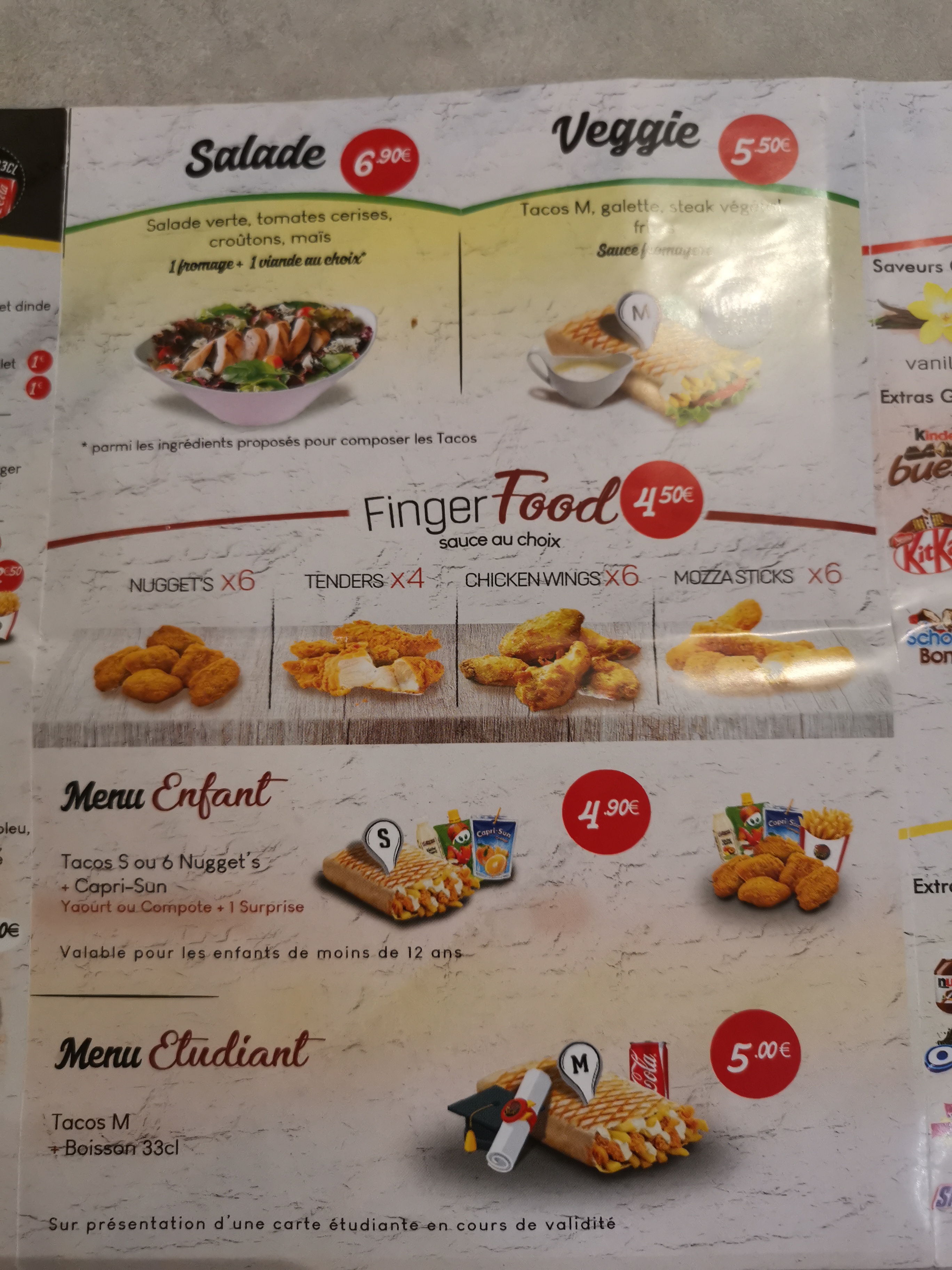 J ai jamais été déçu des tacos et franchement il sont délicieux et plus grand pour le prix que chez d autre.