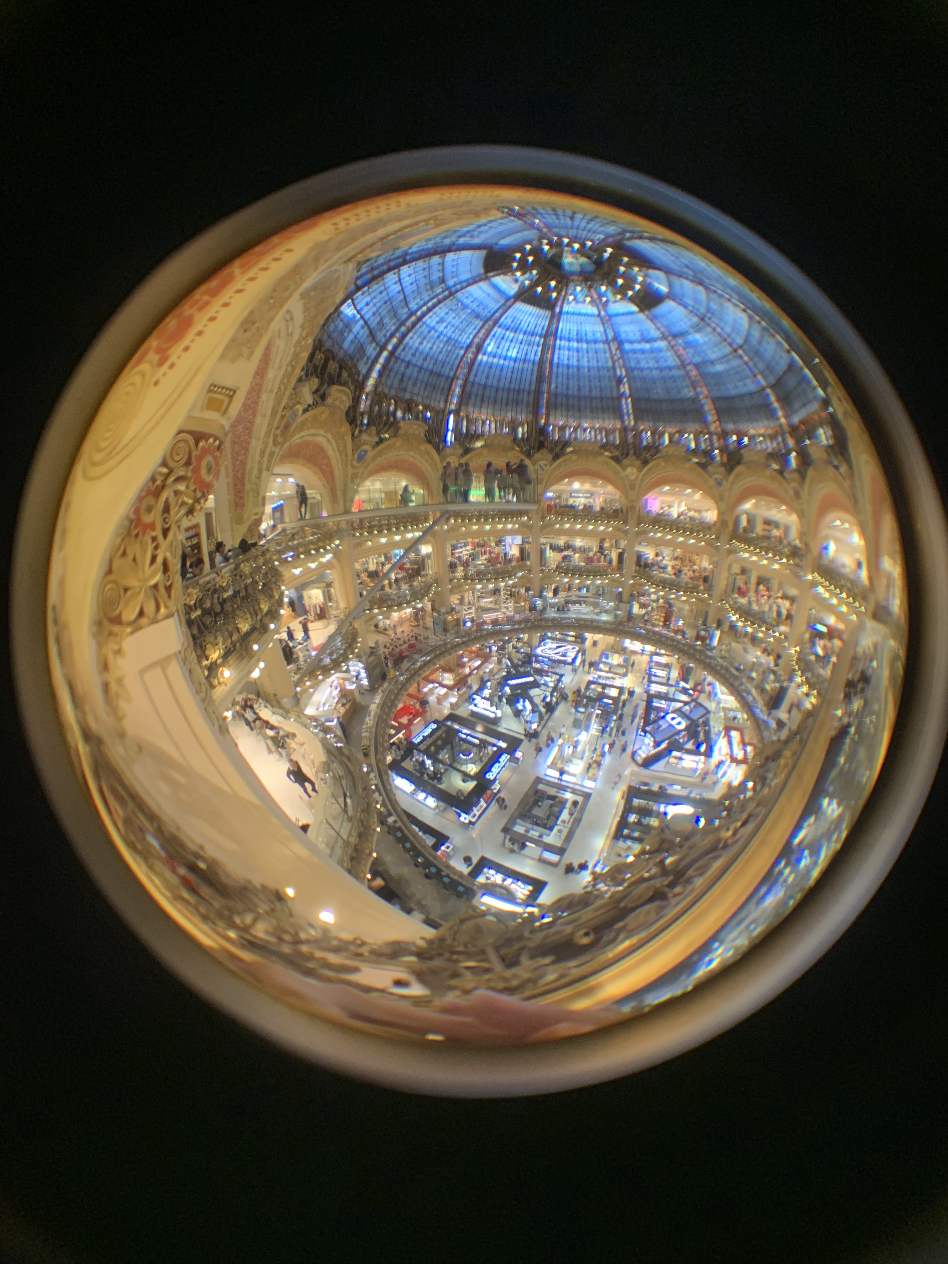C'est magnifique. Vous pouvez voir la vue sur Paris depuis le toit, mais il y a beaucoup de gens qui font la queue pour boire un verre sur le toit. Vous n'avez pas besoin de faire la queue pour prendre des photos. Il y a beaucoup de marques célèbres à l'intérieur. C'est occupé par les Chinois du continent. De nombreux vendeurs parlent chinois.