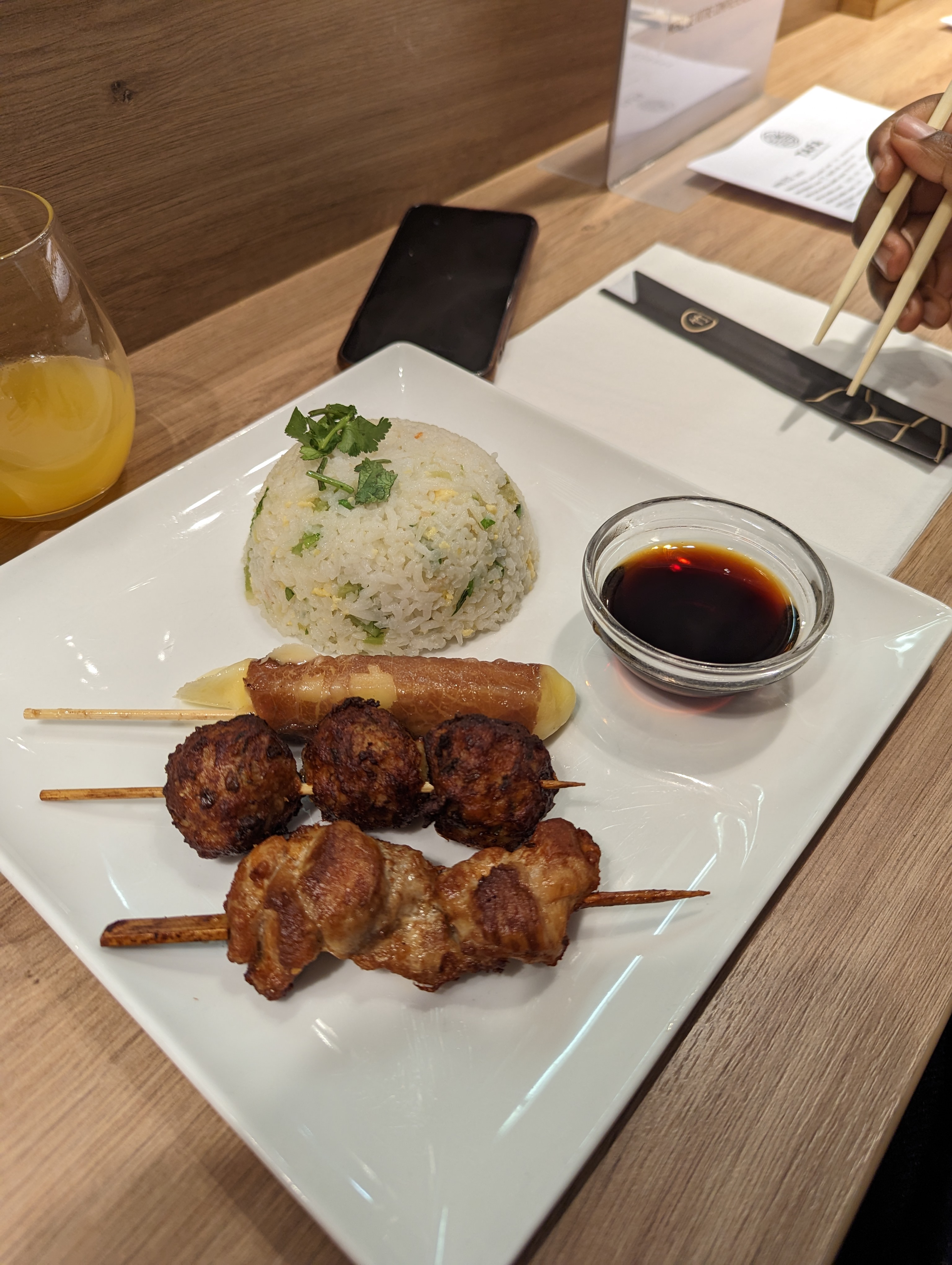 Gyoza était bon, le satay n'avait vraiment aucun goût. Beaucoup trop cher.