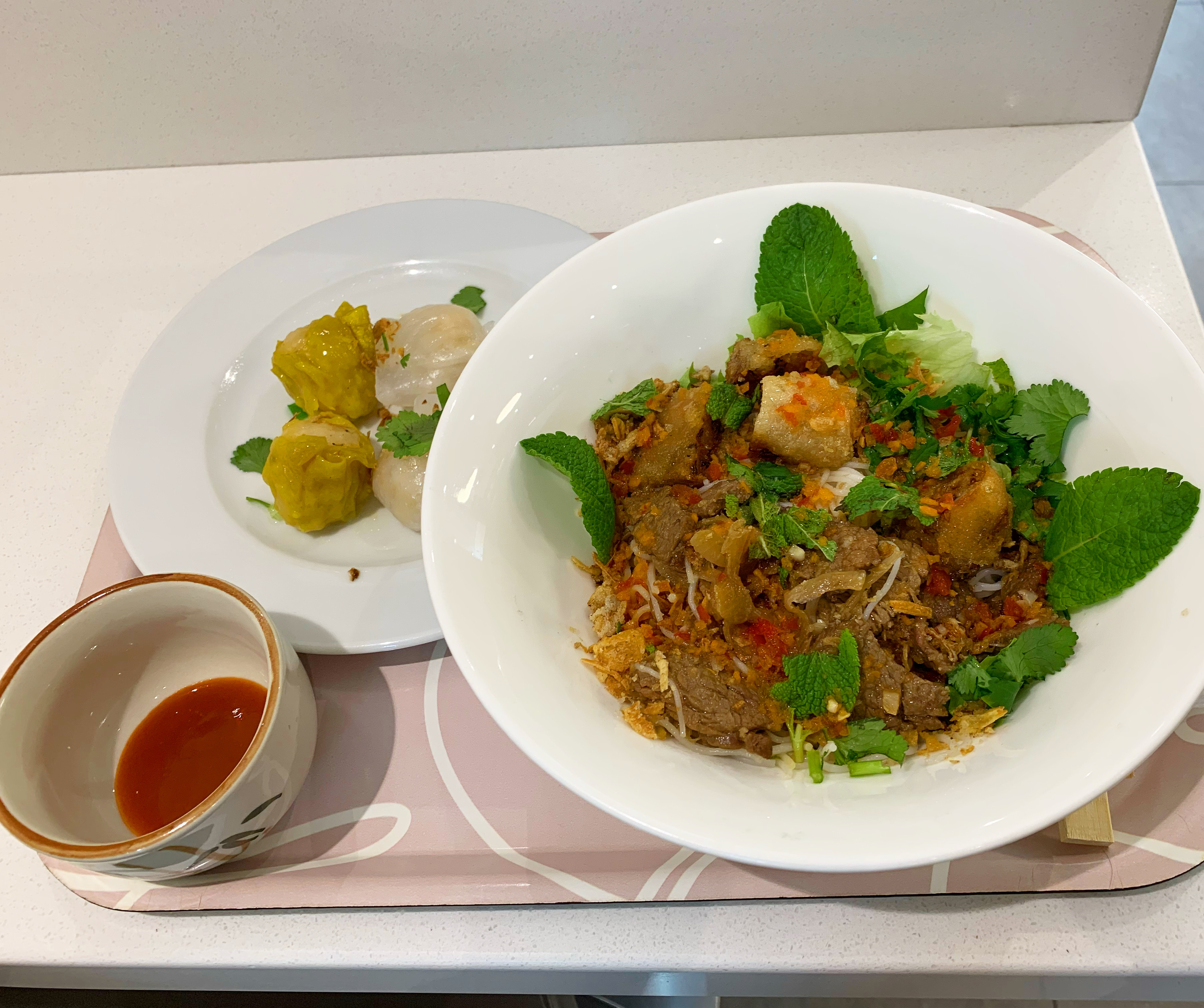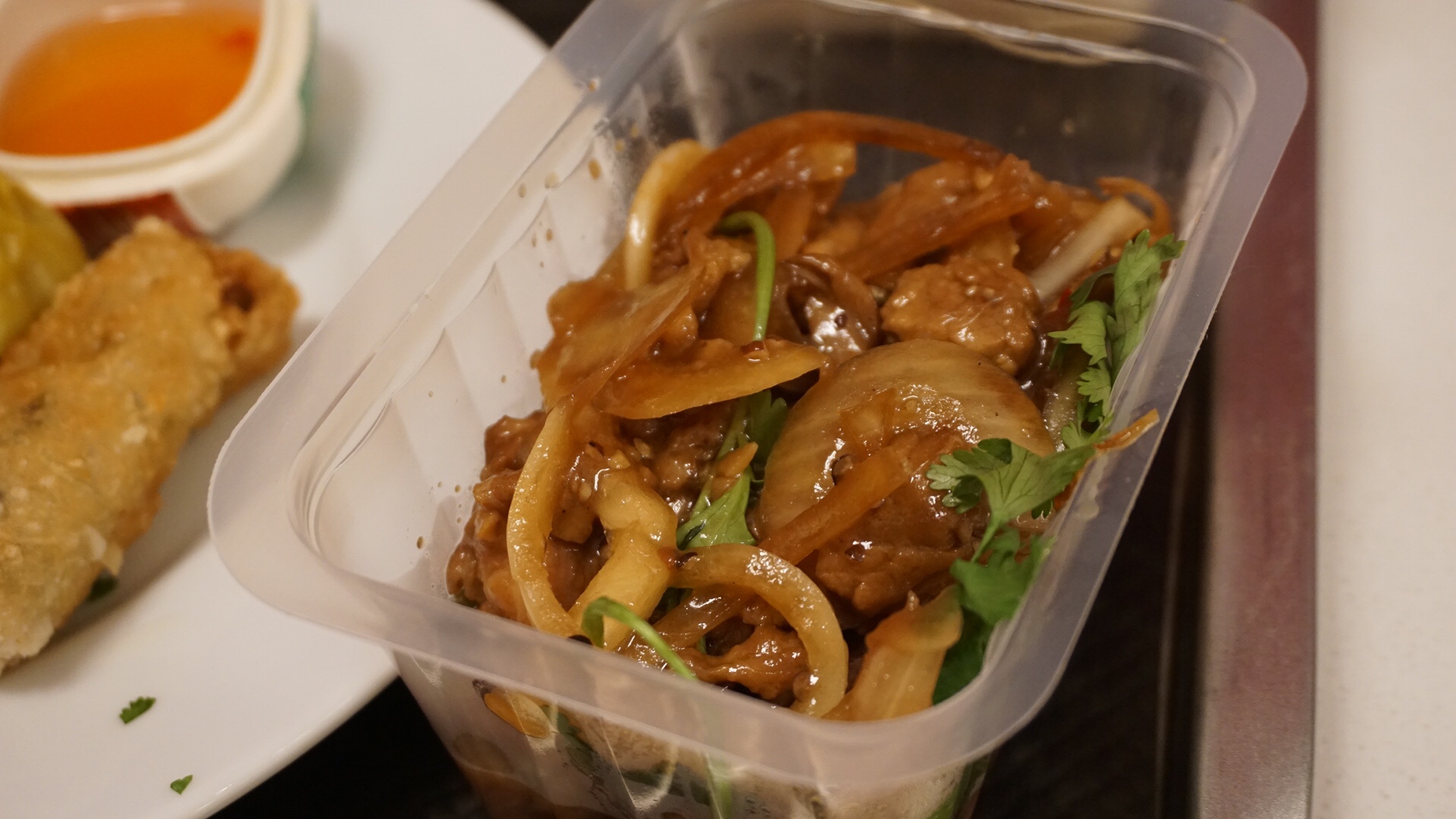Bobun pris à emporter et mangé quelques heures plus tard. Malheureusement, il était extrêmement sec, et même avec l’ajout de sauce soja en plus de la sauce fournie, je n’avais jamais mangé un bobun aussi infâme que je n’ai même pas pu finir. Vermicelles secs, tout comme les nems qui avaient une texture caoutchouteuse. Sincèrement, je ne recommande vraiment pas et c’est même un peu honteux.