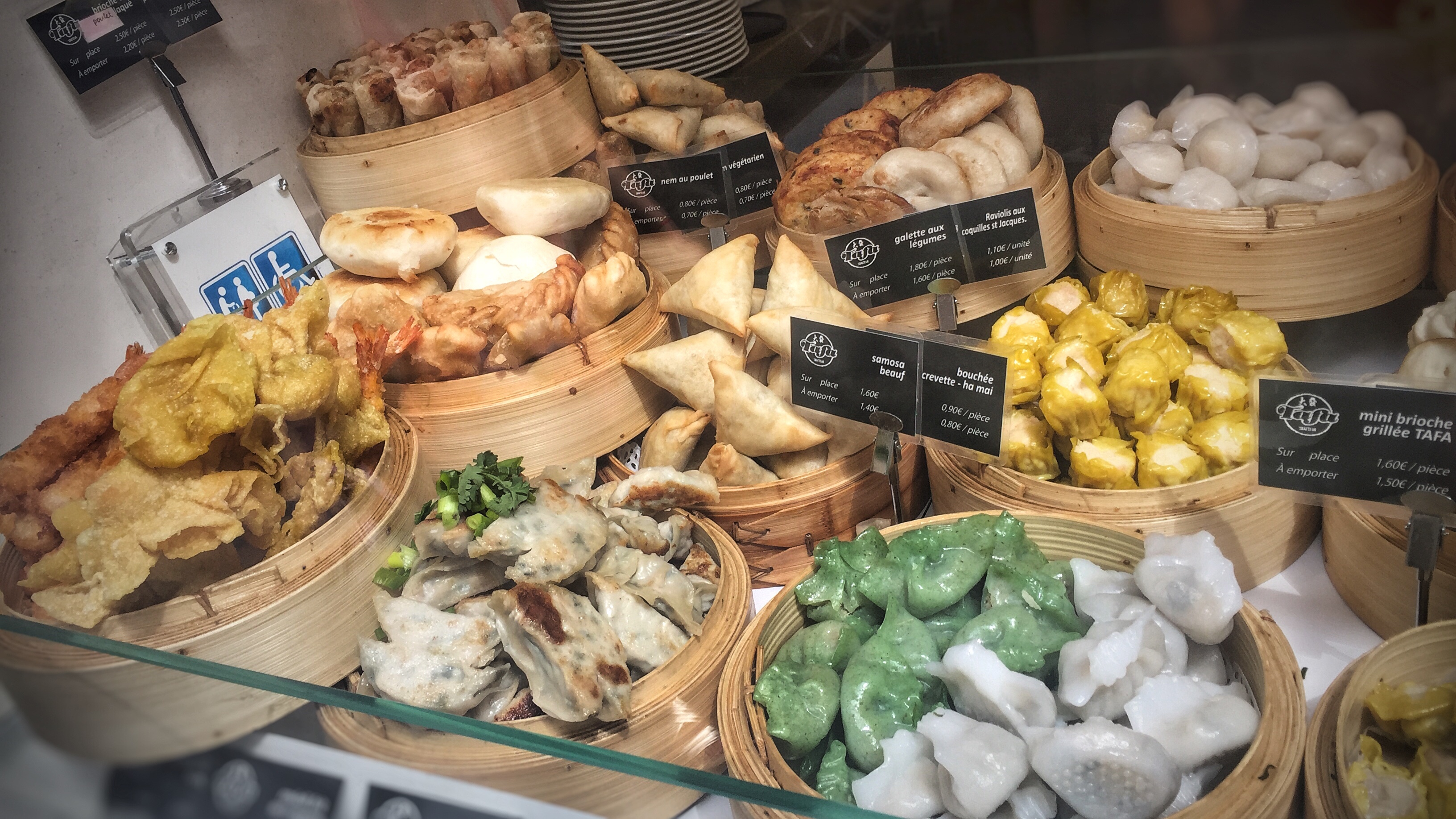 Grosse déception. Je regrette de ne pas avoir consulté les commentaires avant d'avoir passé la porte! Ces derniers sont tout à fait justifiés. Les produits sont très bien présentés. La serveuse était très peu attentives, elles remplissaient les barquettes sans me demander mon avis sur la quantité. Le goût des différents plats, raviolis y compris sont très fades et manque cruellement d'assaisonnement et ont fini à la poubelle. Par contre, le prix lui est bien salé. C'est dommage je suis probablement passé à côté de belles découvertes dans le quartier. D'autre établissements plus professionnels proposant de la vraie cuisine. A fuir absolument !!!!!!!!!!! Vraie arnaque culinaire.