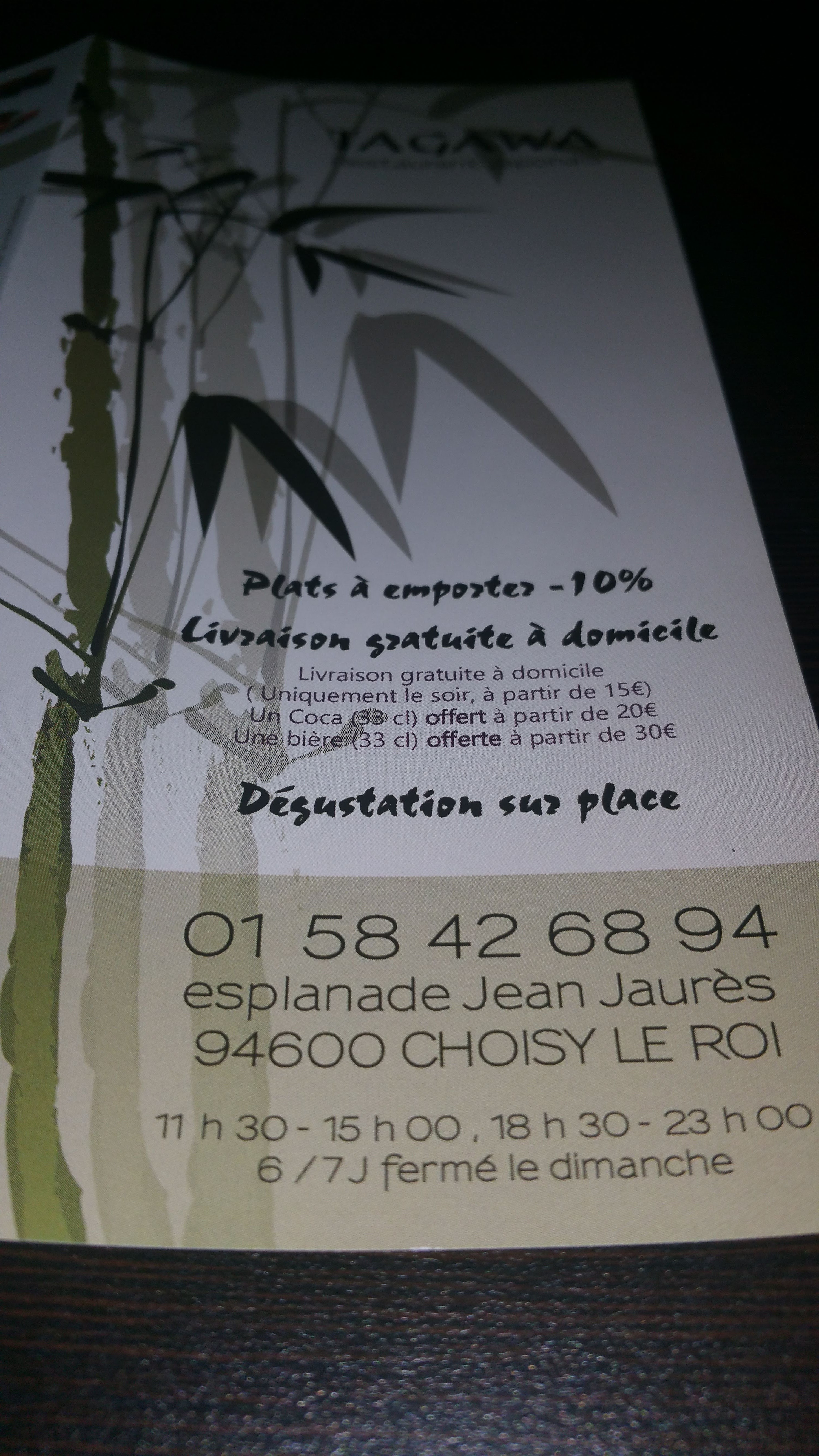 Très bien. Conforme à mes attentes en tous points. Menu japonais : les sushis et sashimis étaient très bon, le poisson de qualité. Peu d'attente.