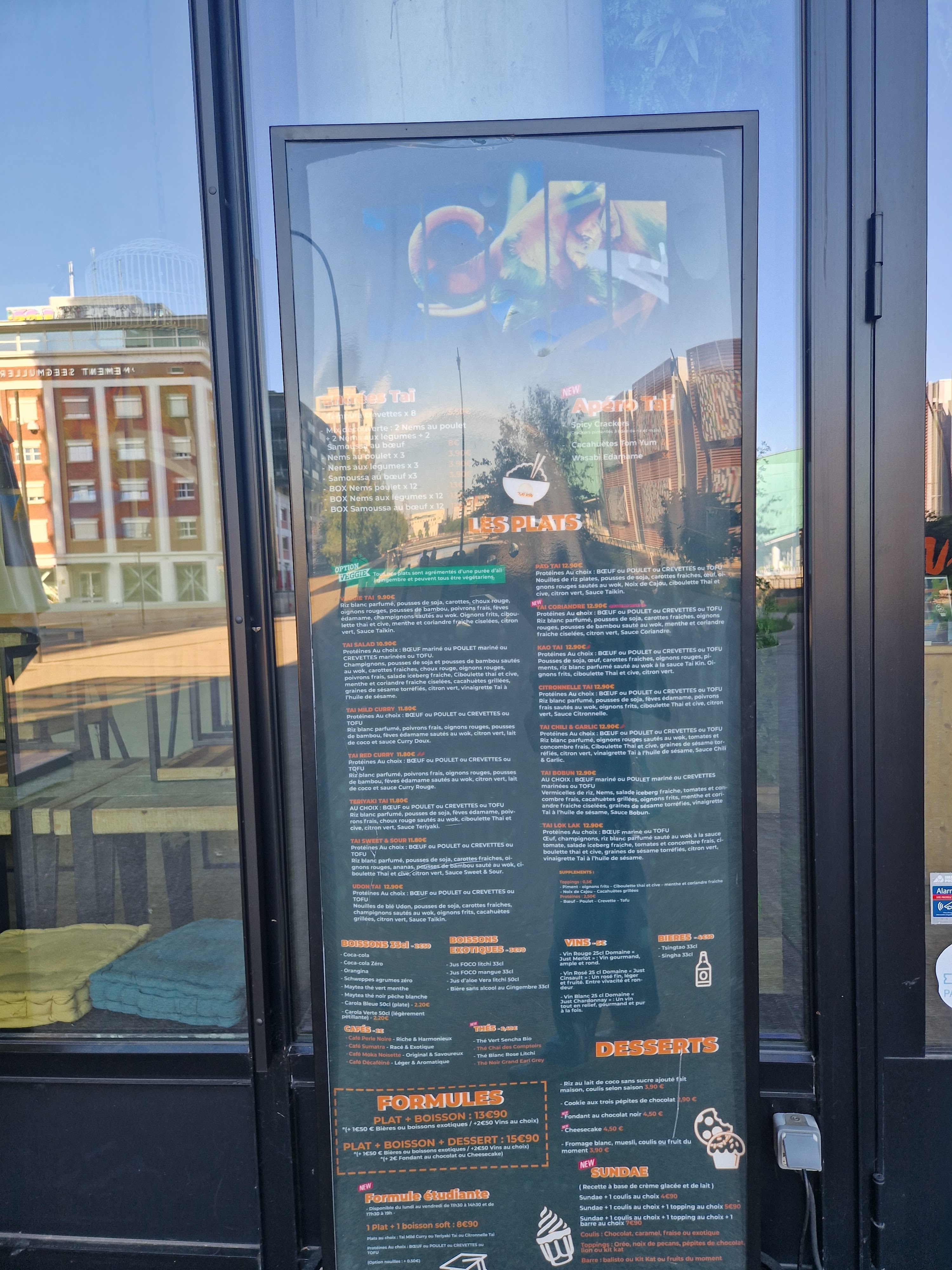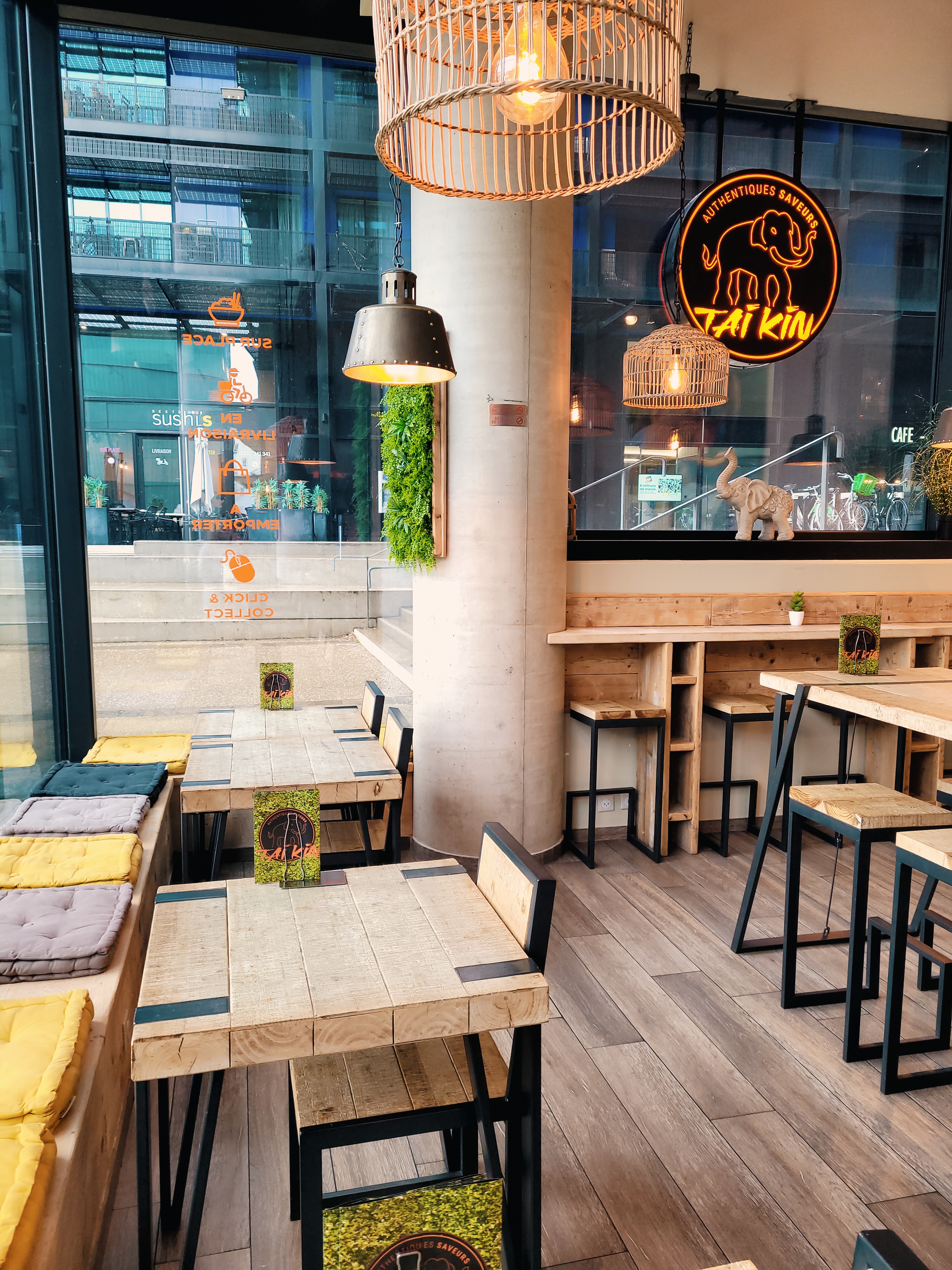 Bel accueil, moderne et beau restaurant ! Le Tai Kin proche du centre commercial du Rivétoile est fort sympathique. La prise en charge est rapide et nous avons pu déjeuner avec des collègues rapidement (je dirais au bout de 5min sachant qu'on était venu à l'ouverture). Très moderne, vous commandez sur une borne votre formule avec plat et en option une formule plat + dessert pour un prix plutôt correcte 12-14€ selon votre choix de plat. Vous récupérez vous-même votre boisson. Pour avoir goûté plusieurs plats asiatiques dont des Loc lak, je peux vous dire que c'était plutôt bon mais peut-être pas assez relevé car j'ai dû ajouter de la sauce sriracha pour relever le goût. Pour une première impression, c'était vraiment une belle découverte ! J'ai pris en supplément des samousa au poulet. Plutôt bon et croquant, mais il y a meilleur. Je recommande le restaurant pour les curieux et ceux qui aiment la cuisine asiatique ! 😉