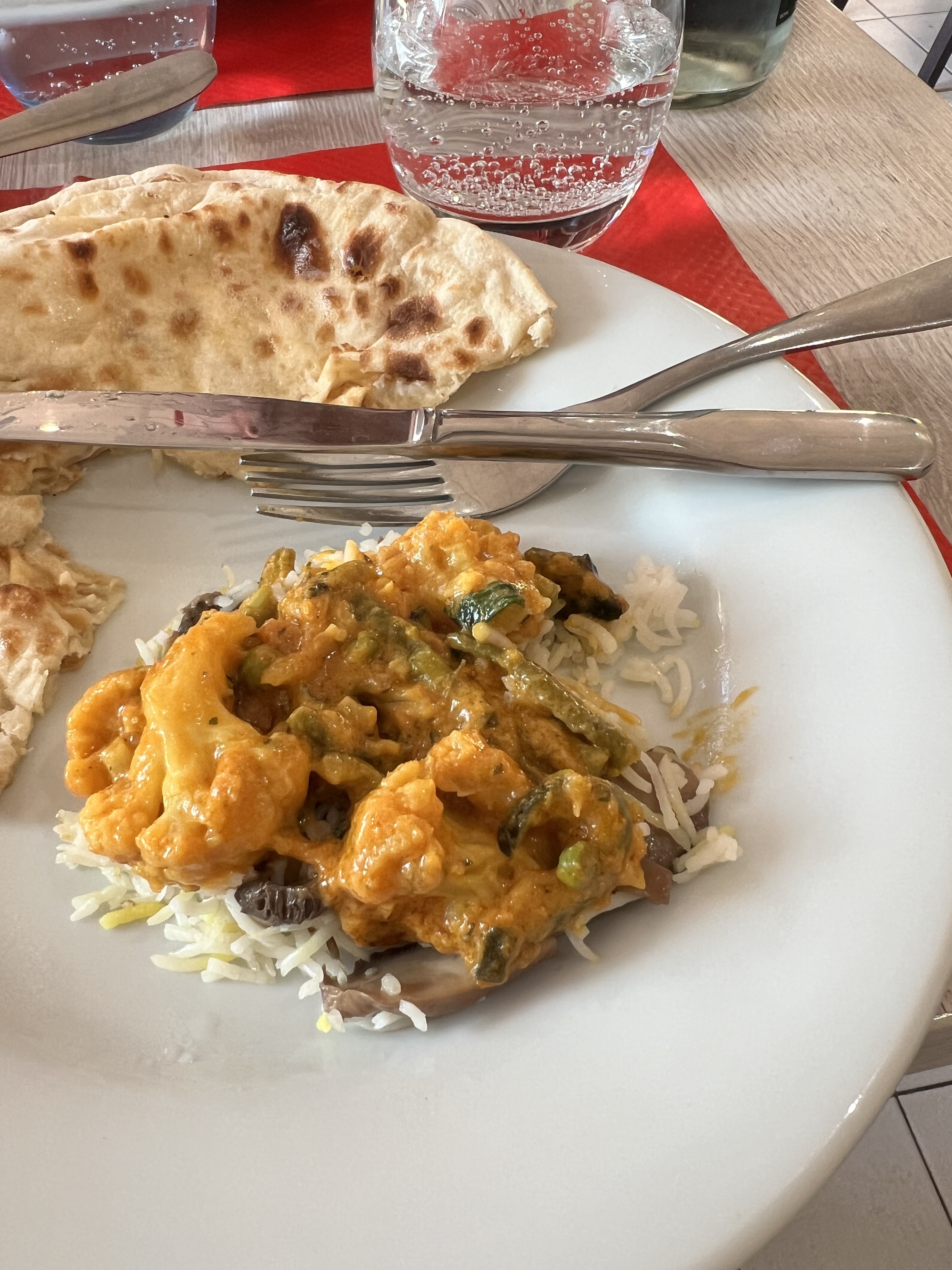 Les plats sont excellents et copieux. Personnel serviable, dommage le service est trop rapide, on est beaucoup sollicités pour savoir si on a choisi, si on a fini... Pas de déco indienne sur la terrasse, nous avons mangé sur une nappe de Noël. les chips et nan sont pas mal huilés... Nous avons quand même passé un agréable moment et bien mangé