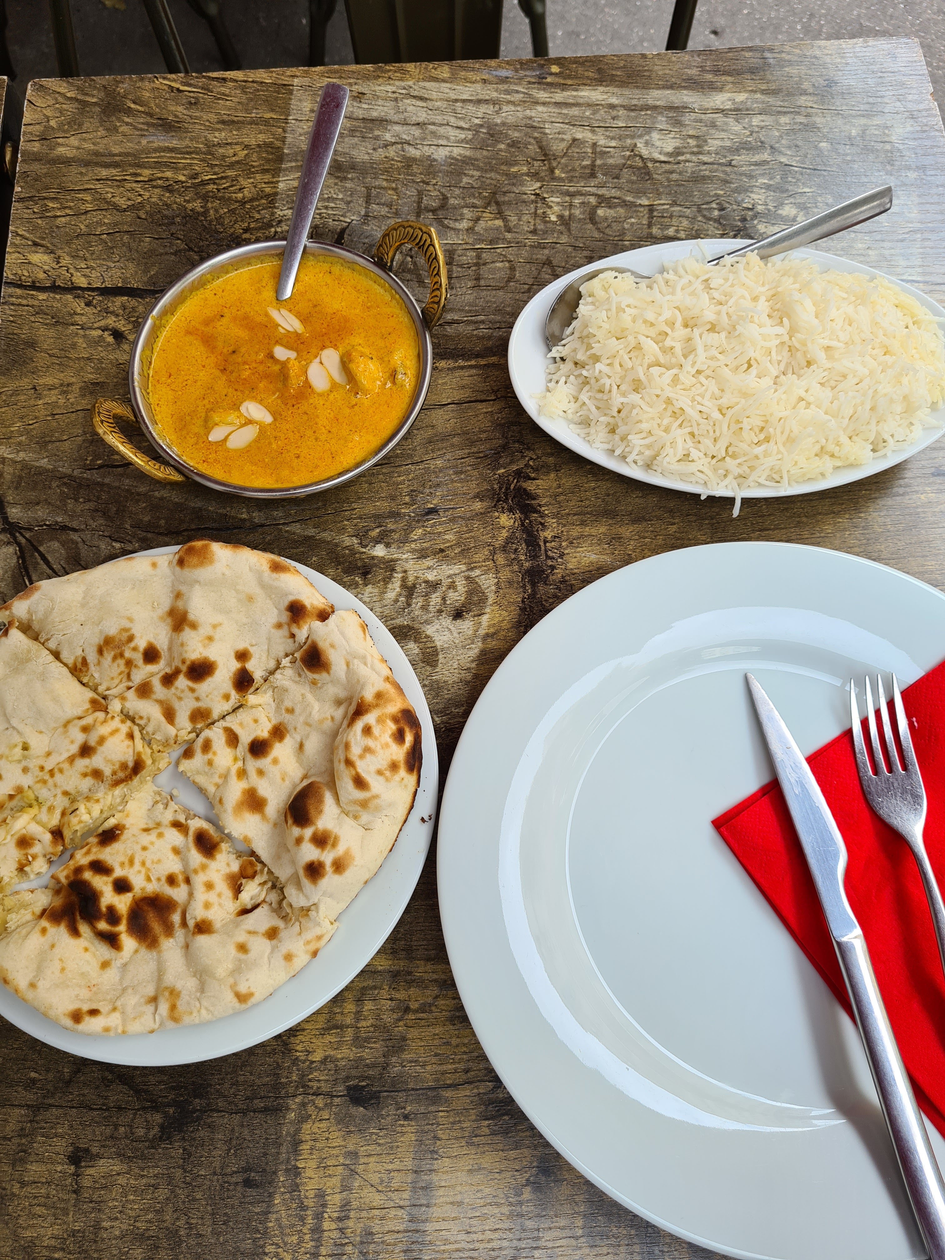 Commandé par ubereat, les portions sont bonnes que ce soit le riz, la viande ou le dahl. Les naans fromage sont bien remplis ce qui fait plaisir ! Un très bon rapport qualité que je recommande.