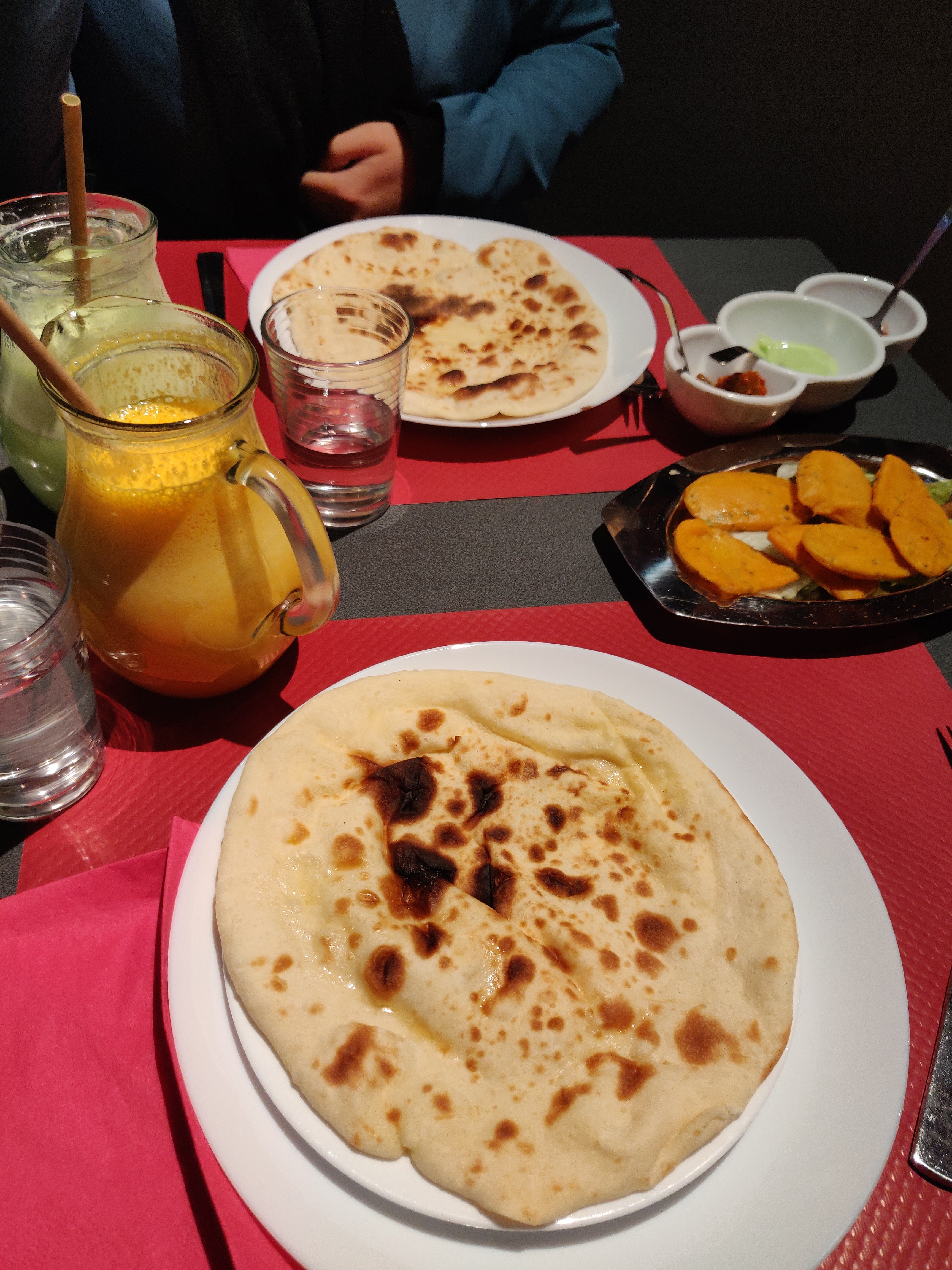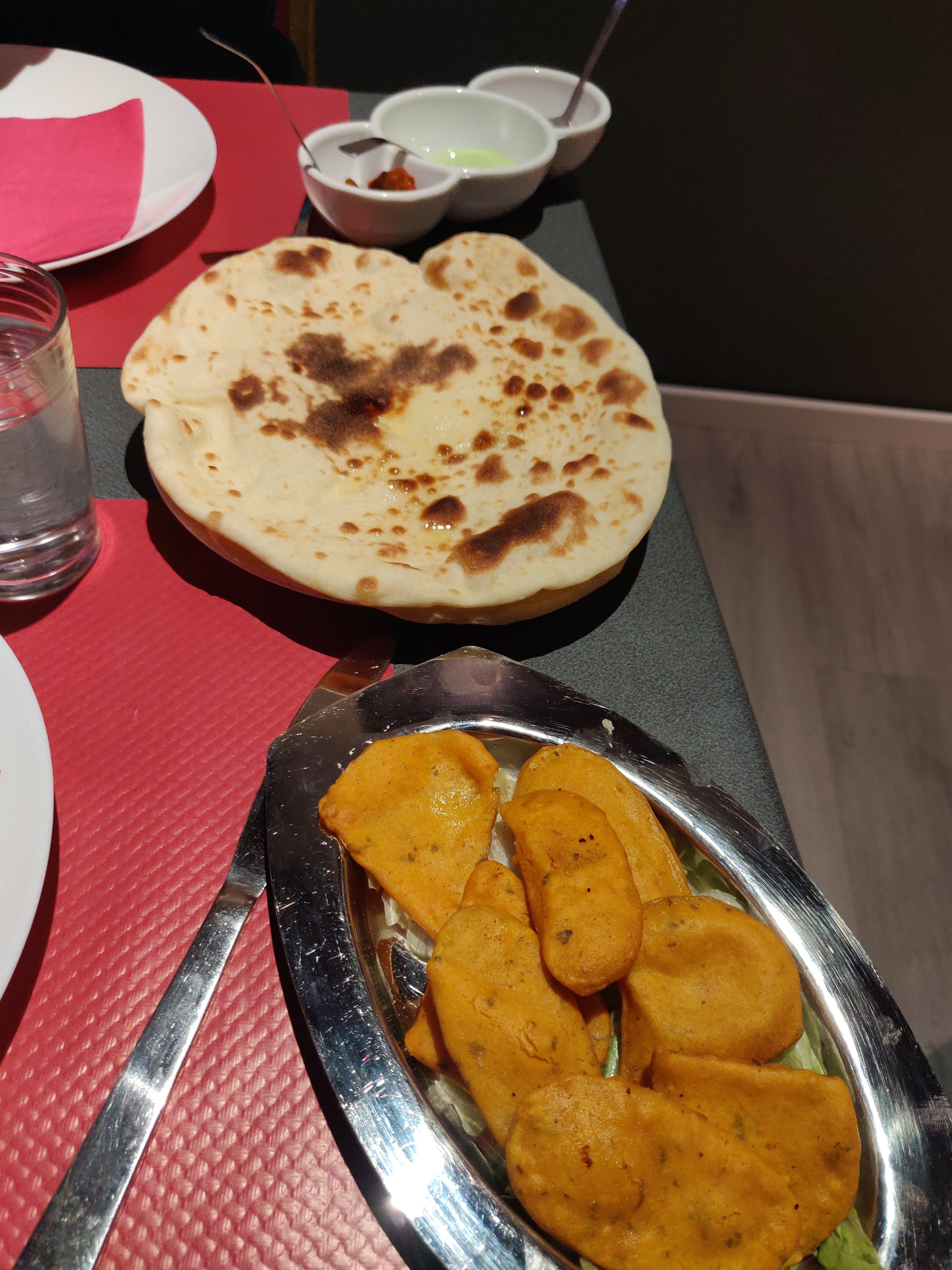 Très peu de sauces avec les beignets et les samossas, et poulet Tika massa sec, épicés mais pas pimentés. Tika massala agneau bon. Naams bons, riz aussi. Pas de licence pour vins. déçu.c est le début, bon courage.