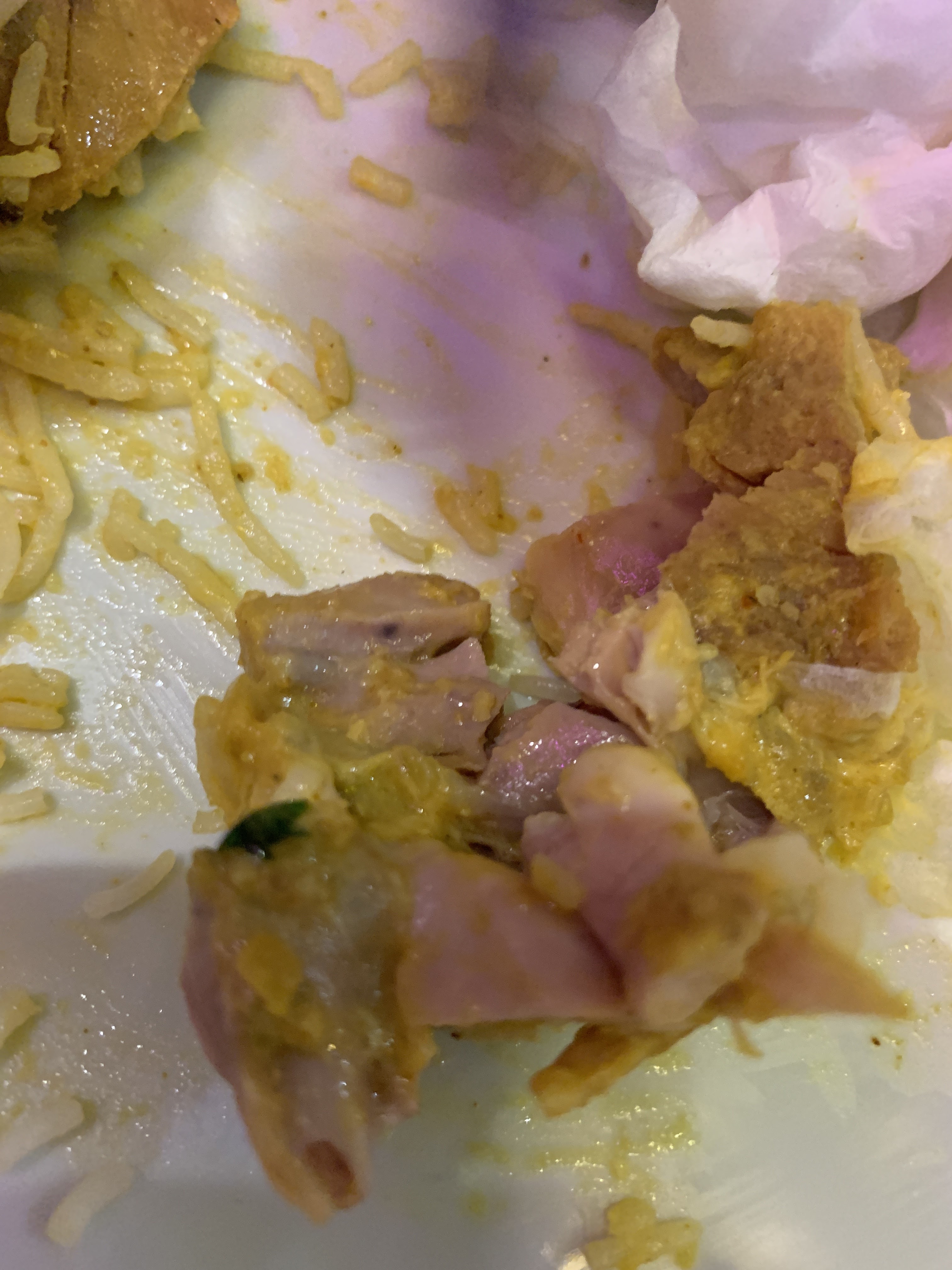 Commandé sur Uber Eats, le poulet tandoori était un peu sec mais le briyani d'agneau était délicieux ! L'agneau était très tendre et le riz briyani était parfumé.